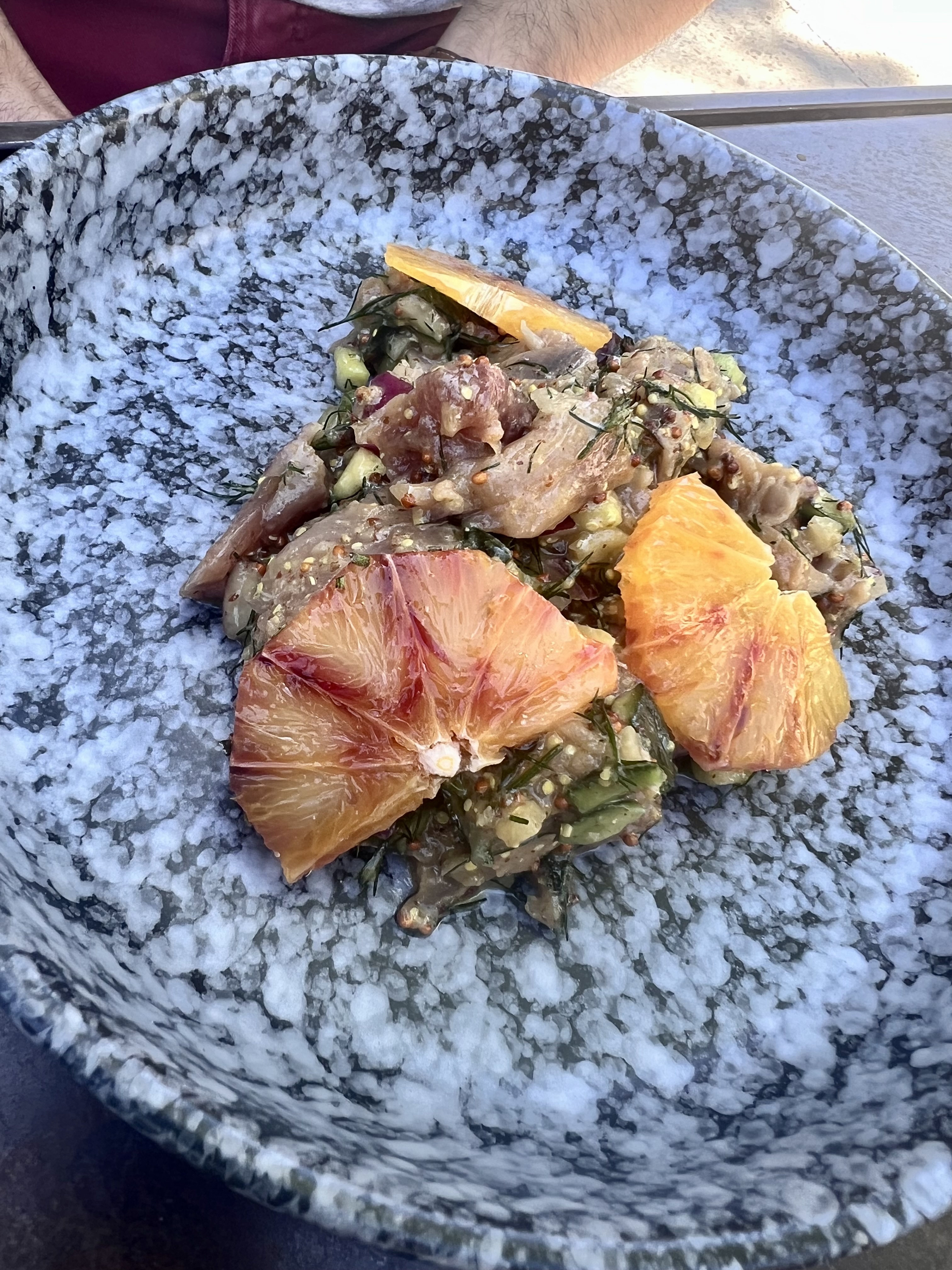Mitigée, burrata aux carottes excellente ! Pizza zuchini décevante, il manquait la moitié des ingrédients annoncés !!! Sur 3 desserts au choix, un n'était plus disponible. Et je ne parle pas du placement des tables, trop serrées, la serveuse ne pouvait pas circuler entre les tables !!!