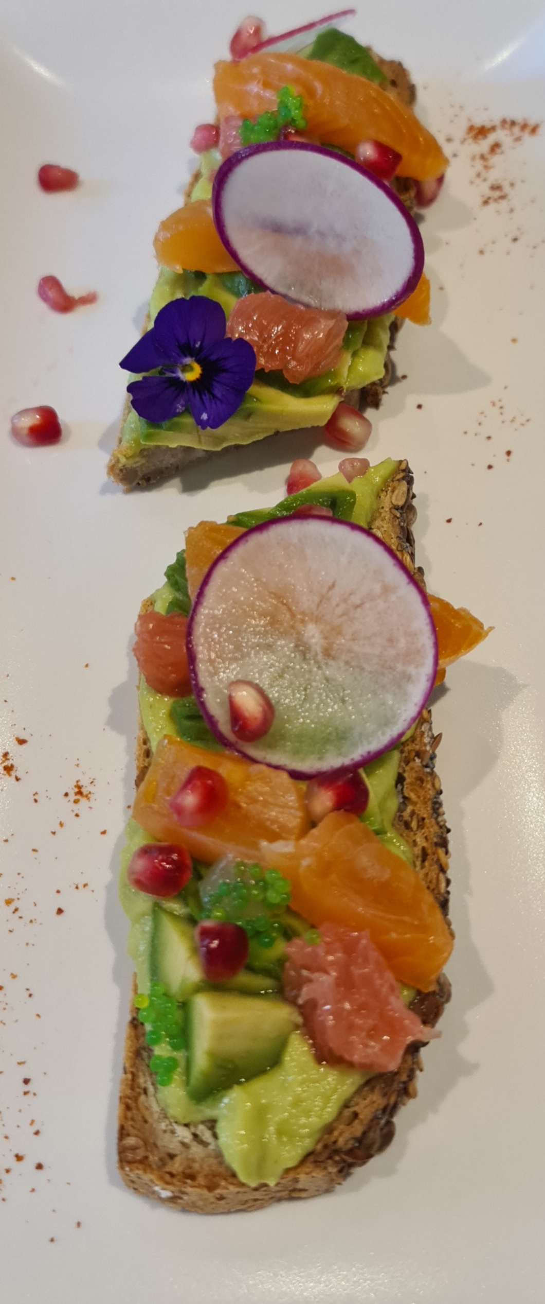 Vraiment décevant !!! incroyablement cher et la valeur est faible. Les photos parleront d'elles-mêmes .. ils publient une photo de toasts à l'avocat qui a l'air superbe et j'étais prêt à payer 10 €, mais pas pour ce que j'ai réellement eu😳😳😳. Pour un petit verre de jus (concombre, menthe et kiwi) je pense peut-être 200-250 ml (ce qui était bien) Nous avons payé 14 €🤨 Je dois dire que le serveur était super gentil et gentil !! Et l'emplacement est magnifique. Mais nous sommes venus principalement pour la nourriture.. nous ne reviendrons certainement pas !!!!!