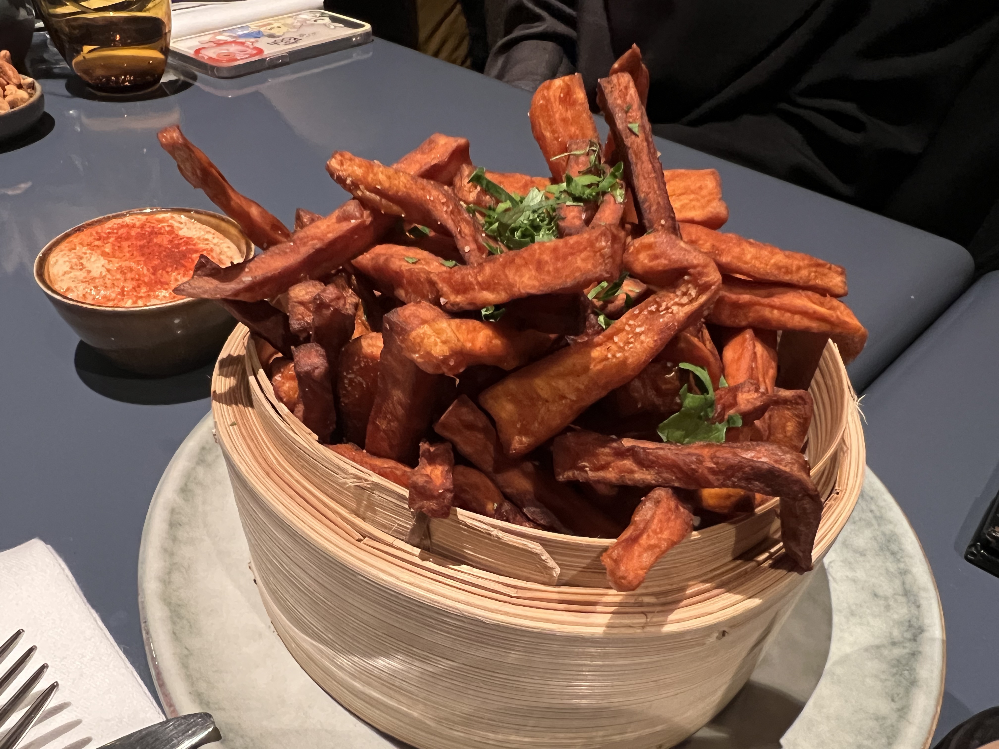 C’est un endroit sympa pour dîner, même si j’étais sceptique au début car il est situé dans un hôtel. L'atmosphère générale était sophistiquée et paisible, le personnel était très gentil et serviable. la nourriture était globalement délicieuse et créative. Nous avons commencé avec d'excellents cocktails, puis avons pris le tarama avec des crackers qui était fantastique. Les ramen et les artichauts étaient également très bons. En comparaison, les desserts étaient légèrement décevants, notamment la mousse au chocolat qui était un peu fade.