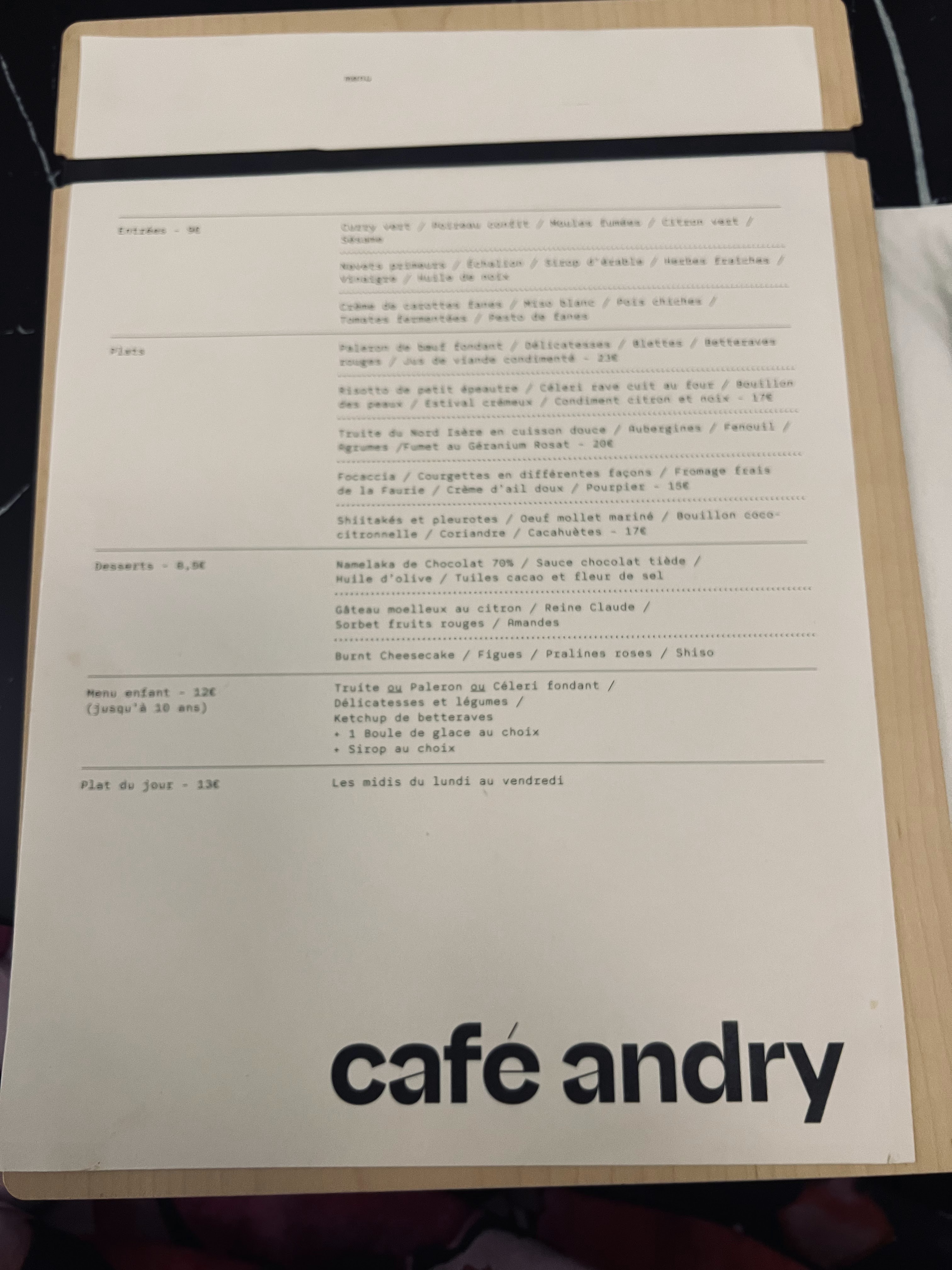C'est l'ancien restaurant : le 5, et rebaptisé Café Andry depuis Septembre 2023, c'est un restaurant muséal car mitoyen du musée de Grenoble. Géré par une association qui œuvre pour satisfaire et les clients et les employés. On peut profiter du lieu toute la journée.