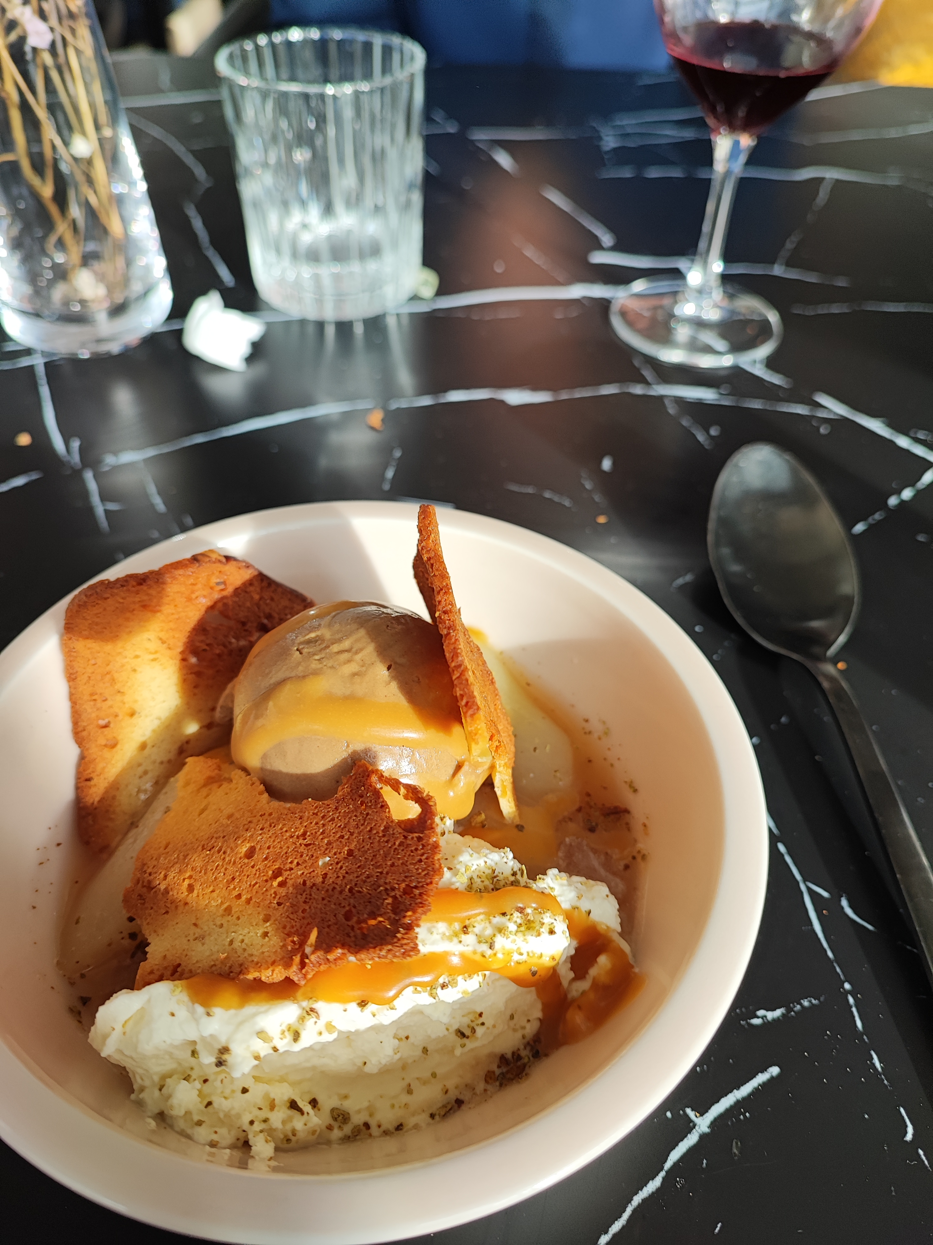 Bonne playlist, bon accueil et bon service. En revanche, visuel de certains plats et desserts pas très engageant et viande notamment poitrine de veau très sèche. Une petite déception, dommage.