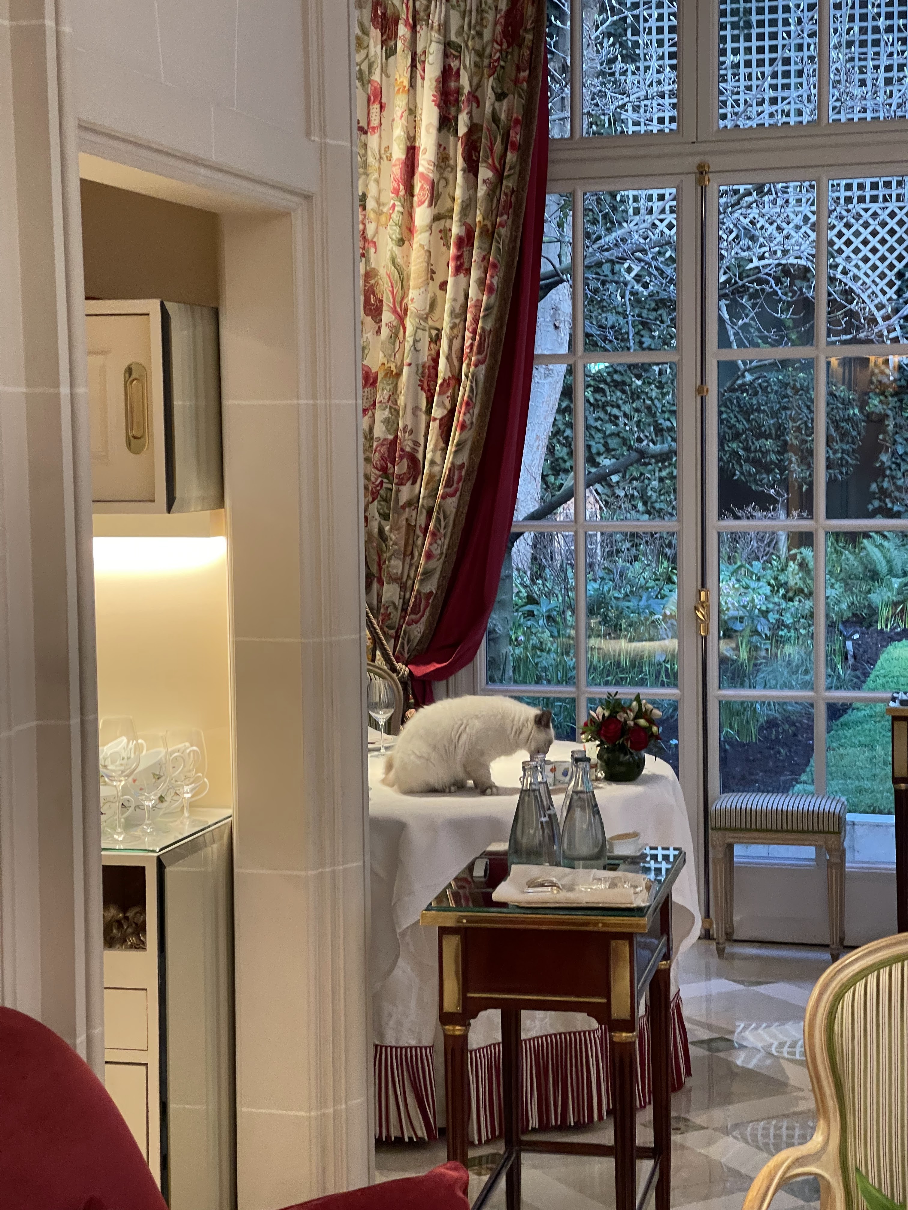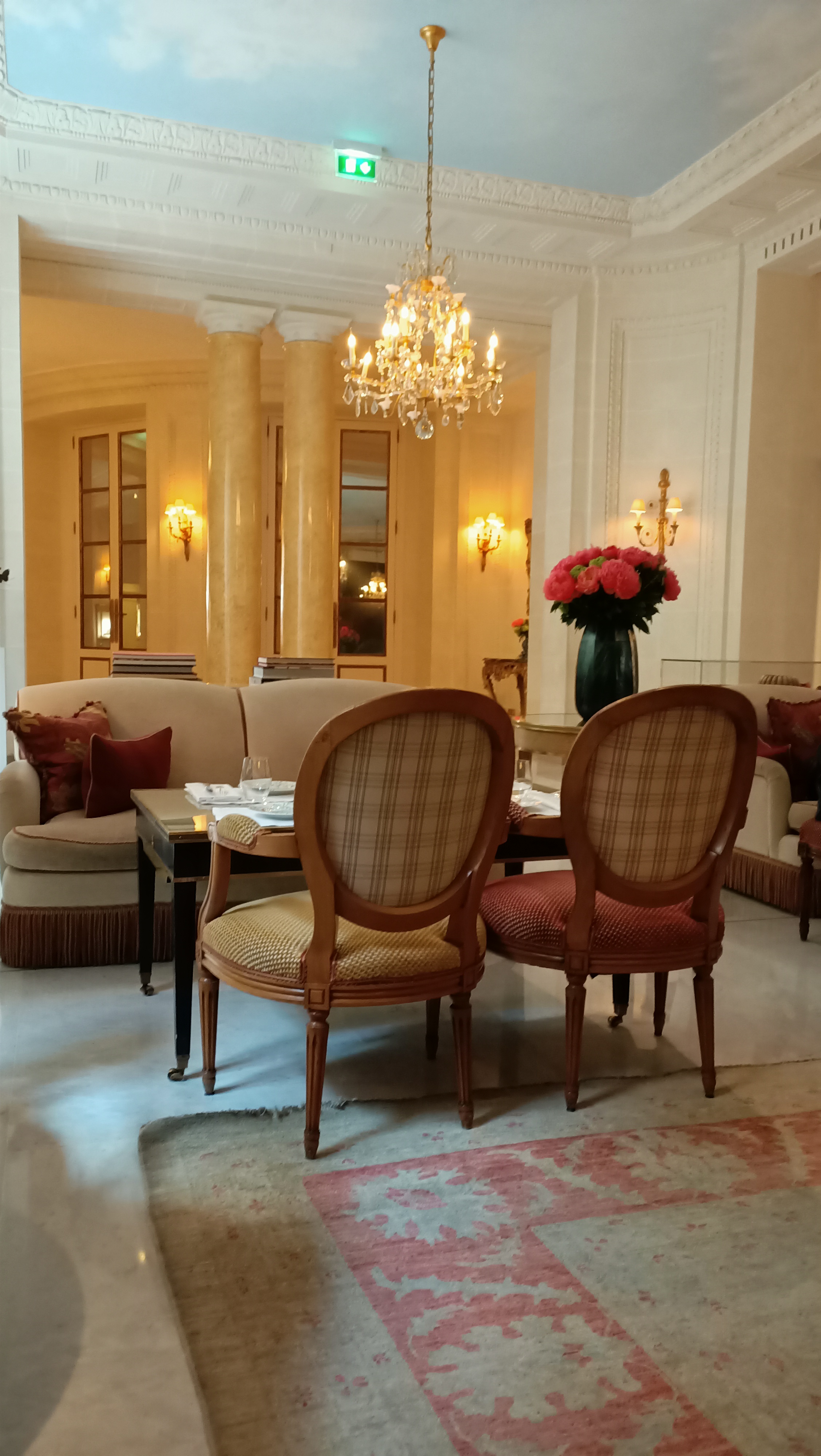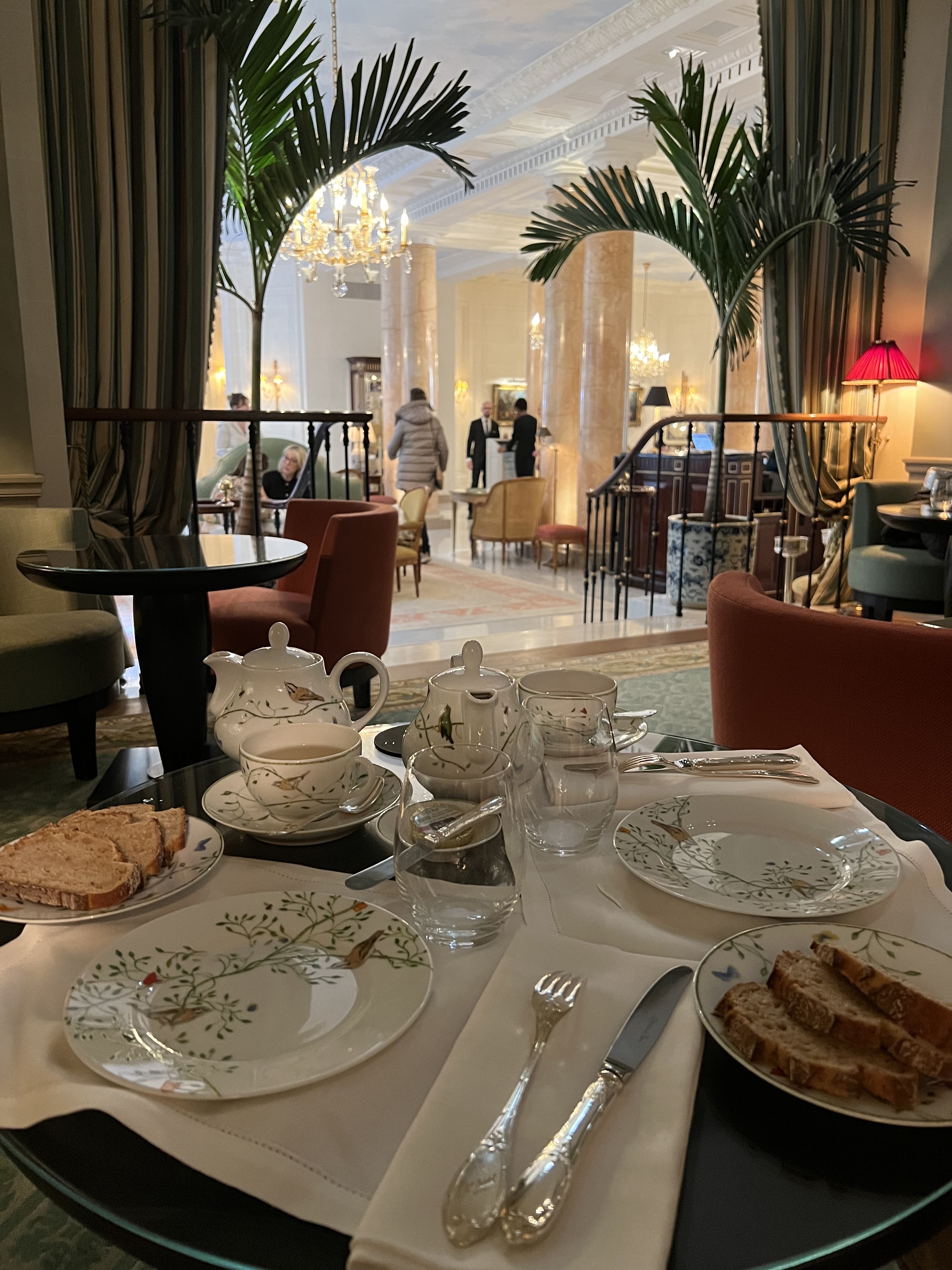 Niveau de service excellent. Petit déjeuner ou repas de grande qualité. Salon très confortable, manquant un peu d'intimité, dans une déco de style (on aime ou pas). Mais toujours un très agréable moment. Prix en rapport avec le niveau de prestations d'un palace...
