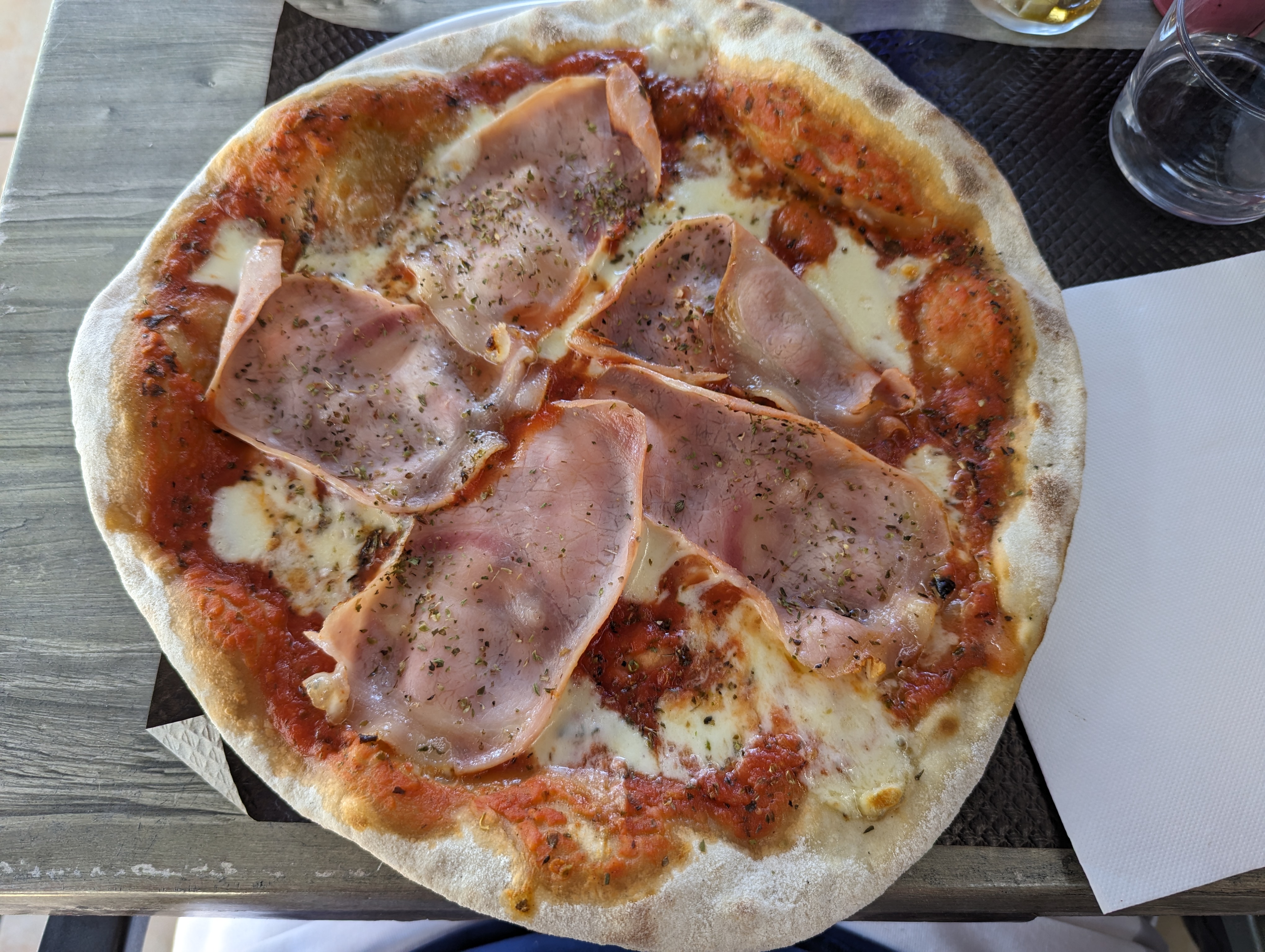Très déçu, vin servit dans un verre à eau, sous prétexte qu’il ni a pas assez de verre. Pizza de qualité très moyenne, serveuse qui met du cœur à l’ouvrage mais ses propos sont bêtes, elle me flatte la qualité de sa restauration et me donne un sachet d’huile piquante industrielle. En bref simple restaurant de plage avec des prix de bon bistrot. À fuir