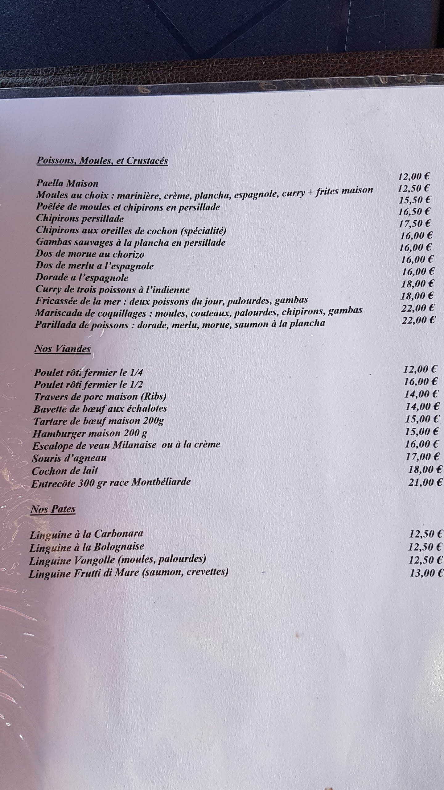 Changement de propriétaire une carte totalement différante et assez décevante plus de pizza.les moule à la plancha à 14€ au lieu de 12. Plus de poêlée moules chiperons Bref on testera dans quelque mois pour voir .