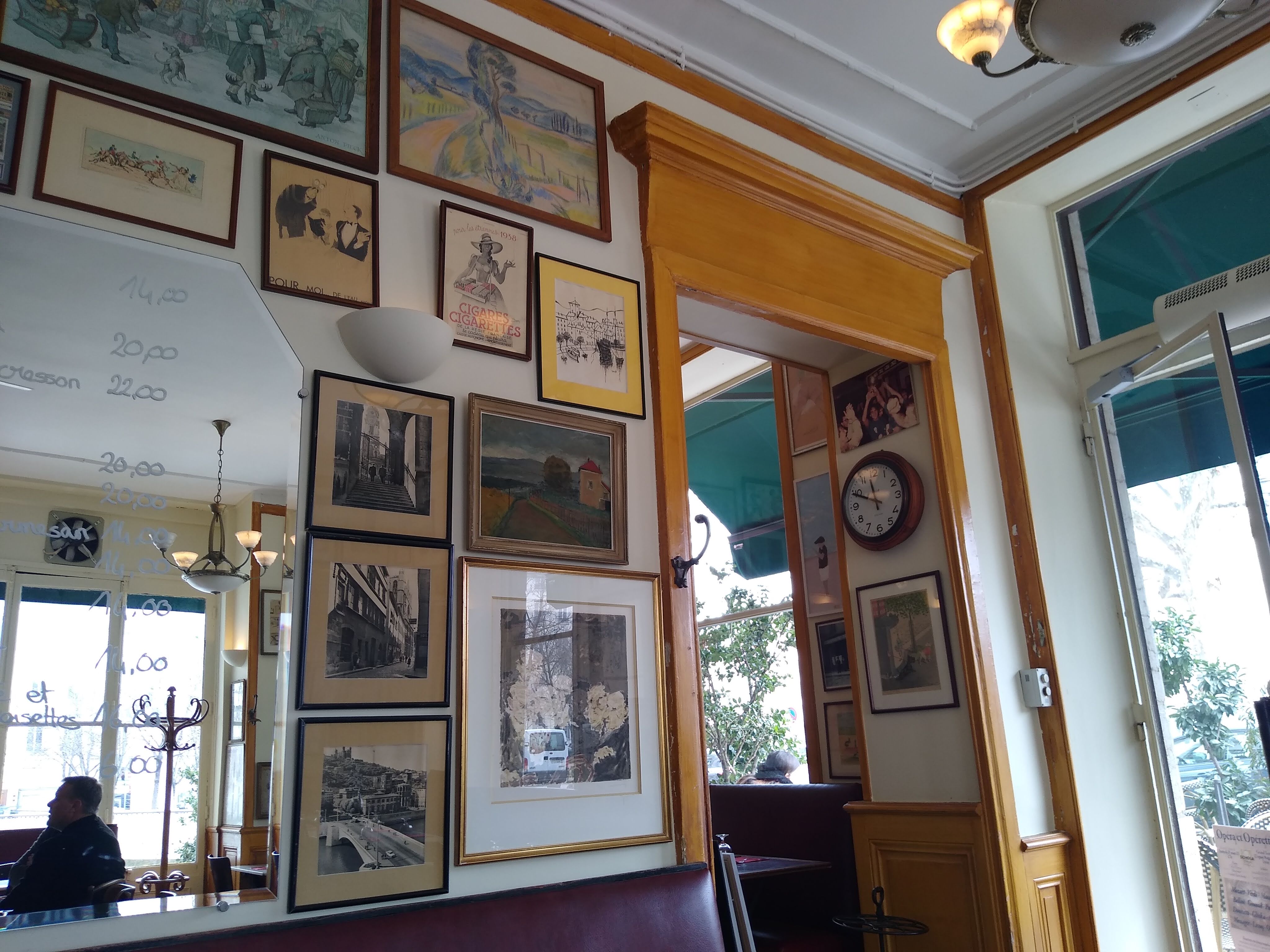 Joli café typiquement français, à la place Bellecour à Lyon. Très authentique depuis des décennies, l'atmosphère rappelle les bouchons lyonnais avec des tables et des chaises en bois vieillottes , ce qui lui donne ce charme si apprécié par des habitués. Les murs décorés avec des photos, et la carte ressemble un peu à celle d'un bistrot.