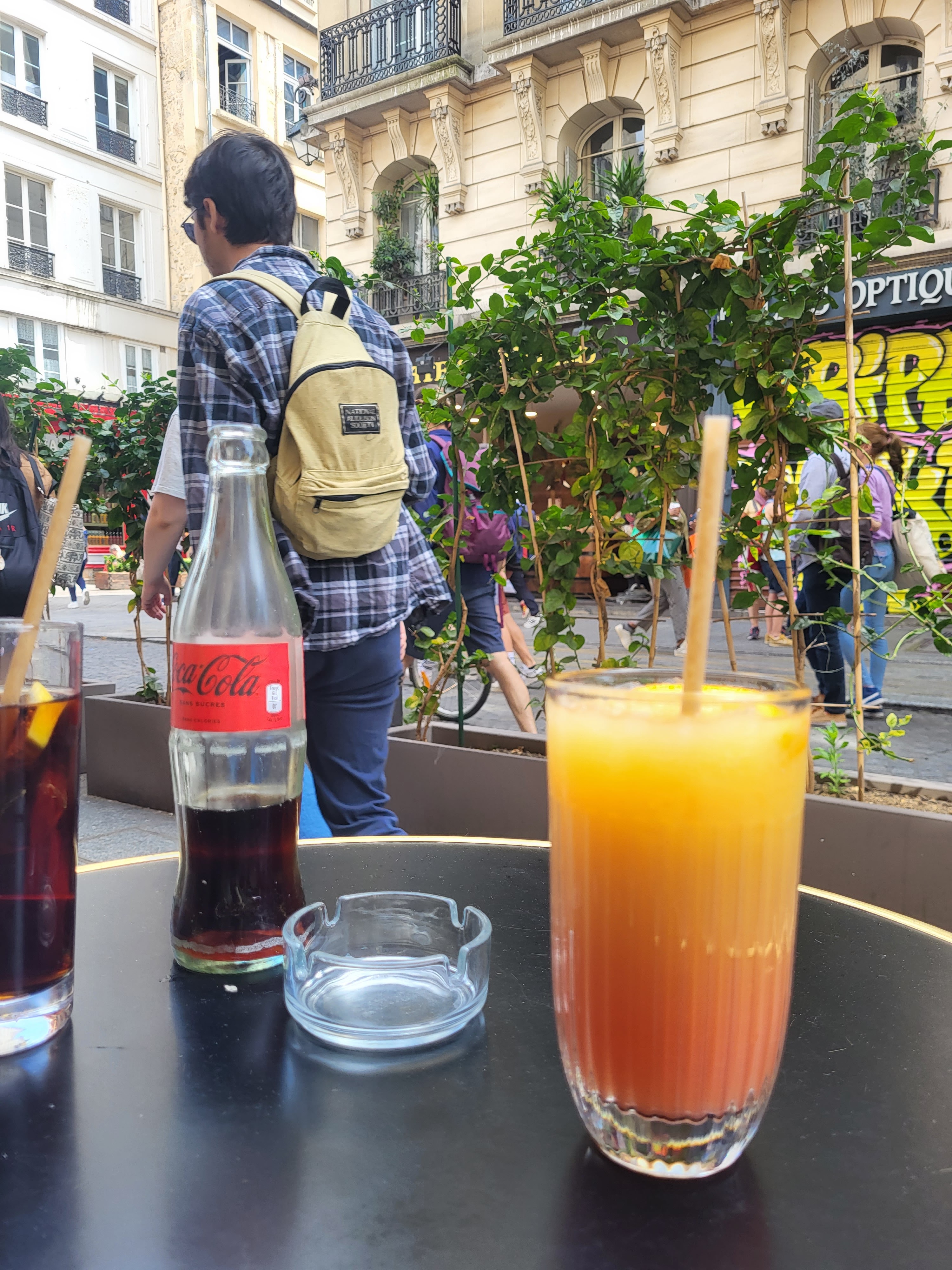 Parfait pour manger en terrasse pendant l'été. Près de chatelet. Le bora bora fait plus penser à un jus d'orange du matin (pas ouf) sinon rien à dire pour le reste.