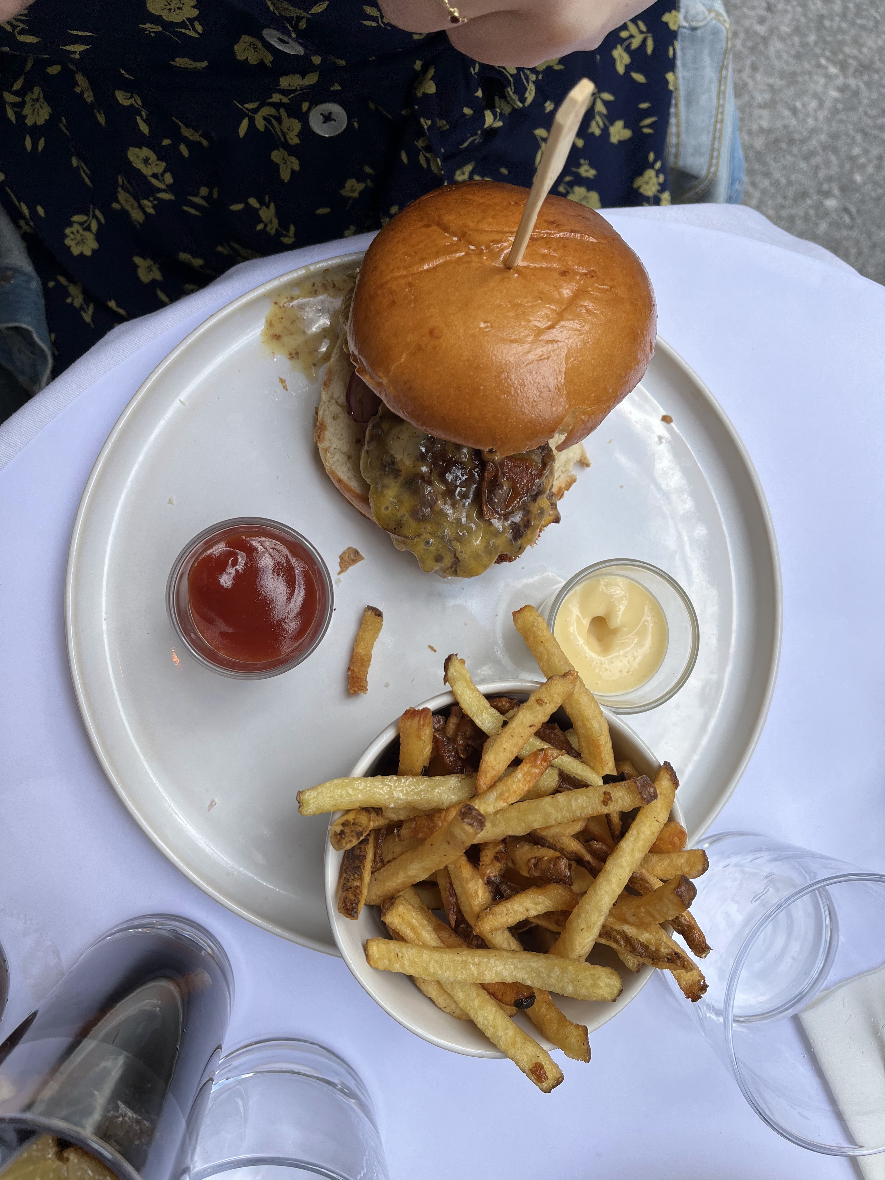 La belle terrasse ensoleillée de ce nouveau restaurant fait tout son charme, bien fleurie ! Les plats sont très bien présentés (Instagram bonjour) mais aux saveurs assez inégales selon moi (le tartare de bœuf est un peu quelconque mais l’halloumi est très bon). Le serveur est souriant mais a pu se montrer agacé assez facilement. En somme un bon moment !