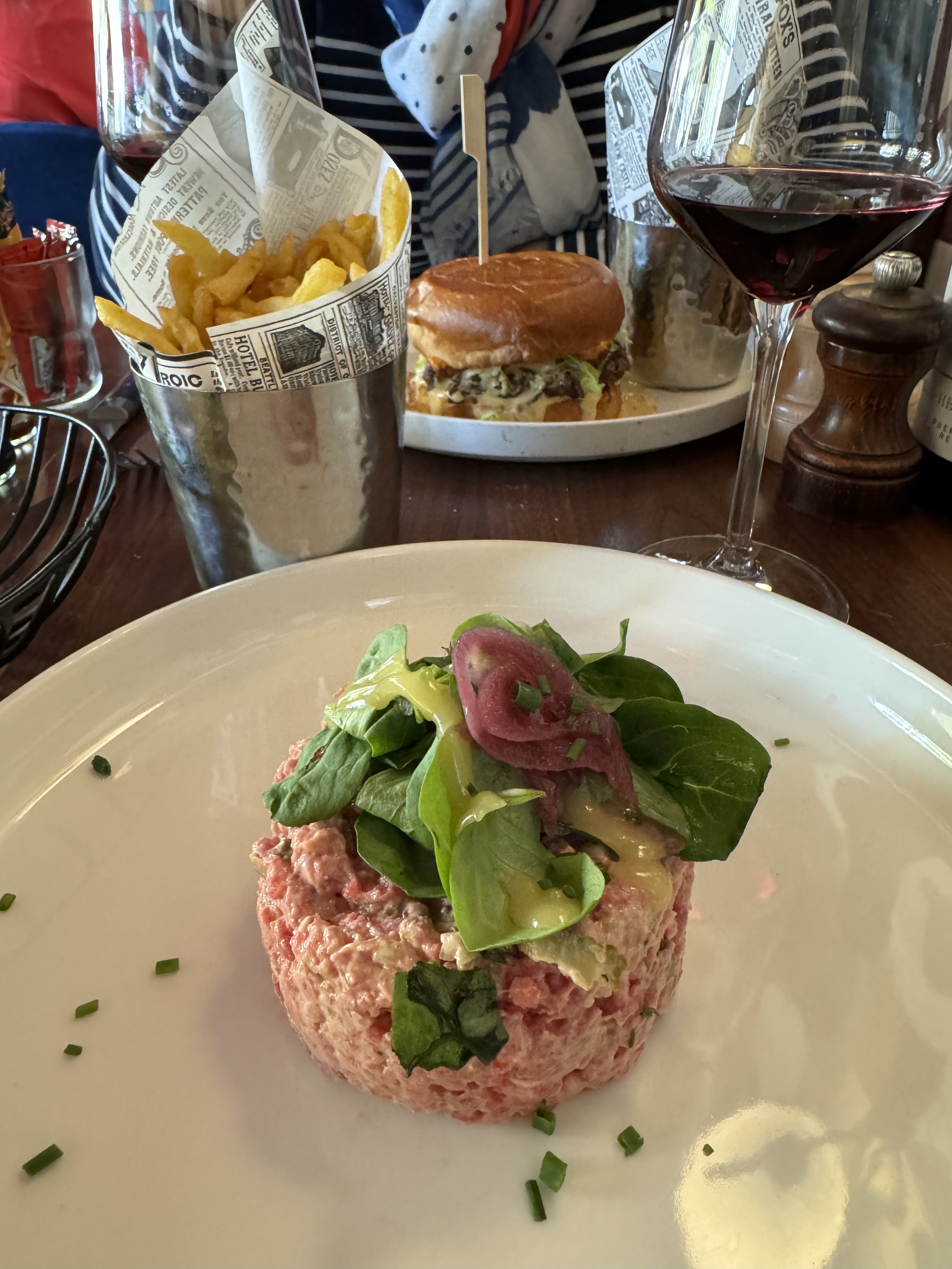 Bel accueil et service rapide. Ambiance à l'intérieur un peu bruyante. Le tartare de boeuf semble sortir d'un mixeur dans lequel on aurait ajouter de la mayonnaise... dommage mais le tout reste très correct et bon.