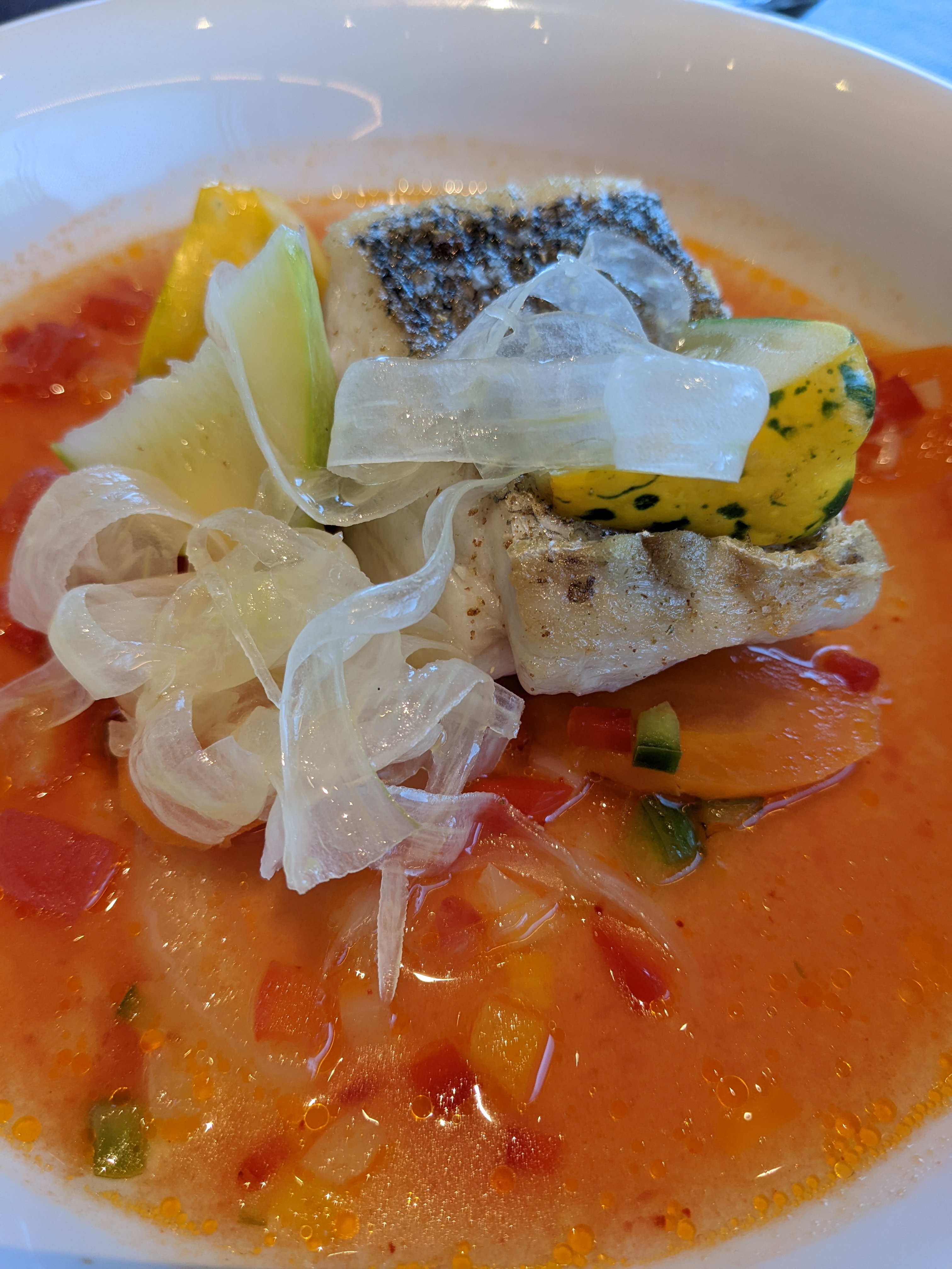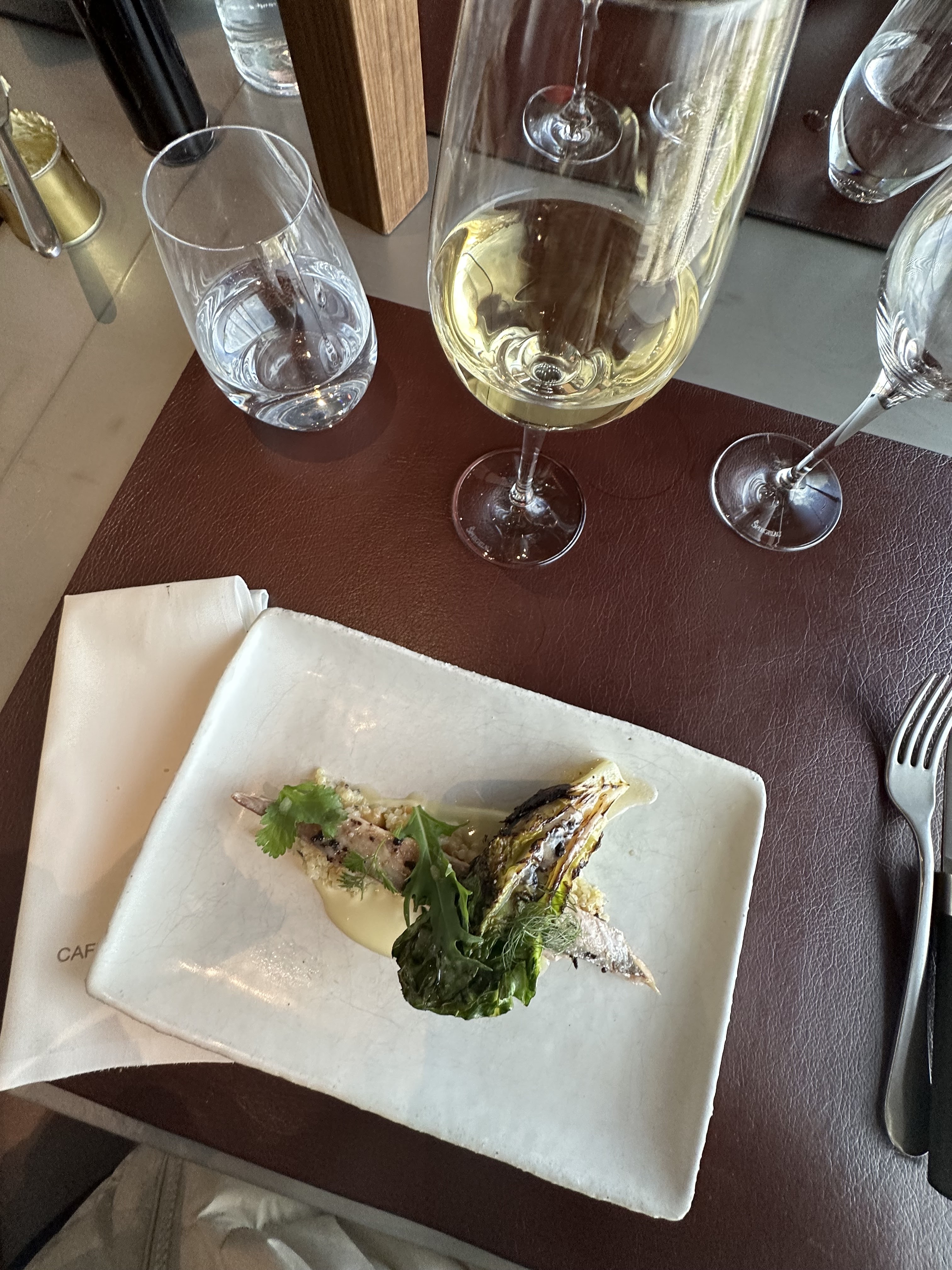 Très bon accueil professionnel de la responsable Super qualité des produits et les plats qui sont dans la droite ligne du Suquet Cadre épuré et inventif dans la lignée du musée Cependant deux remarques : - dommage que les rideaux en lamelle de fer de la cuisine occultent complètement la cuisine - notre serveur était hautain et désagréable dans ses remarques. Mais nous avons passé un moment très agréable Edouard Luc et Pablo