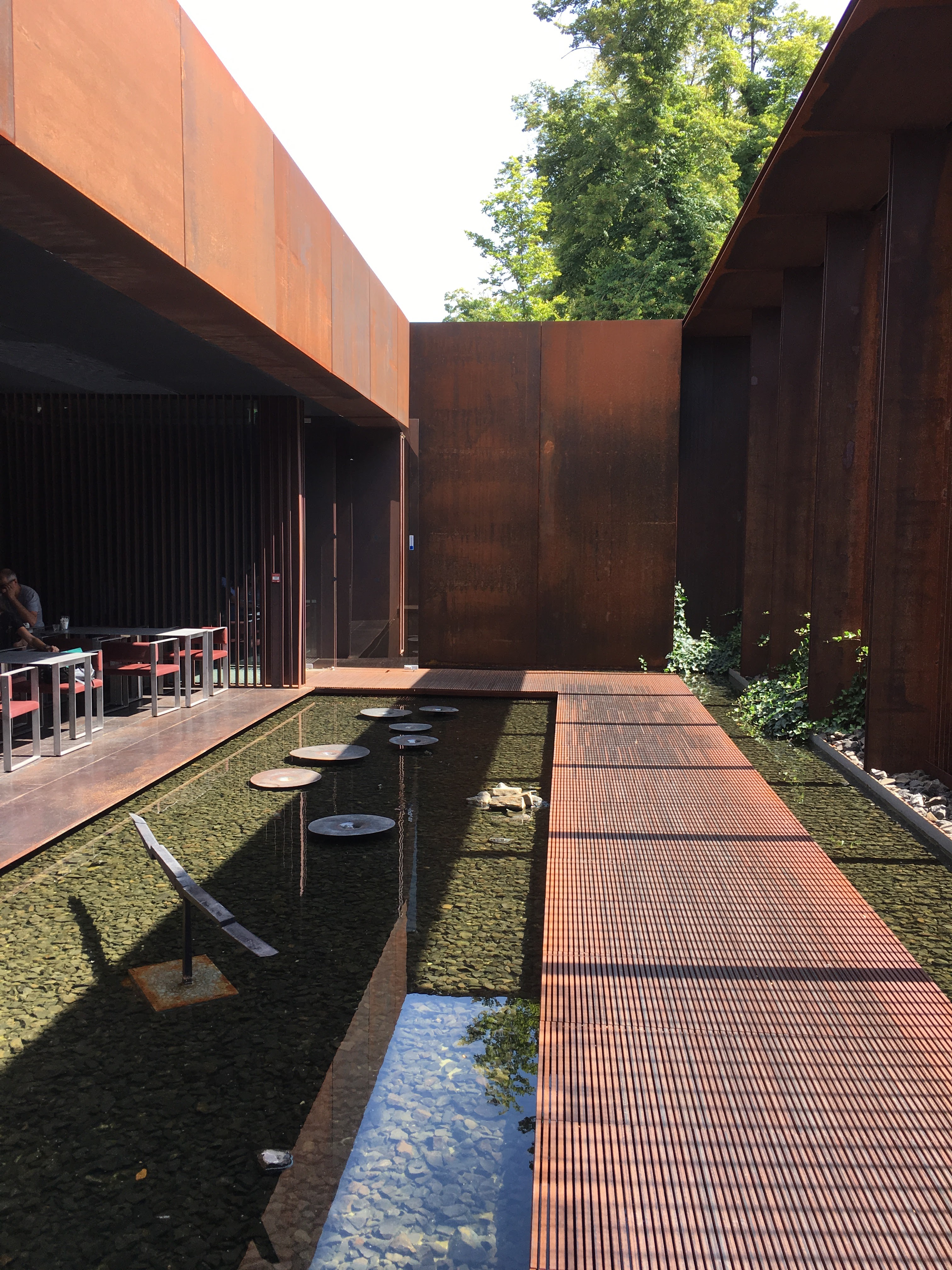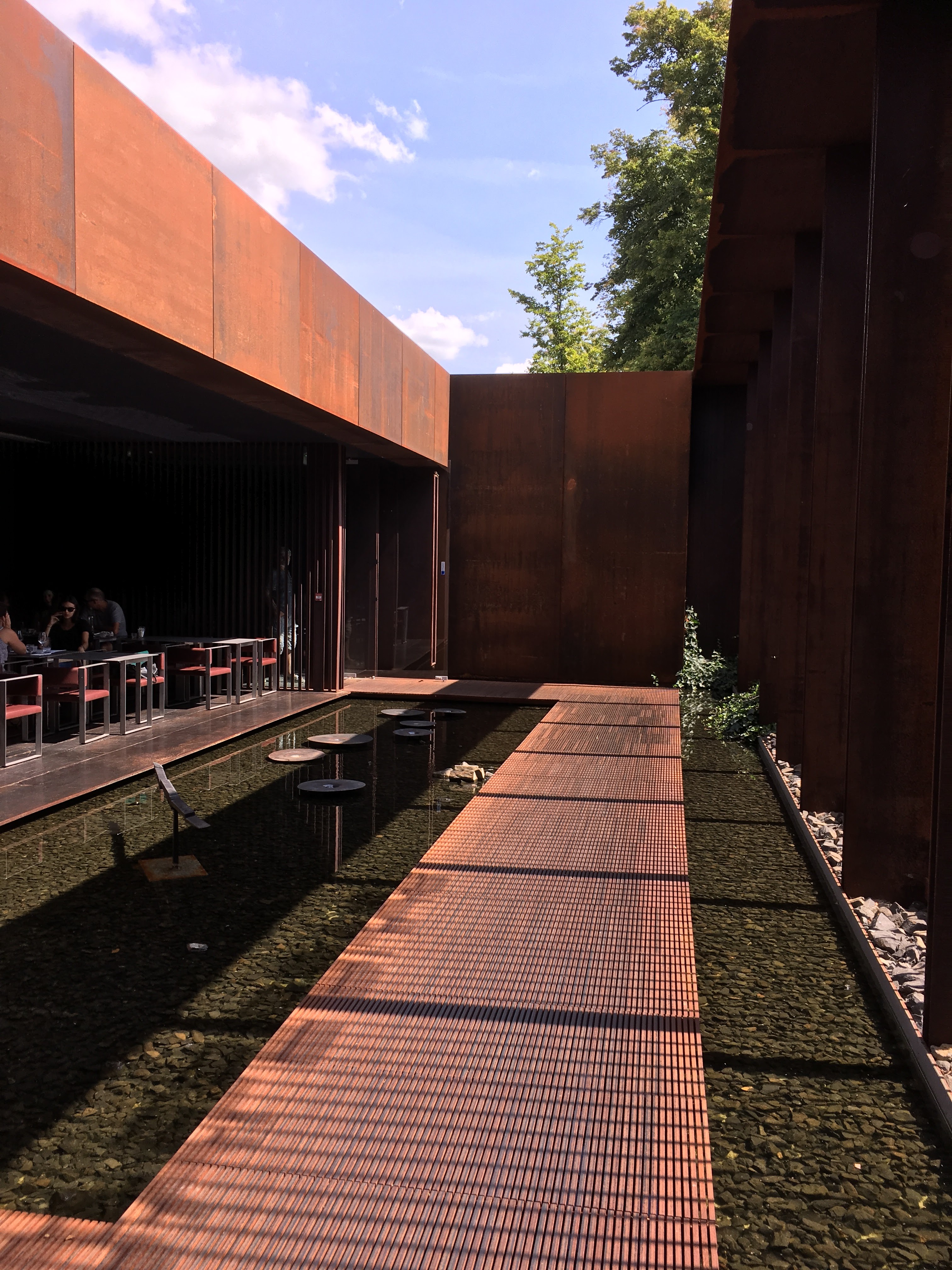 Très bel endroit jouxtant le musée Soulages. Nous n'avons consommé que des boissons par manque de temps, donc un avis sur la nourriture serait non pertinent. Le cadre est serein, moderne et très épuré, dans la ligne du musée Soulages. L'entrée est ravissante avec deux plans d'eau entretenus à la perfection. Le personnel est soigné et très accueillant. Le tout donne une indication du soin de la restauration, mais de nouveau, je ne peux pas commenter ce point.