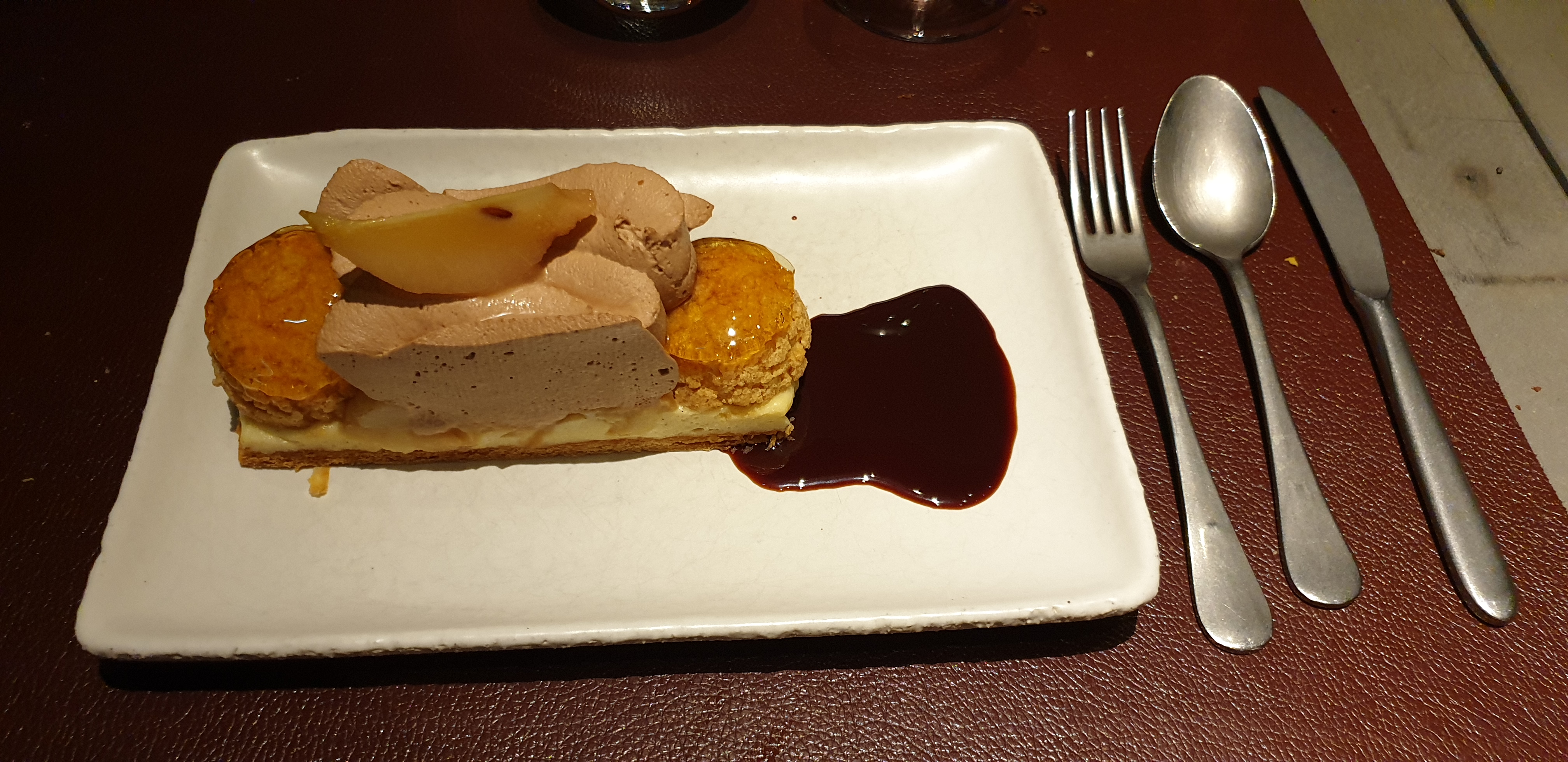Vraiment dessus pour un menu à 32 euros une entrée avec des courges sur une soupe de légumes aucun intérêt gustatif en plus servis froid, le plat convenable joues de porc c est pas la quantite de légumes qui va vous étouffer 2 c à s de haricots coco! Et un st Honoré pour le dessert très bon mais rien de nouveau pour se type de restaurant. Et le fromage En supplément pour 6 euros !! On trouve les mêmes possibilites de se restaurer ailleurs pour 22 euros.