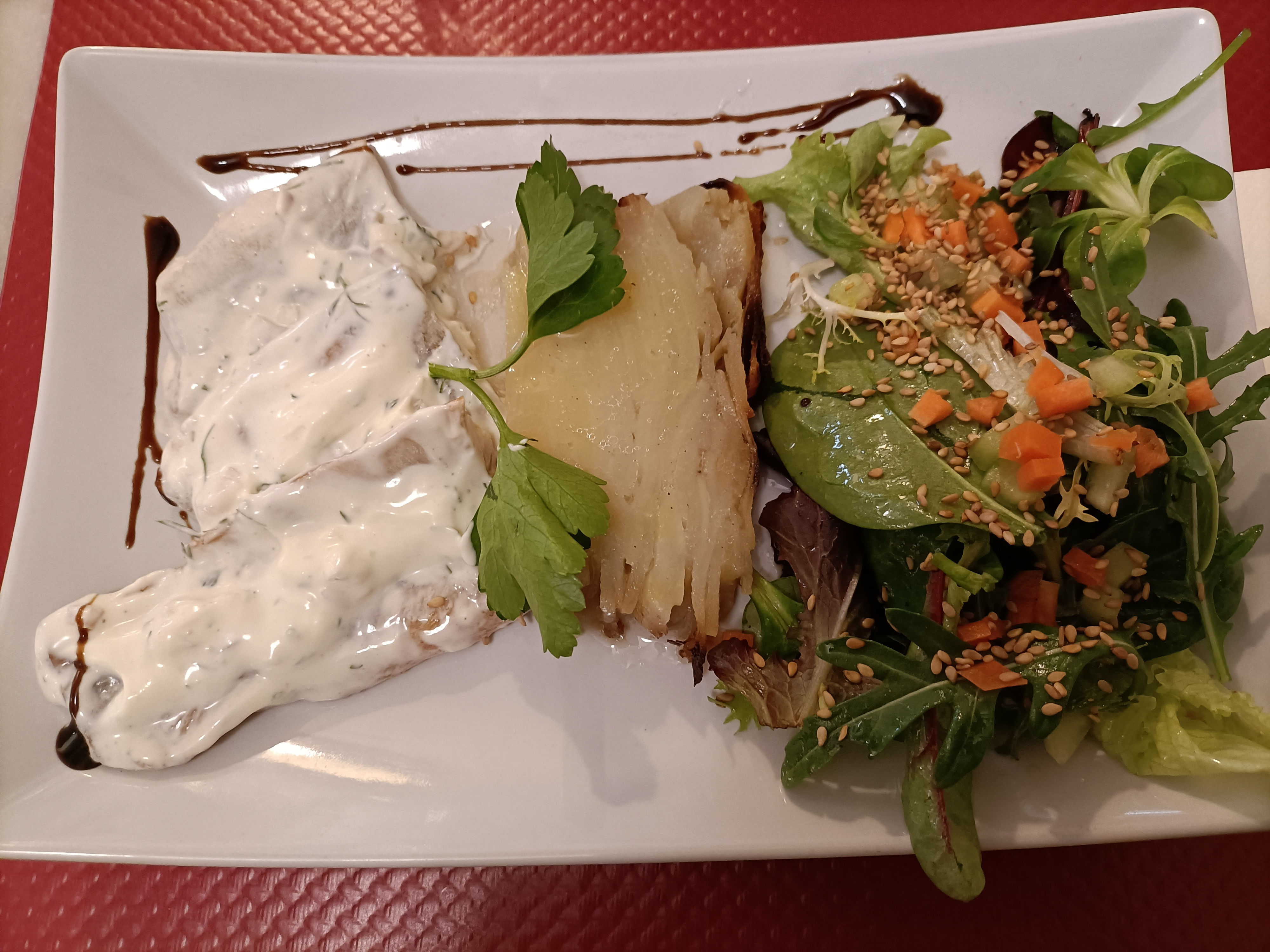 Très très bon que du fait maison avec des produits frais de saison .bravo aux cuistots rapport qualité prix excellent une cuisson parfaite du cabillaud .