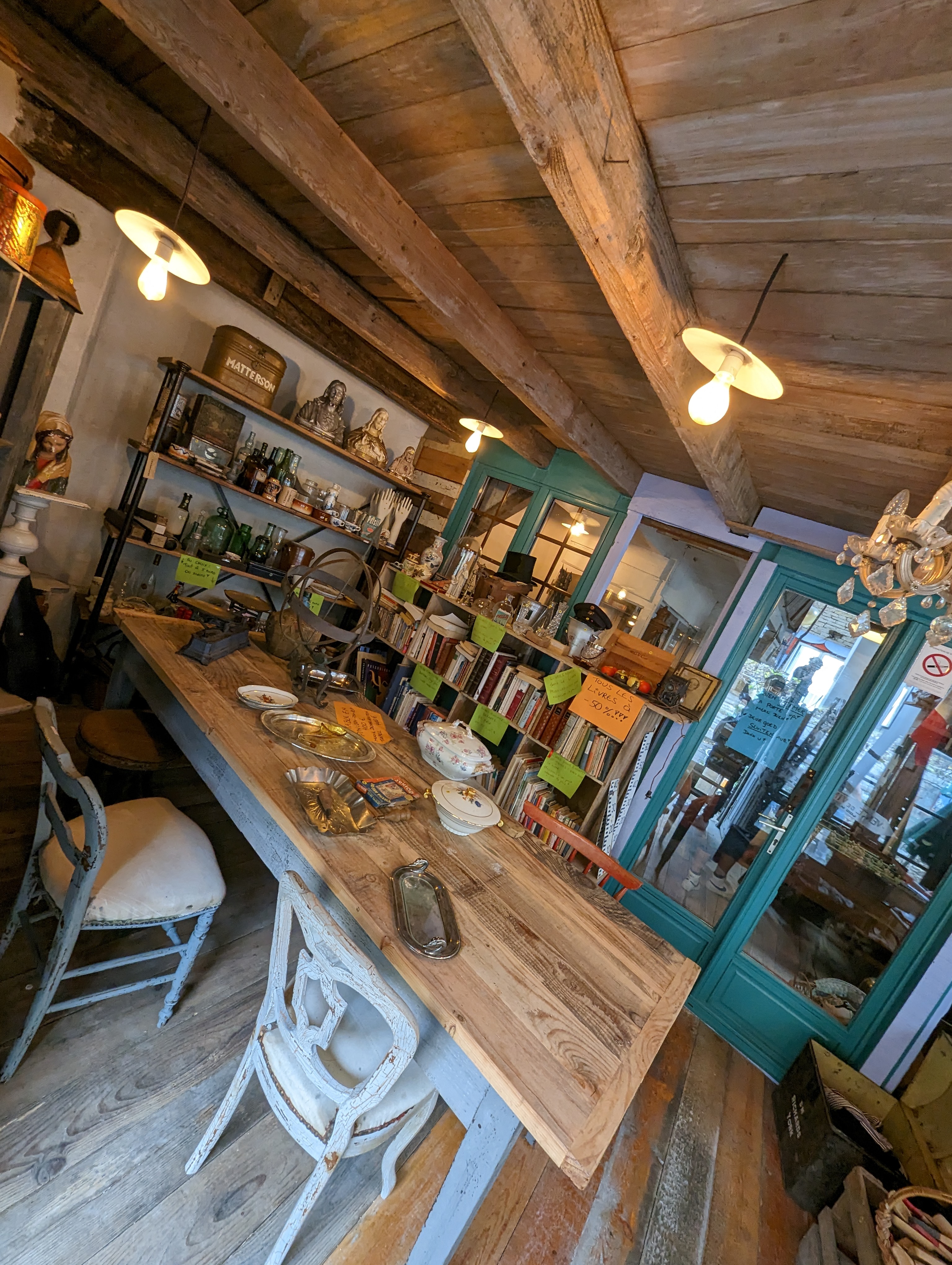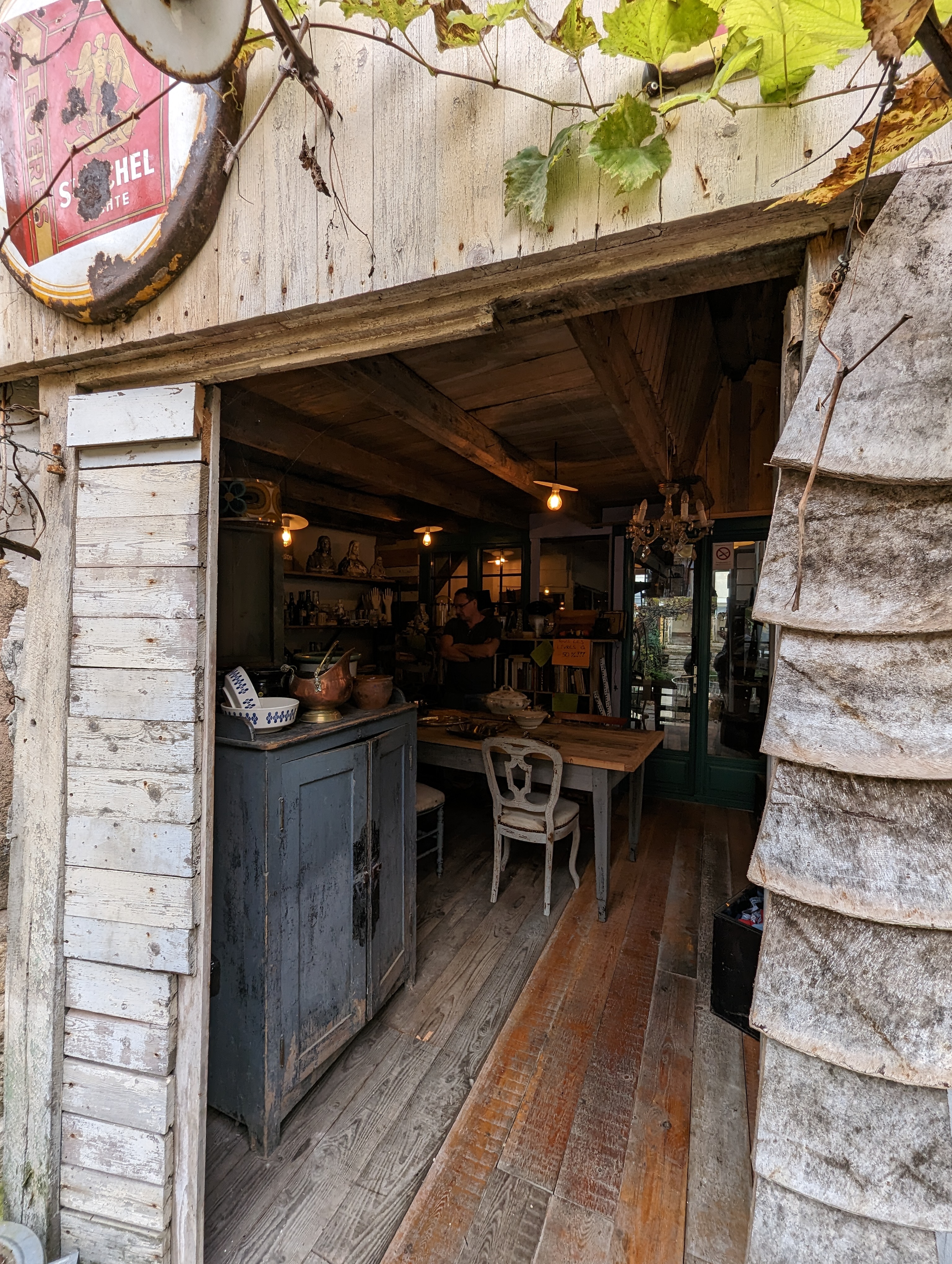 Restaurant café brocante, 3 activités réunies en un seul lieu. La cuisine est réalisée entièrement sur place par le patron Dimitri, et est ensuite servie par la patronne Sytske, tout deux originaires de Belgique. On retrouve régulièrement des Néerlandais et des Belges chez eux à table.