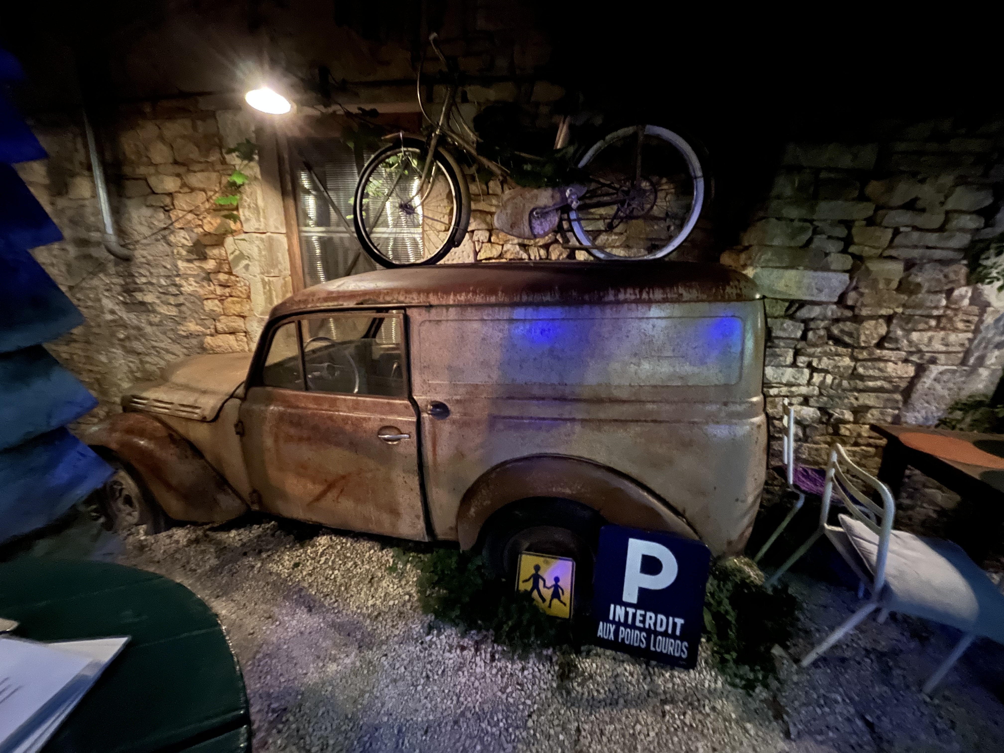 L'atmosphère française (flamande) parfaite, la cuisine délicieuse, les hôtes formidables et le mystère de la vieille voiture à l'endroit où elle ne pourrait pas être, n'est-ce pas ?