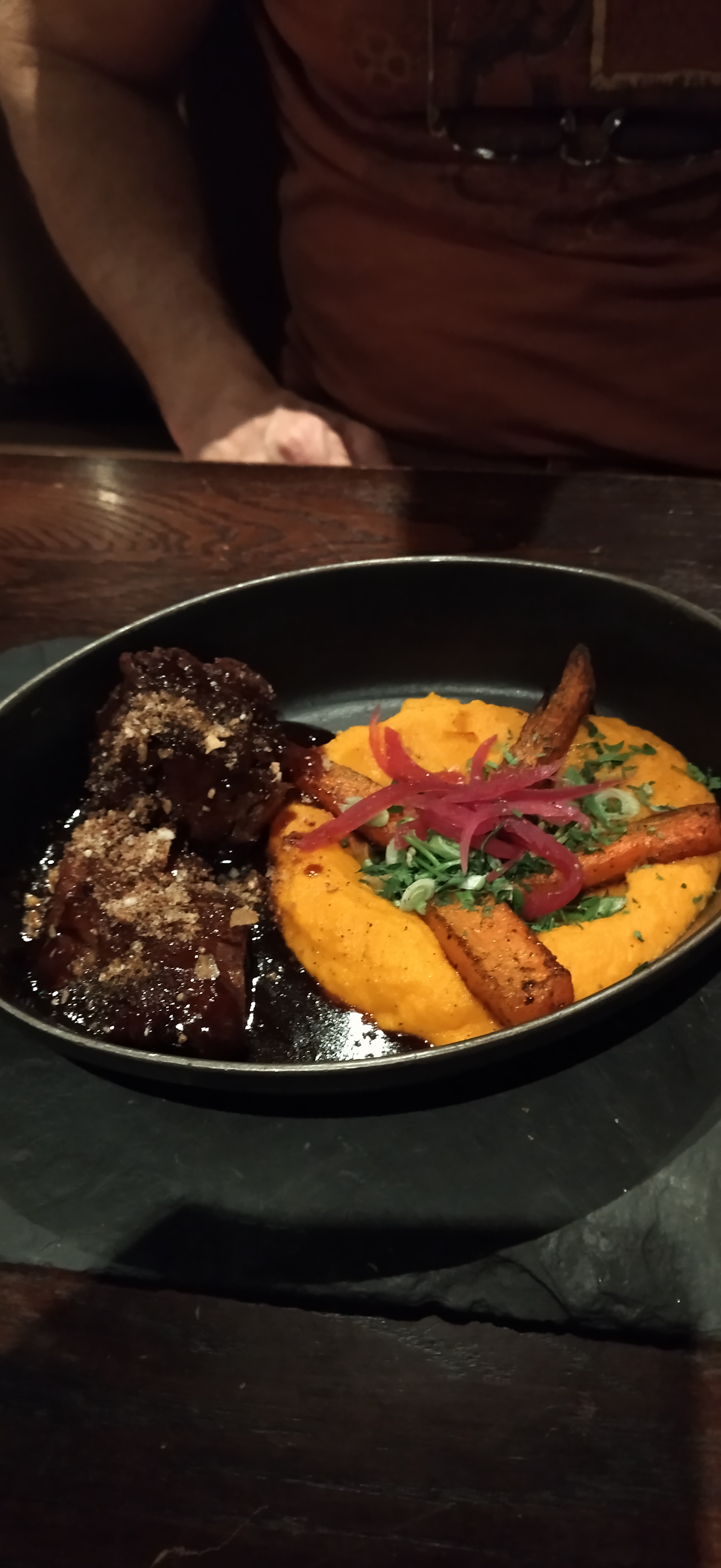 Très accueillant. J'ai mangé un paleron de boeuf aux carottes que j'ai trouvé très bon et très original : les carottes et la viande sont presentés en plusieurs textures. Je recommande.