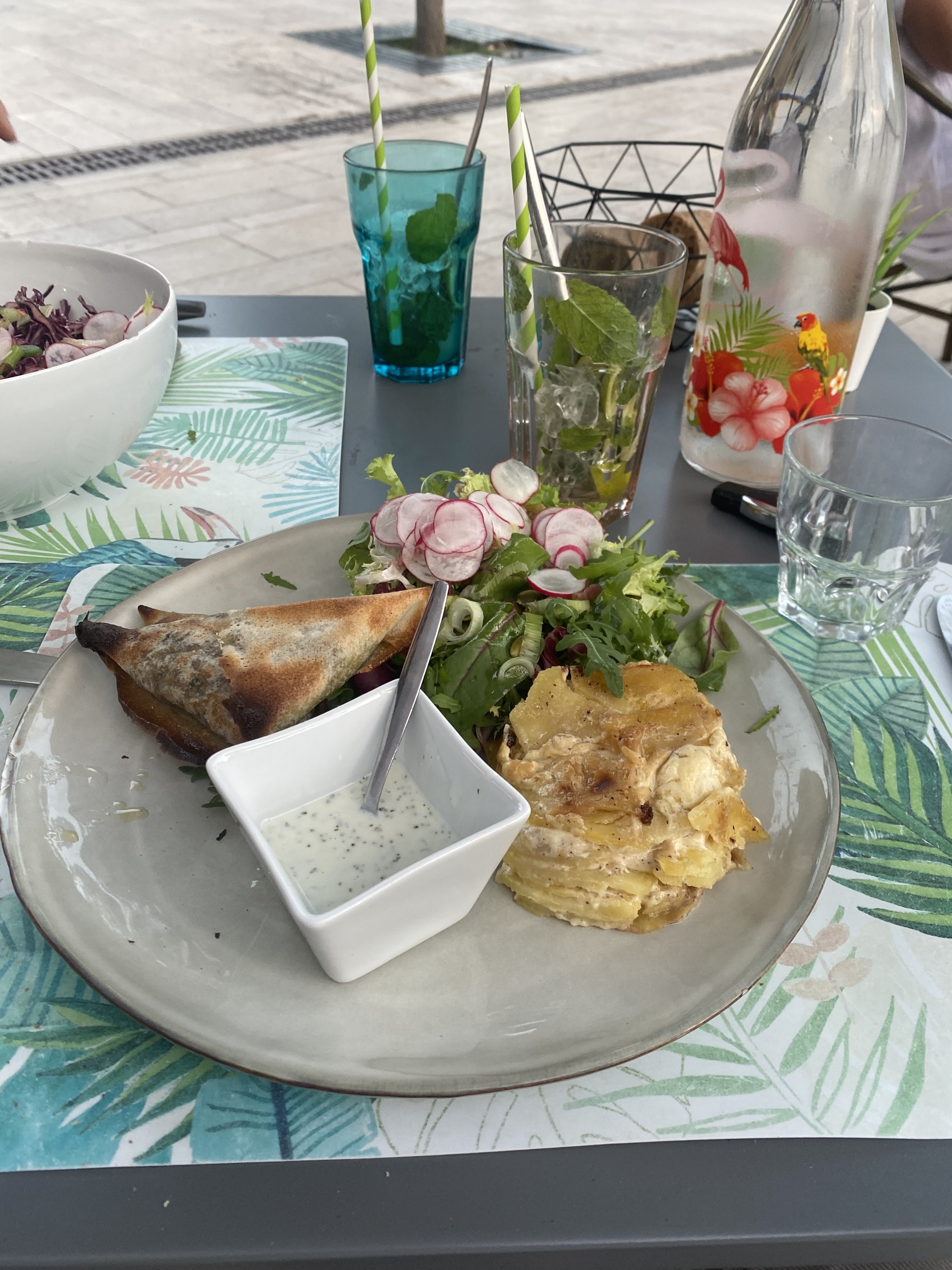 Assiettes gouteuses et copieuse. Cadre super. Très bien placé avec une belle terrasse. A refaire