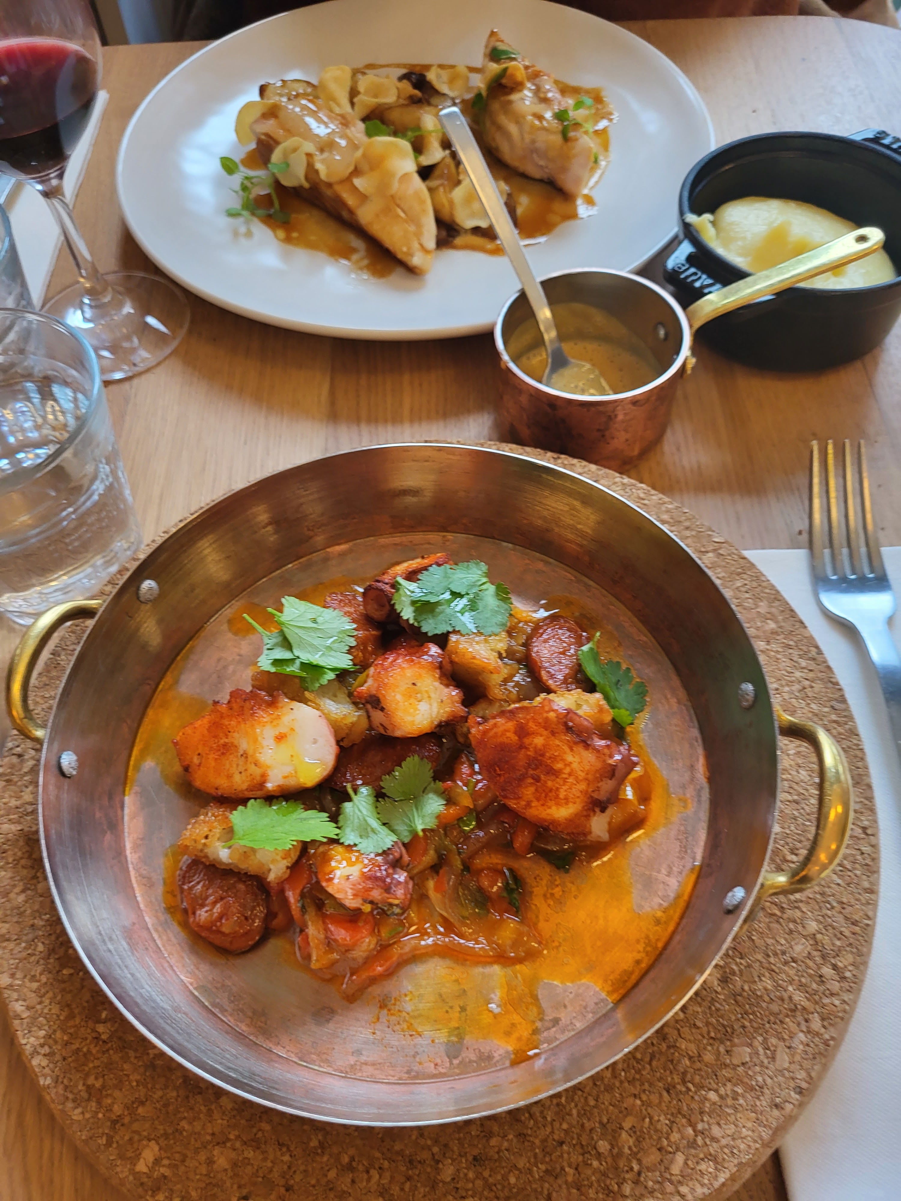 Ça y est les super restaus sont à Clichy ! Belle soirée en amoureux dans un cadre bistro avec des plats de grande qualité. Des portions généreuses et gourmandes. Mention spéciale pour le poulpe grillé à la plancha en entrée (poivrons bien épluchés !). De belles Saint Jacques avec la purée généreusement beurrée 😍 On a eu faim pour les desserts 100% maison : riz au lait (mention spéciale pour les noisettes du Périgord grillée) et le profiterole maison. Là c'est de la vraie gourmandise 😁 Très agréable de discuter avec le patron pour échanger sur leur aventure 👍 Robin au service sympa pro et souriant (et merci pour le conseil vin, le Petit Chablis était parfait)