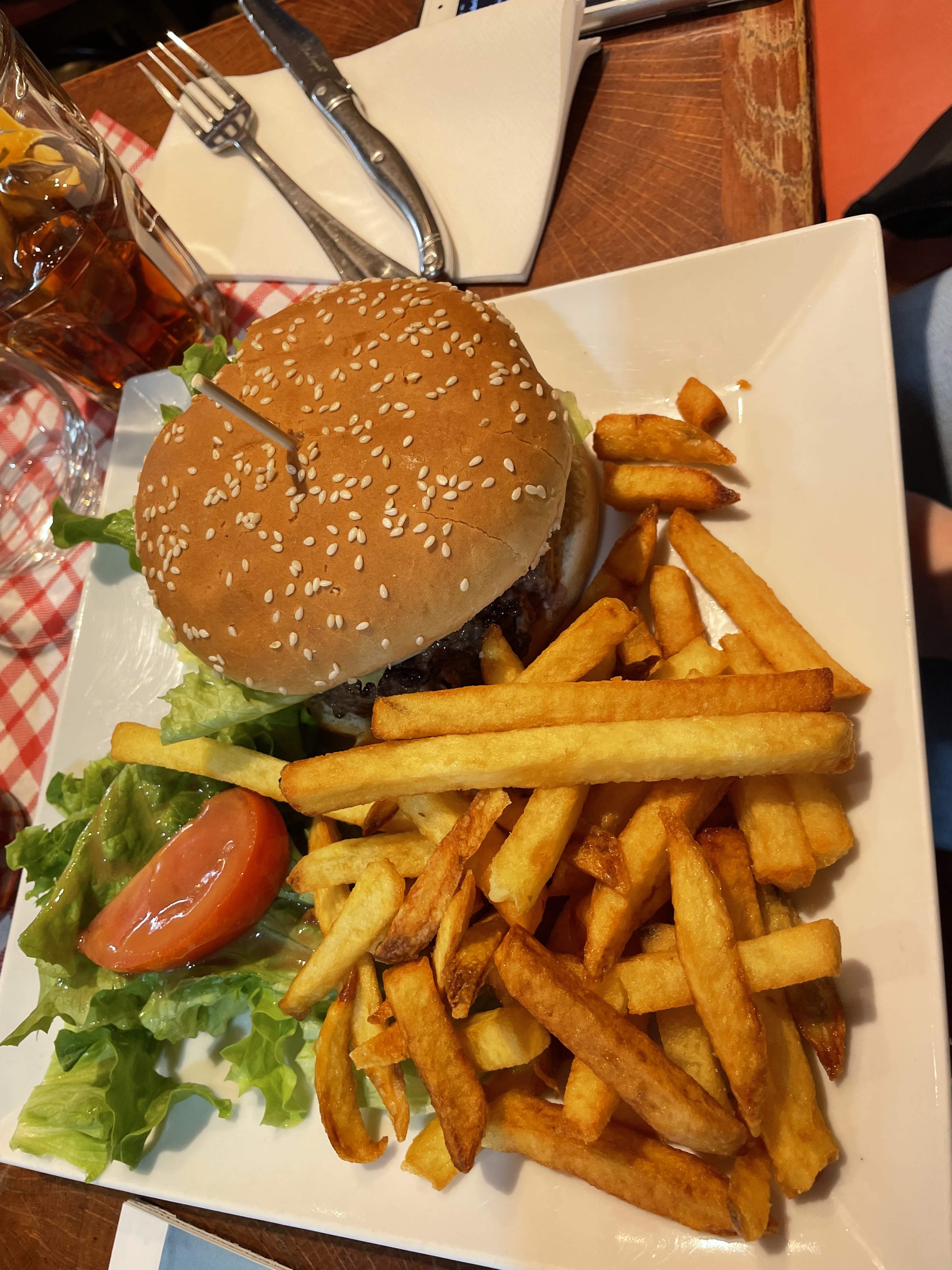 Service lent (30min pour avoir les boissons pour boire un sirop à l’eau à 5,50€). Nous avons du aller chercher les verres pour pouvoir se servir en eau. Cuisine congelée décevante. Toilettes sales et si vous avez la chance vous pouvez manger à côté de la queue de clients qui veulent aller au toilette. Attrape touriste. Déçue.