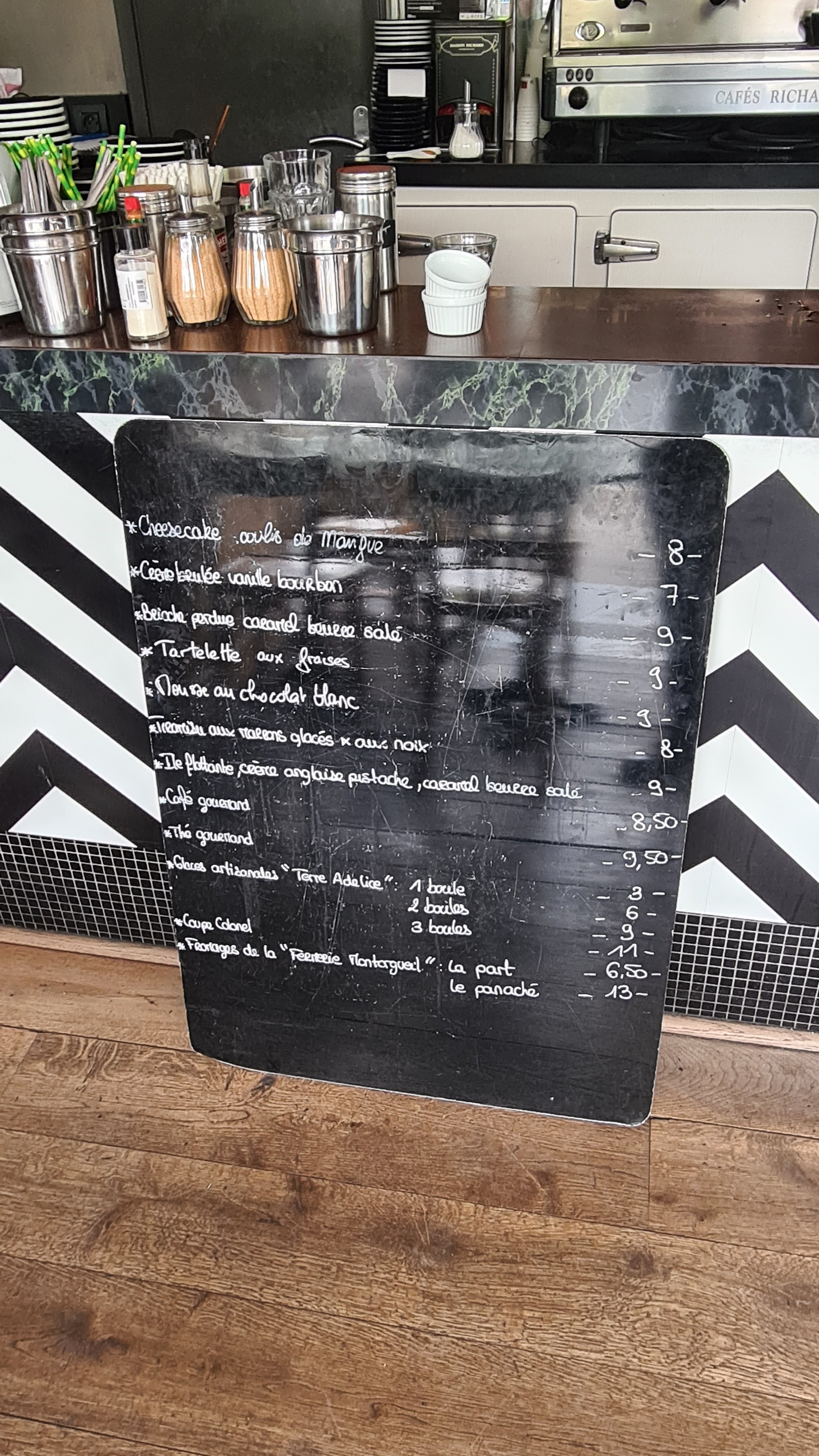 On y allés juste allé pour un café au comptoir pendant l'heure du déjeuner. Un artisan coupait son parquet a la meuleuse sans se soucier des clients. On demande s'il peut faire une pause parce qu'on s'entend pas, réponse, non. On a bien compris qu'on dérangeait. Si mon avis et mes photos vous ont aidés, merci de cliquer sur le pouce 👍
