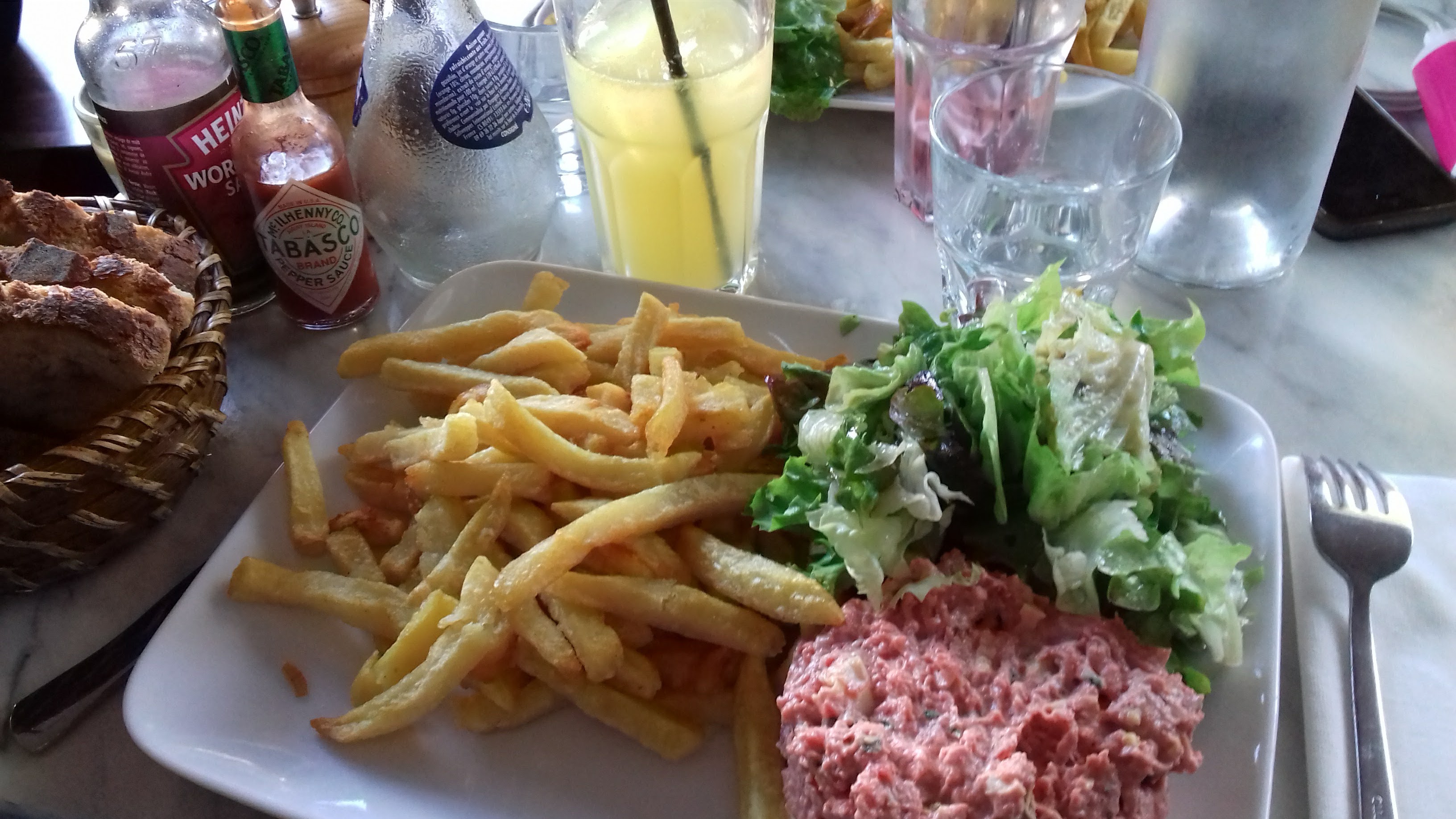 Terrasse très agréable, service efficace et aimable. Le tartare de bœuf est excellent et les frites sont croustillantes. Le fondant au chocolat très bon mais, et c'est une première, un peu trop copieux. La glace vanille artisanale est délicieuse. Adresse à recommander.