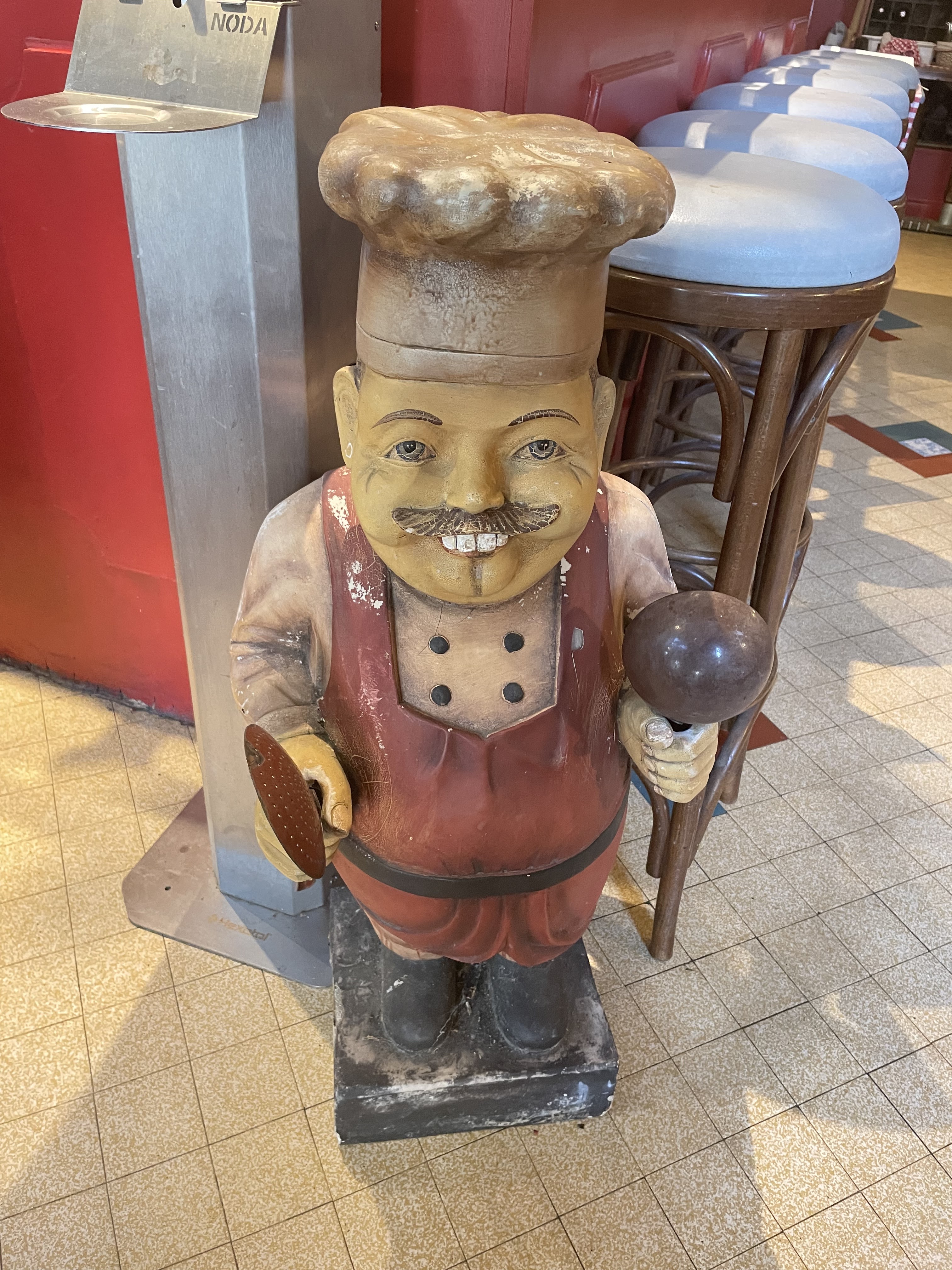 Accueillis par un petit jeune qui manque vraiment d assurance, d ‘expérience et de chaleur, nous avons pris place dans un coin sur une table pour deux. Le cadre se veut bouchon lyonnais, c’est un amalgame de vieilleries de bric et de broc .... Choix des menus sur un tableau au fond de la salle (faut avoir une bonne vue!) Service plutôt rapide Nous avons pris des ravioles de romans pour l un et pour l autre une quenelle sauce homardine ... c’était bon mais pas exceptionnel ! Pas très chaud... En dessert nous avons pris des crèmes brûlées à la vanille très bonnes ! Avec un verre de vin pour mon conjoint Le tout pour 49,50€ Franchement c’est un peu cher pour ce que nous avons mangé car pas très copieux...