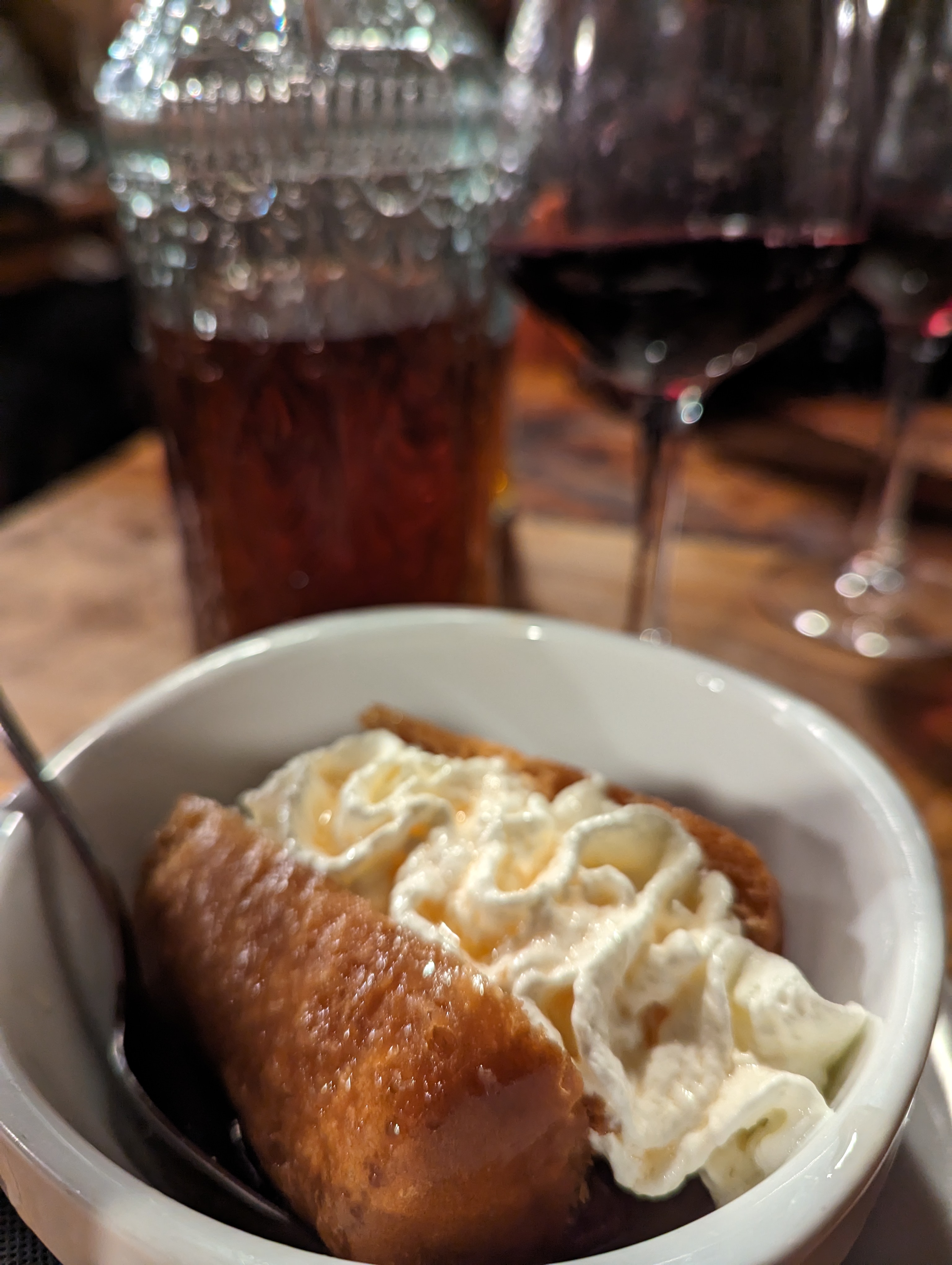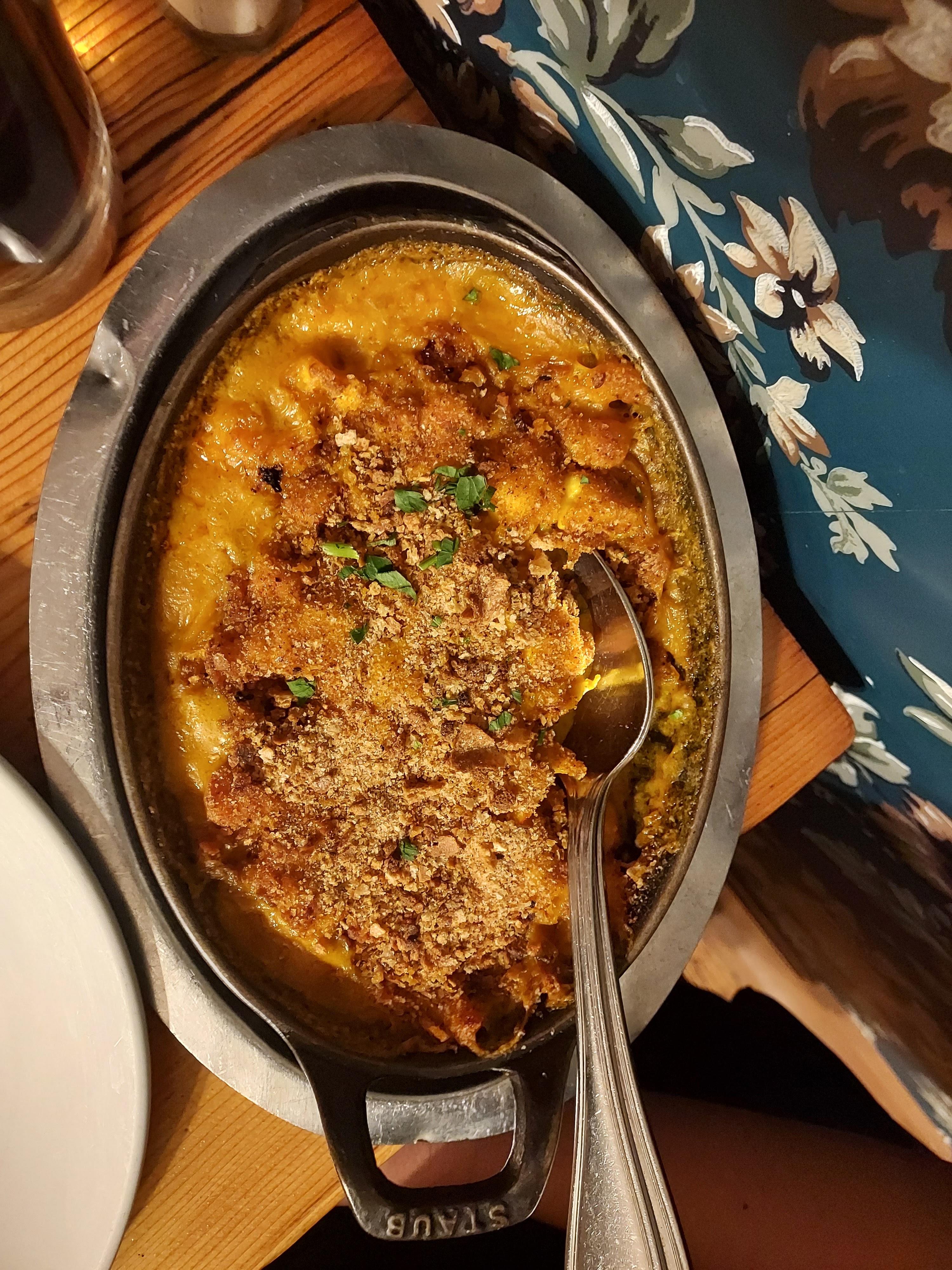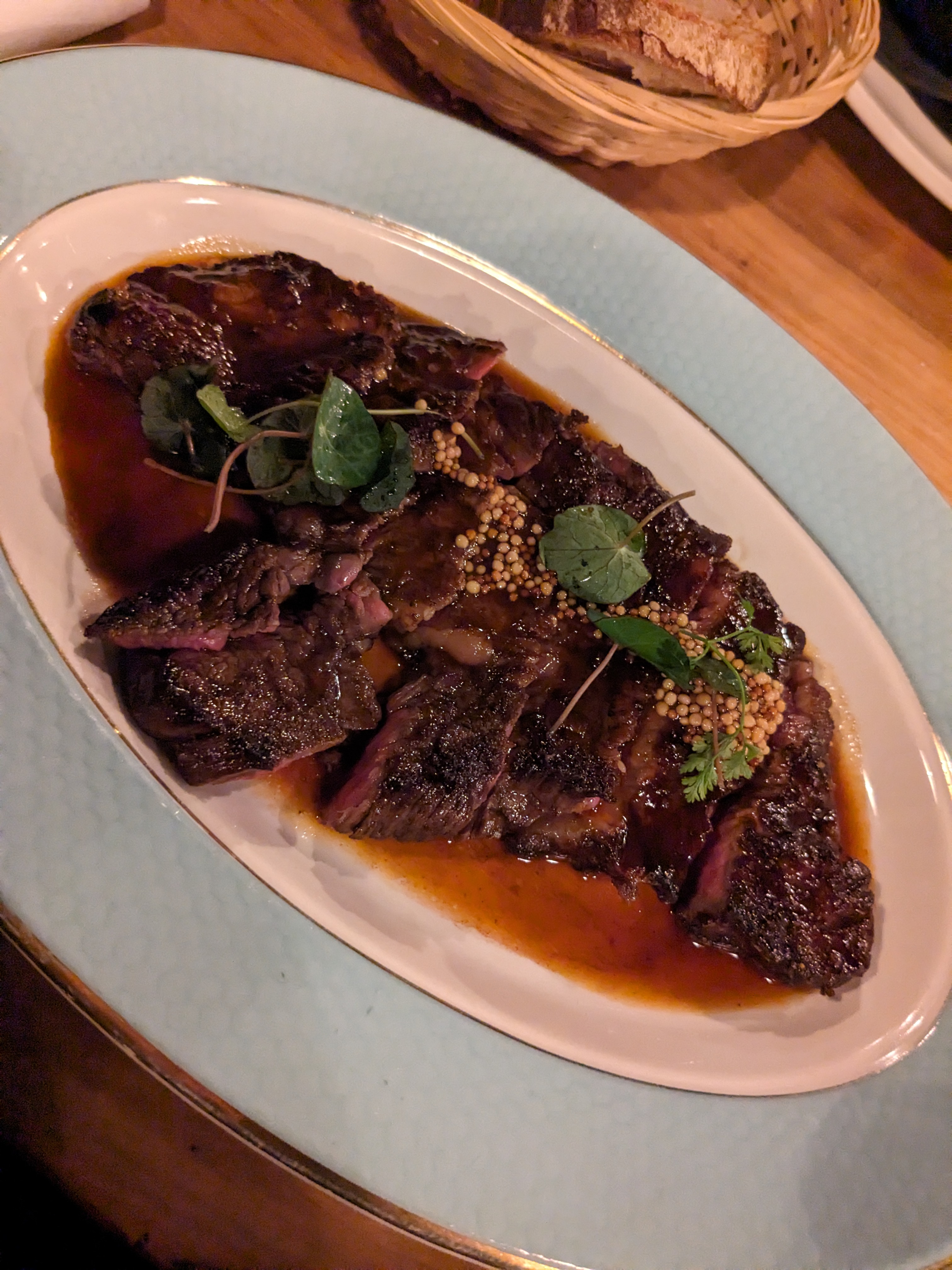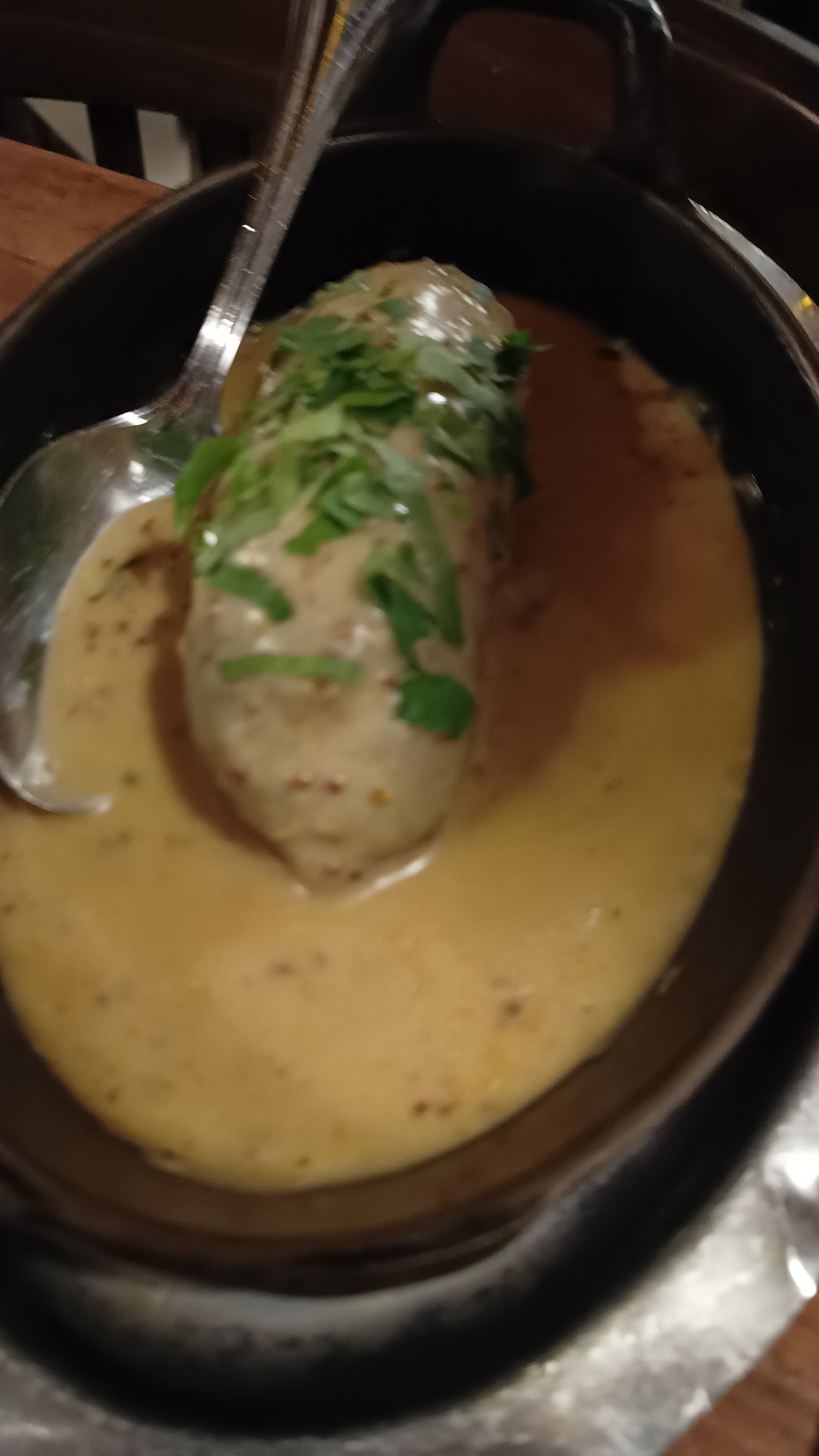Le service et l'ambiance étaient excellents, le vin était incroyable, le poulet aux morilles aurait pu être plus savoureux (sel, poivre) mais la sauce était excellente