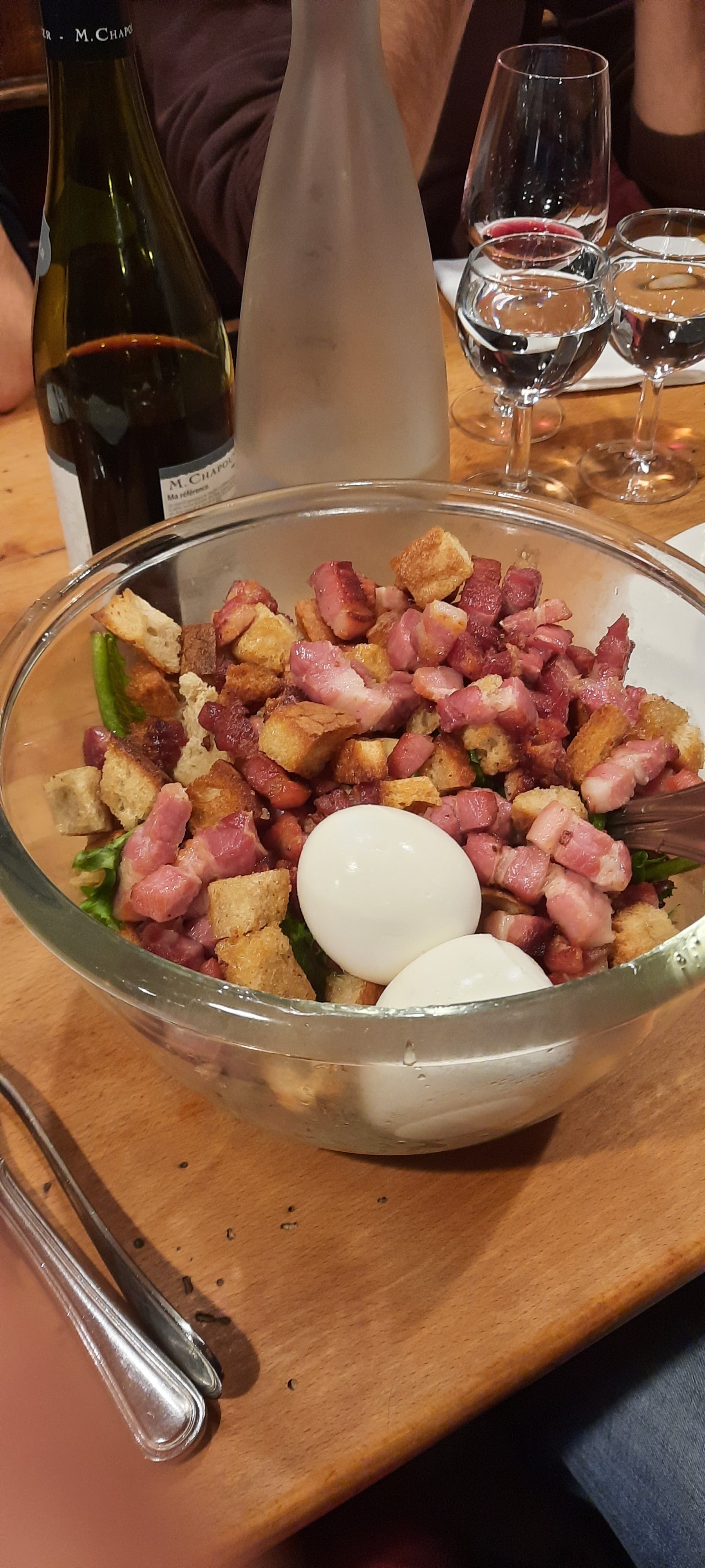 Tout s'est bien passé. Seuls bémols : la salade lyonnaise (trop de croutons et lardons, pas assez de salade verte), l'espace réduit entre les chaises et les tables.