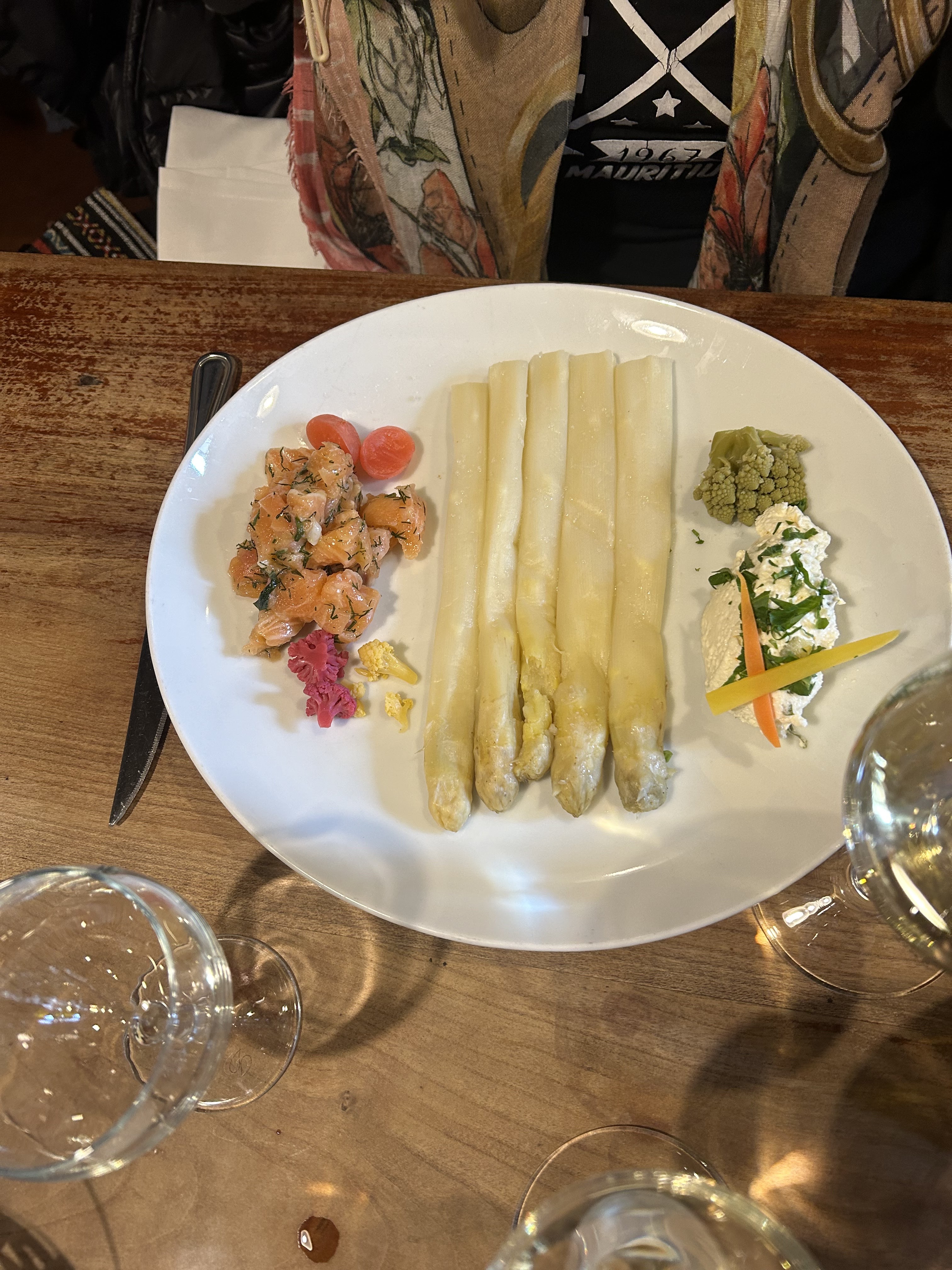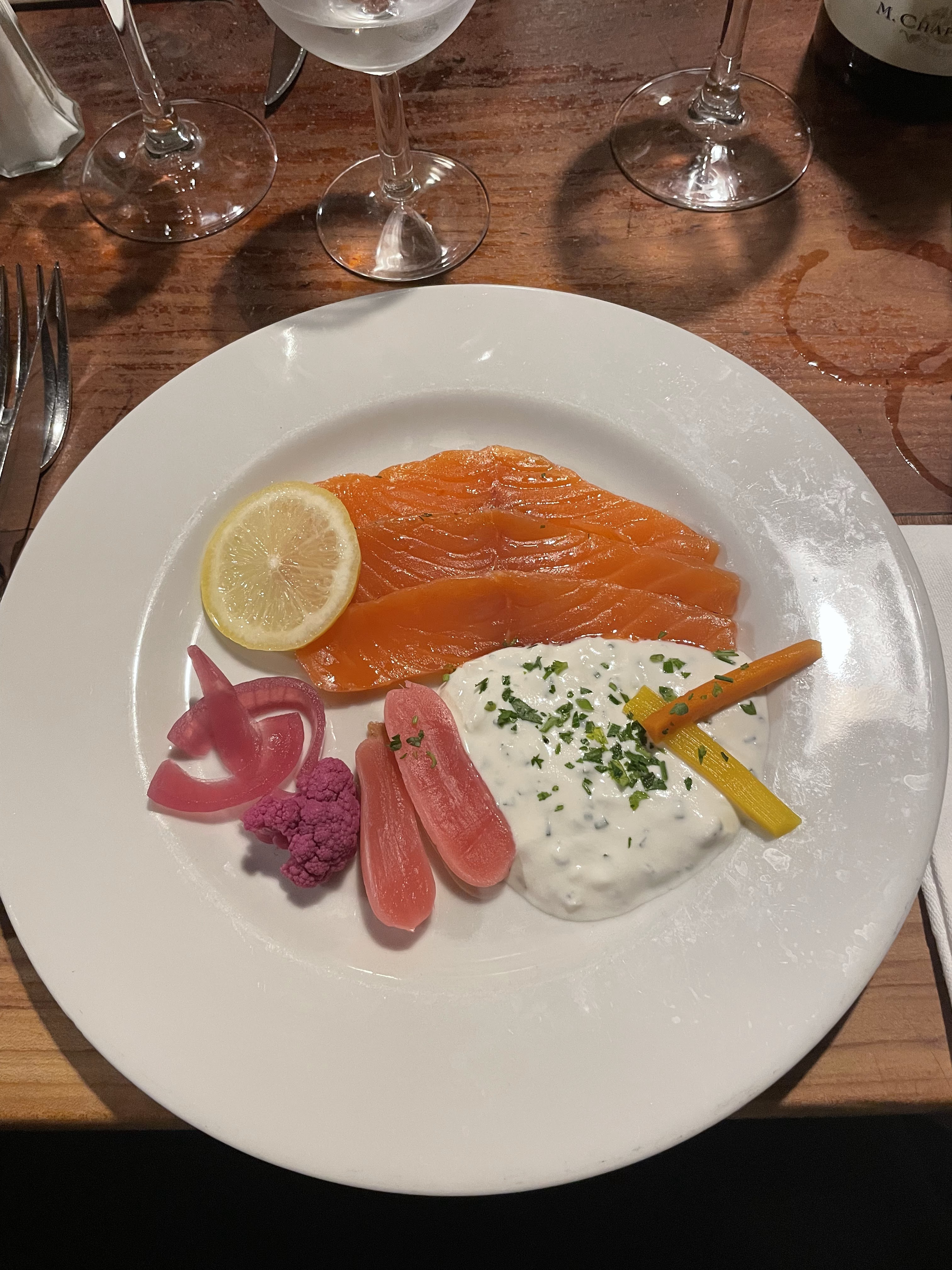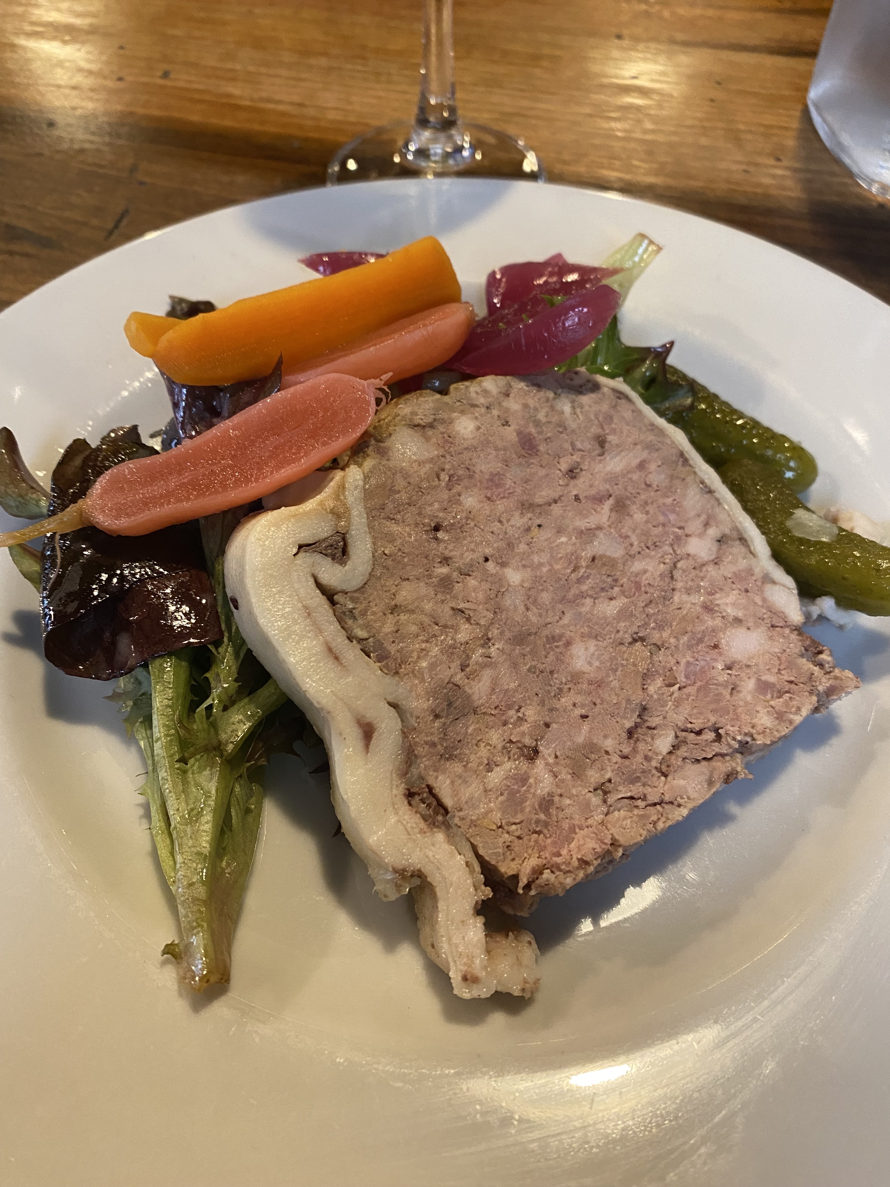 Si bon! Parfois, il est difficile de trouver des plats de légumes en voyage et cet endroit propose tellement d'options savoureuses et délicieuses (haricots verts, champignons, carottes jaunes et oranges, salade de laitue, pommes de terre, cornichons et sauce aux morilles (si vous pouvez compter cela comme un légume). , mais toujours incroyable, évidemment) + les plats standards de viande/poisson, donc les opportunités sont infinies et la nourriture a été incroyable - ne dormez pas non plus sur les choix de vins, très complémentaires à la nourriture.