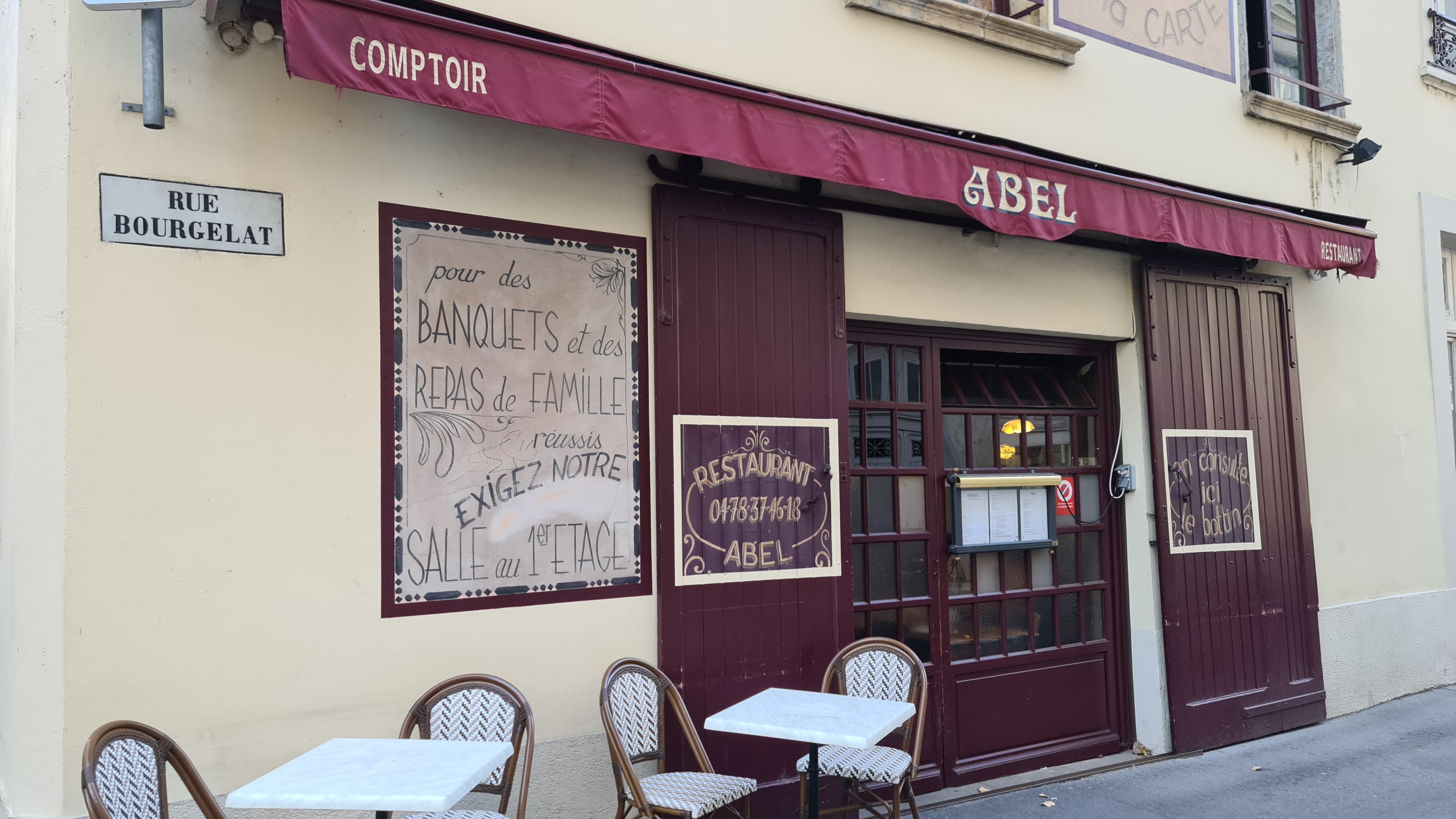 Le bouchon lyonnais en mode perfection. Les rognons de veau à se pâmer, le foie rosé, des sauces d'anthologie... et Les desserts hyper savoureux. Des recettes rodées par le temps et l'usage. Un régal de tous les instants dans une cadre au charme désuet. Service impeccable. Le café comptoir Abel est le plus vieux bouchon de Lyon. Il a ouvert en 1928. Le bâtiment en lui-même date de 1726. Classé UNESCO.