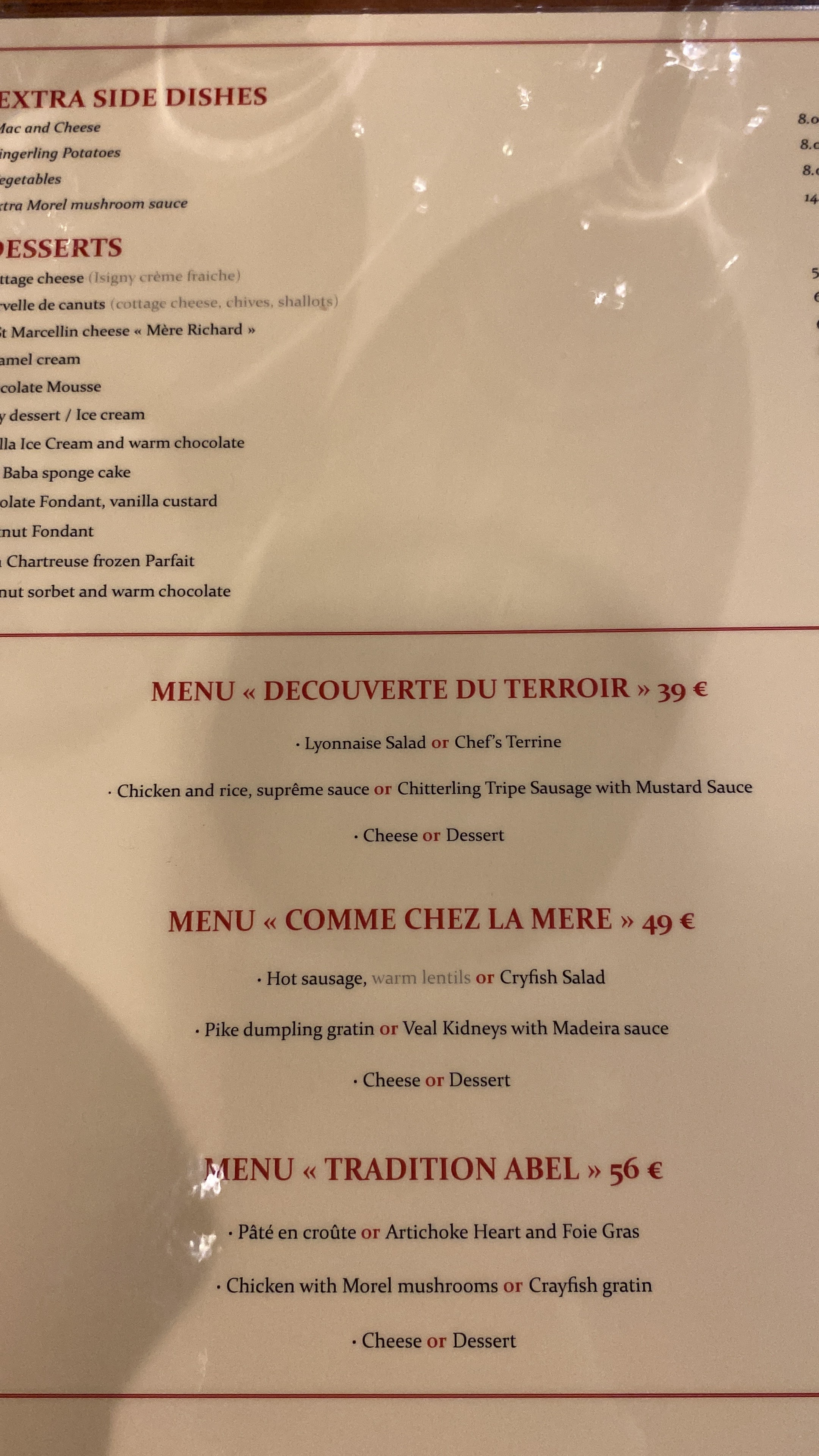 Rien à dire sur les spécialités lyonnaises, le goût et la quantité sont là mais le prix du menu (47 euros) nous a paru exagéré au regard d'une cuisine qui reste certes bonne mais simple.