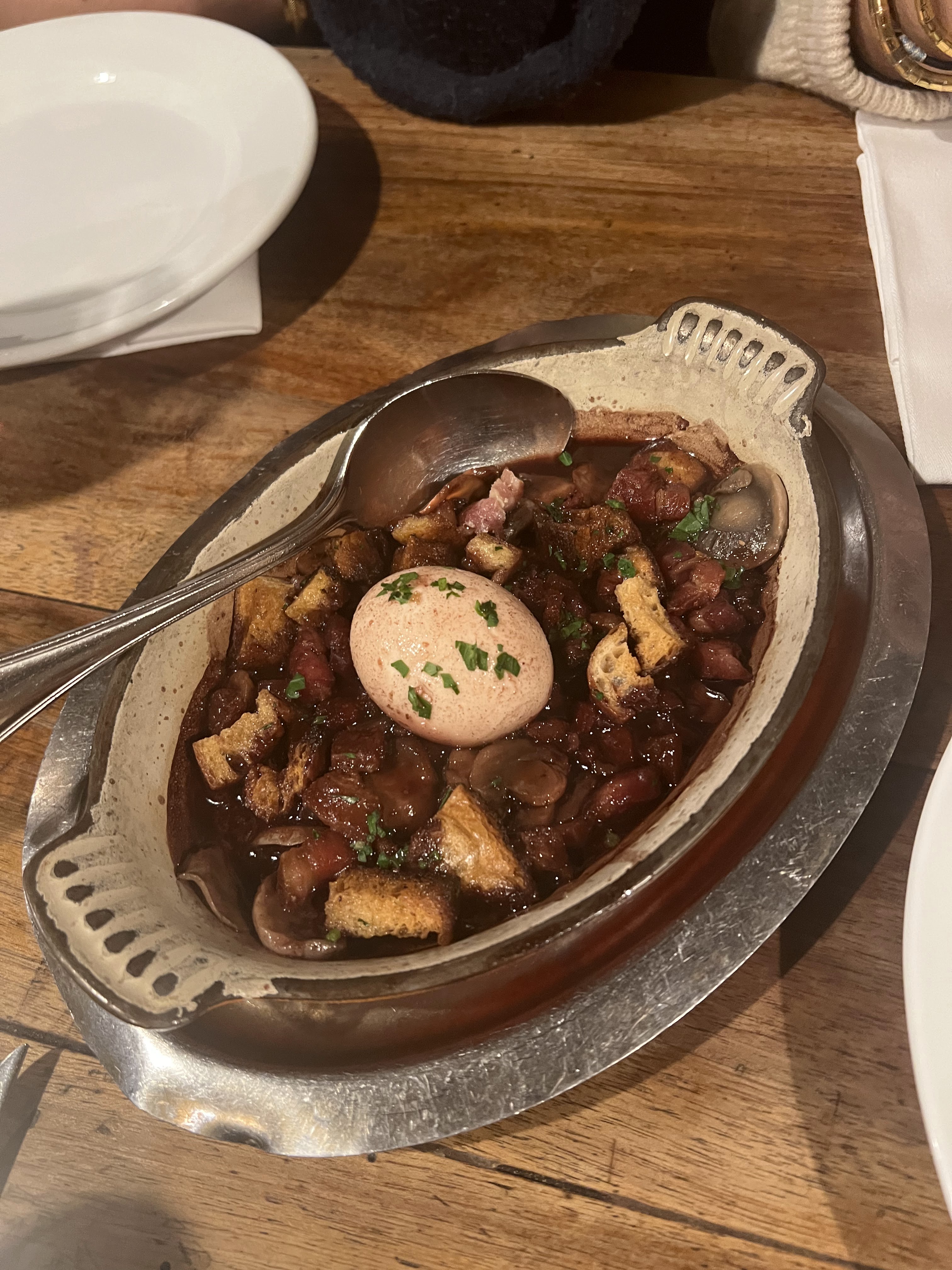 C'est un restaurant très fréquenté. Le personnel courait partout mais ils étaient tous sympathiques. En termes de nourriture. ... Les entrées ont bien commencé. J'aime beaucoup la salade d'écrevisses. En plat principal, nous avons commandé les fameux bourgignons au poulet et au bœuf. Nous ne pouvions même pas mâcher. La viande était très dure et sèche. C'est peut-être comme ça que ça devrait être en France ?? Le dessert était ok. Dans l'ensemble, nous avons été assez déçus.