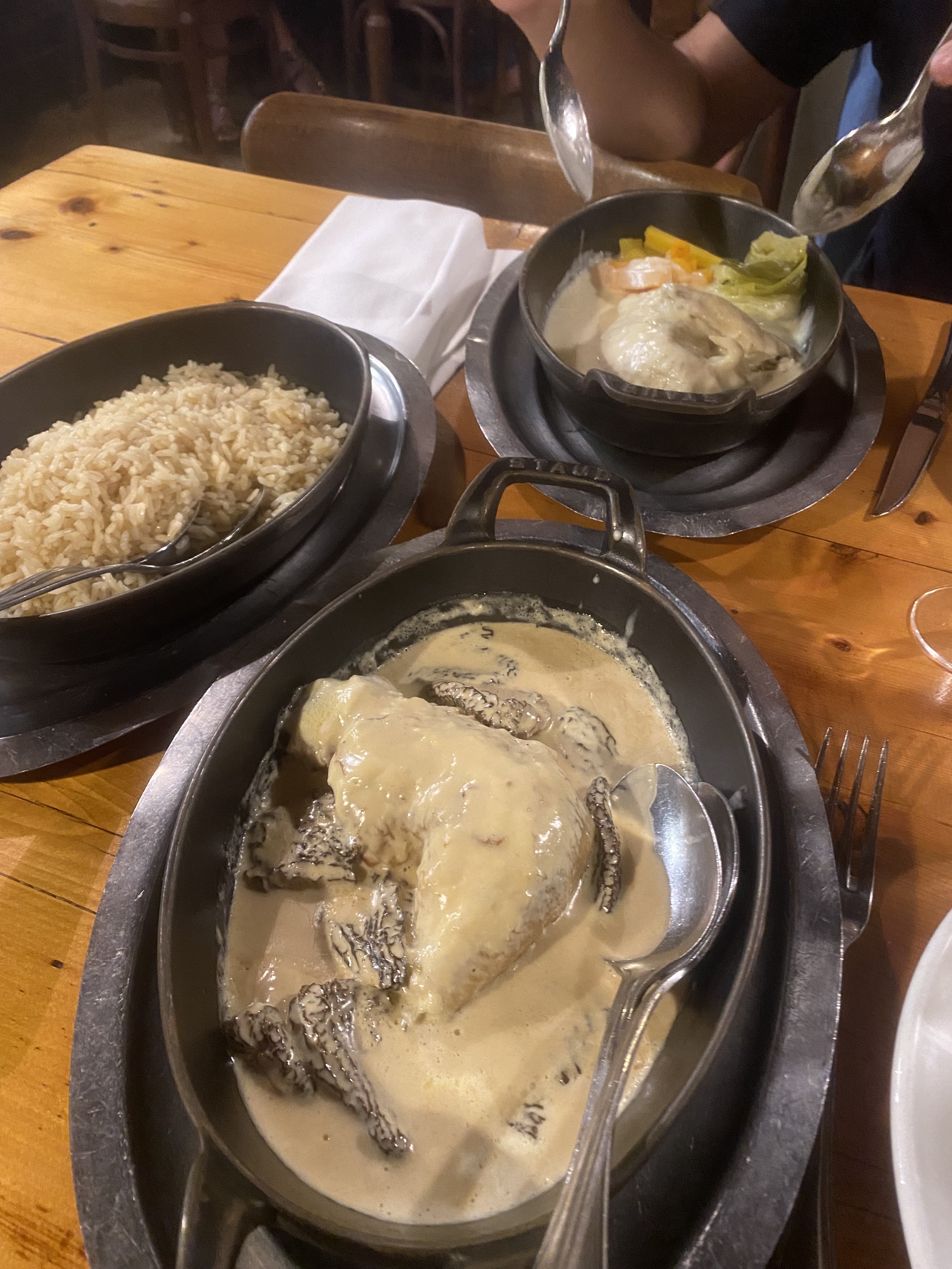 Ris de veau morilles excellents, tête de veau bonne, poulet au morilles bon mais surtout sauce excellente, riz pilaf parfait. Très bons vins, un peu cher. Vaut le détour