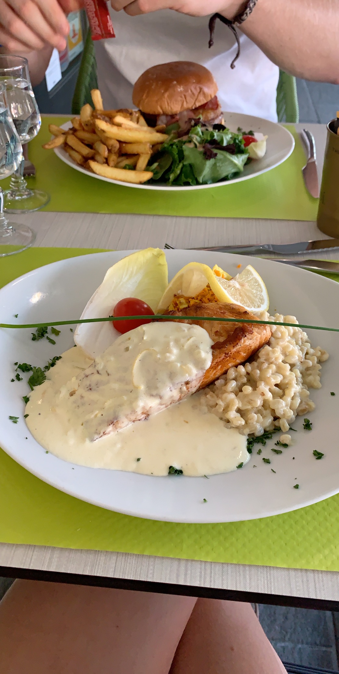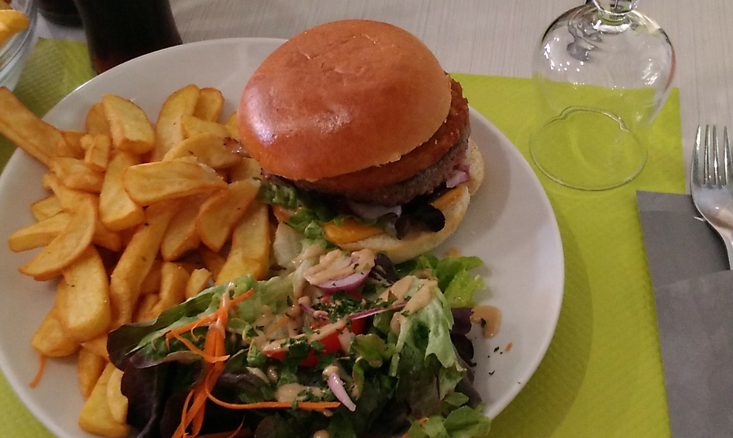 Lieu très agréable, personnel accueillant. Repas correct dans l'ensemble, malheuresement les frites ne sont pas maison, j'ai trouver un poil dans mon assiette, assiette changer immediatement, prix correct, je recommande neanmoins