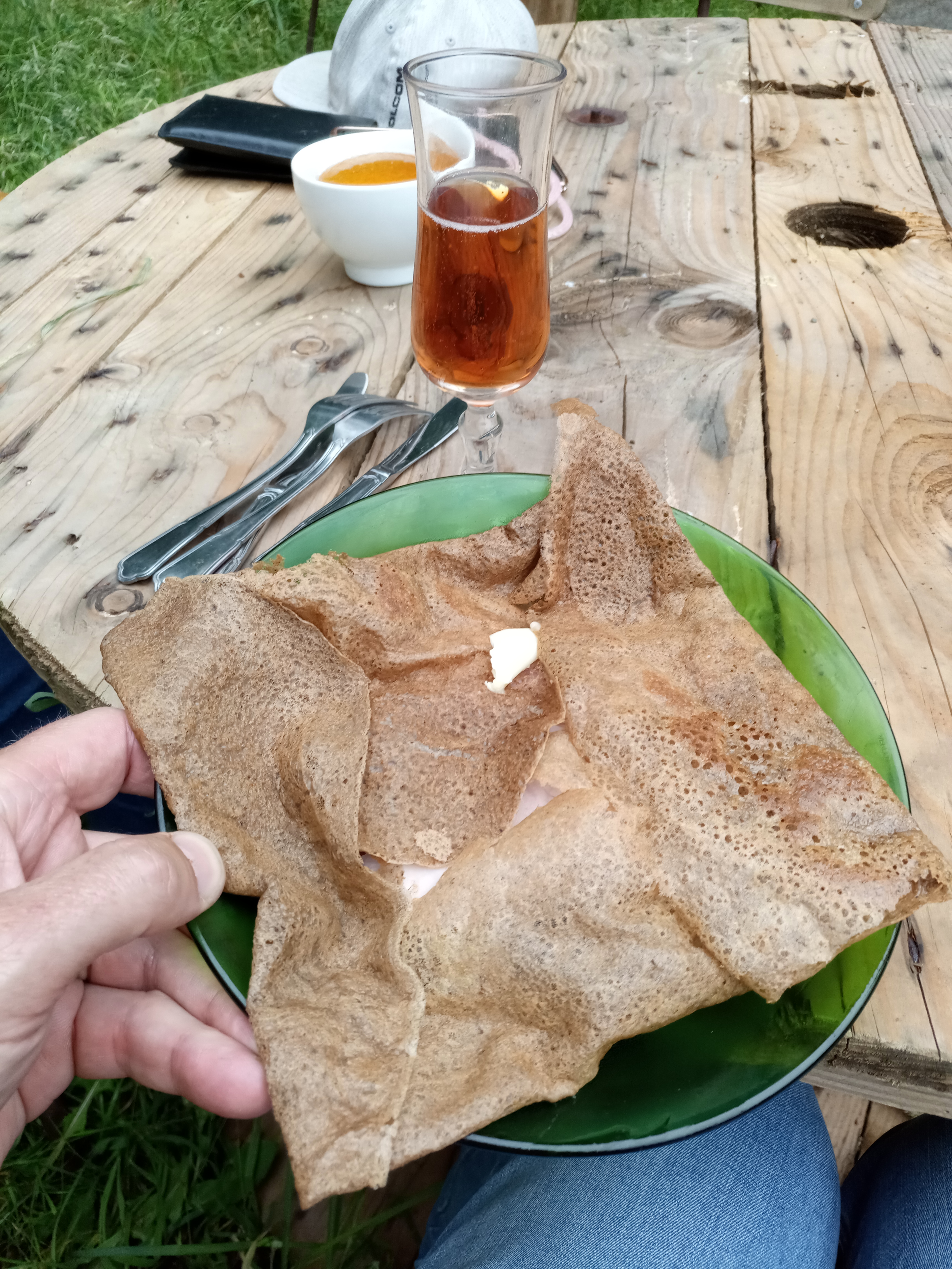 Cinq étoiles sans hésiter pour la gentillesse et le sourire mais pour les crêpes aussi qui sont faite on le sent avec amour, simples et à un prix honnête. Et le cidre super bon. Rien à redire sauf que la table sur l'herbe est un peu penchée :-) si on revient ce sera principalement pour revivre ce moment agréable de la p'tite pause après la balade. Je recommande ++