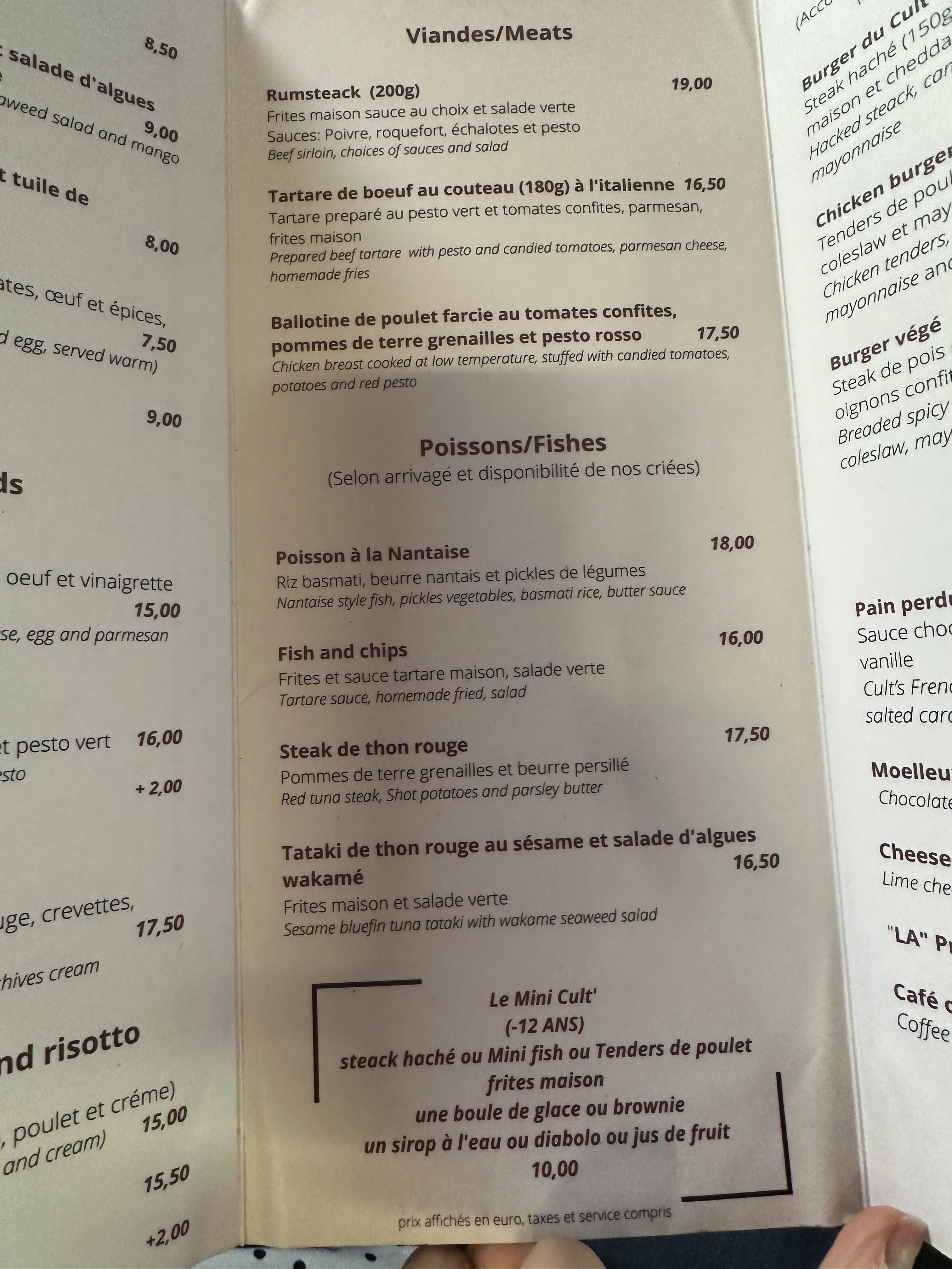 Délicieux! Serveuse hyper sympathique, patron souriant, nous avons mangé un midi entre amis, on connaît le Cult depuis plus de 10 ans, ça faisait longtemps et ils ont gardé l’âme de cet endroit! Entrées et plats très très bons! A bientôt !