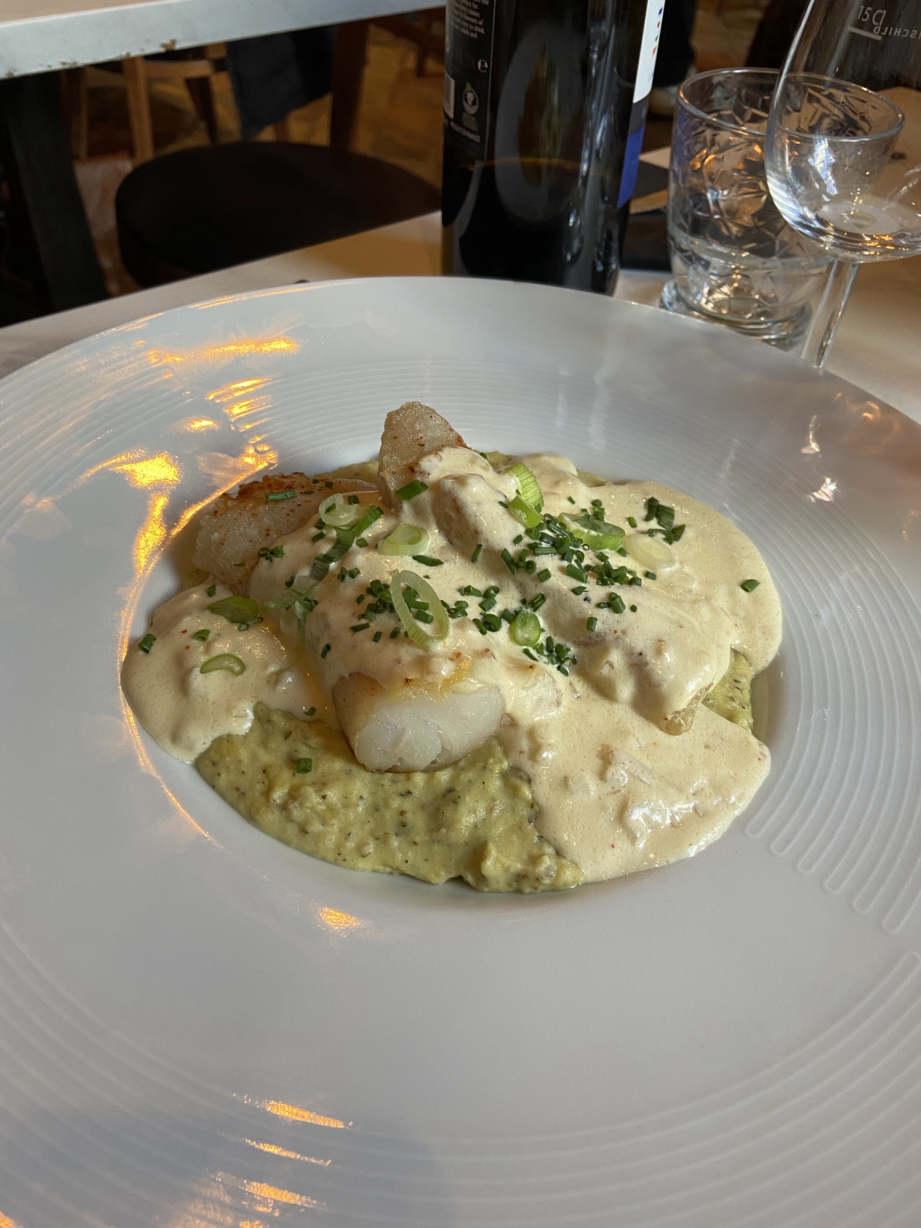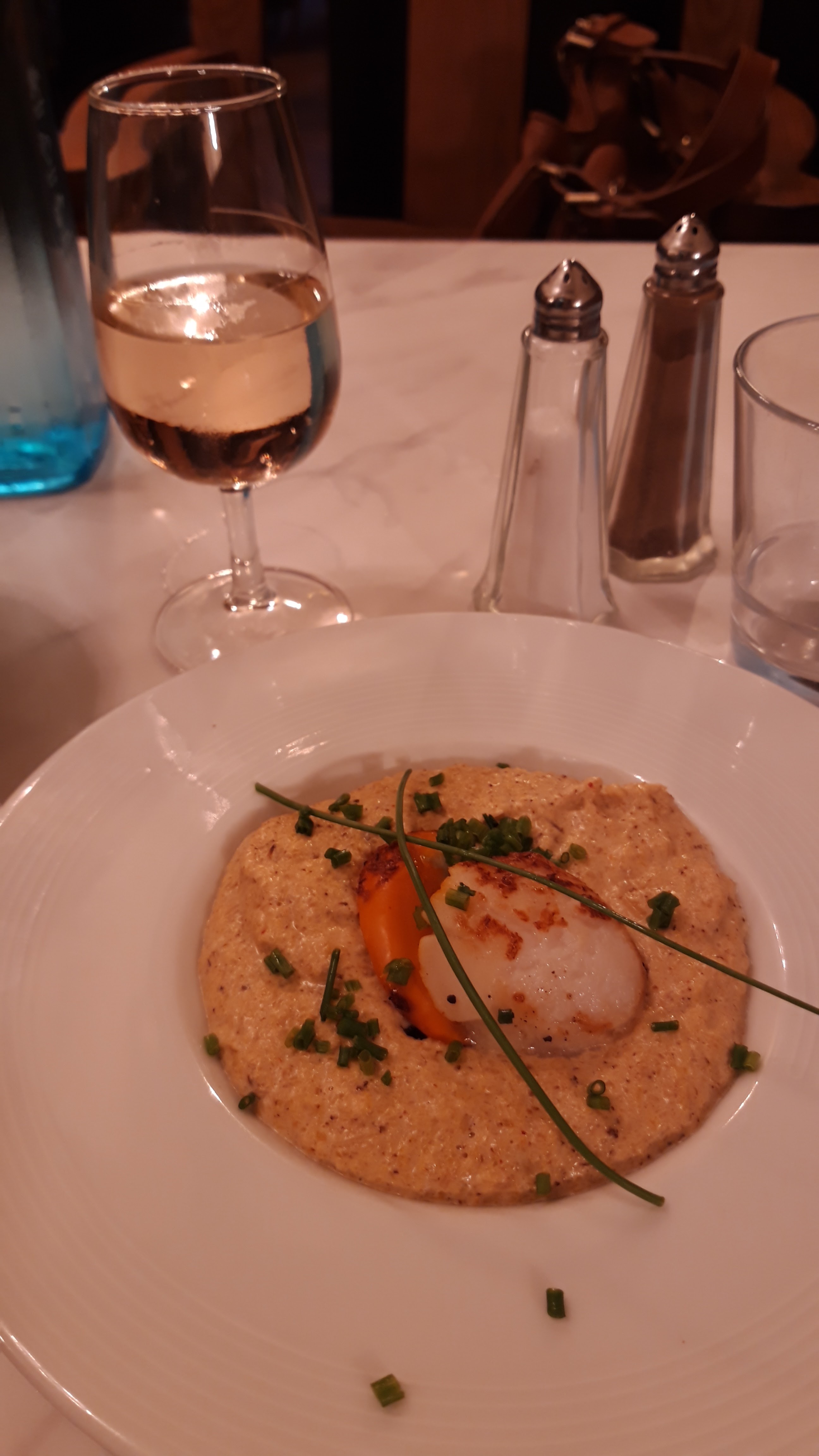 Quelle belle découverte culinaire ! Saint-Jacques au choux-fleur délicieux. La sauce au beurre blanc m'a rappelé celle de ma maman. Dessert au chocolat exquis. Impatiente de retourner dans ce restaurant.