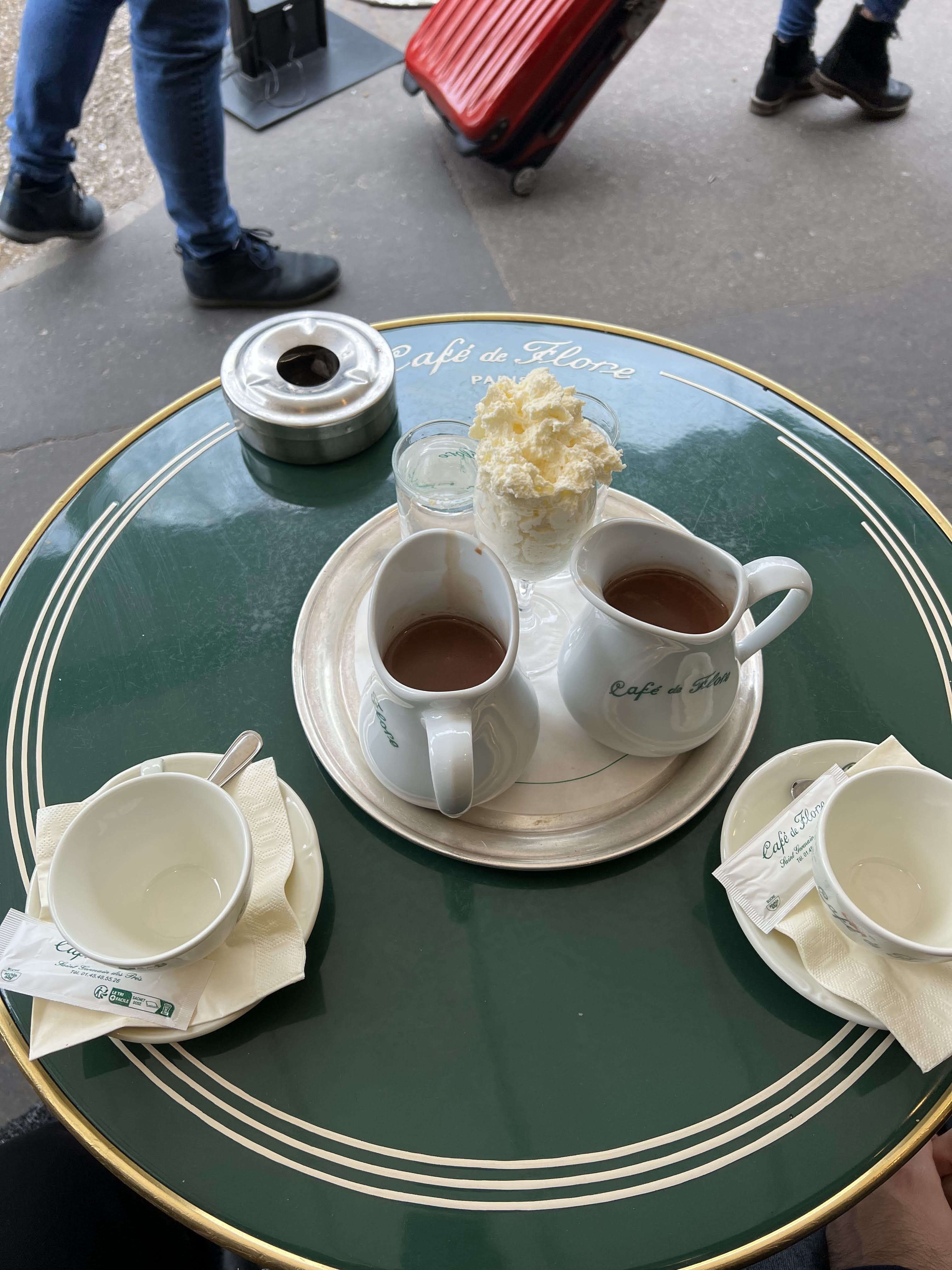 Je suis déçue du Café de Flore... J'ai commandé un chocolat chaud et j'ai été choquée de voire qu'il y'avait un chewing gum collé sur l'assiette et le pot du chocolat chaud... En revanche, nous avions reçu un désolé et c'est tout..
