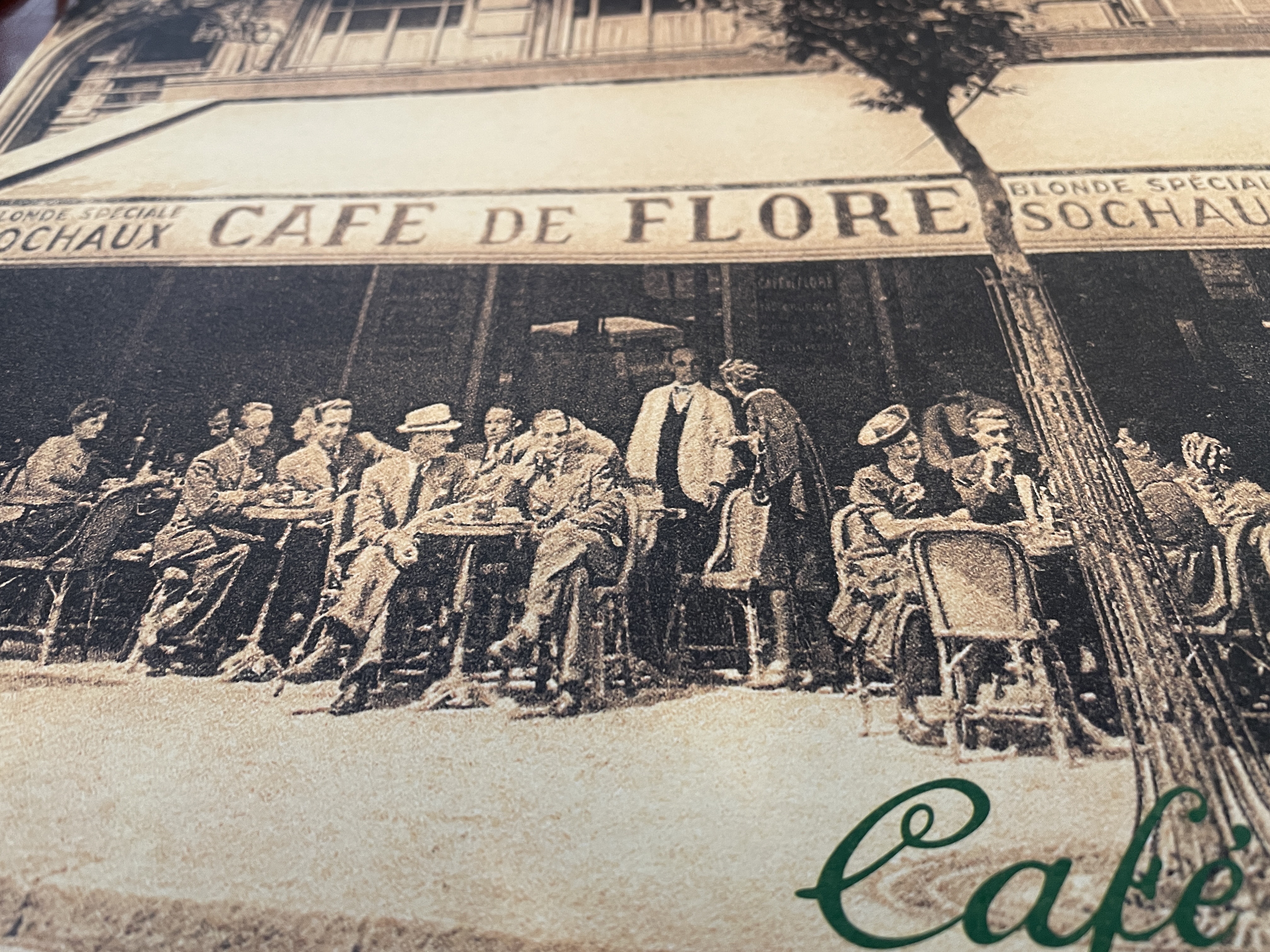 Saint-Germain-Des-Prés, mot magique… Unique quartier de Paris, où se côtoyèrent et s’entremêlèrent les divers courants de la création artistique et littéraire dans un univers de liberté. Le Café de Flore fait son apparition au début de la IIIème République, sans doute en 1887. Il doit son nom à une sculpture de la petite divinité qui se dressait de l’autre côté du boulevard. A la fin du XIXème siècle, Charles Maurras, installé au premier étage, y rédigea son livre « Sous le signe de Flore ». Vers 1913, Apollinaire investit les lieux. Avec Salmon ils transforment le rez-de-chaussée en salle de rédaction : la revue « Les soirées de Paris » voit le jour. La guerre ne changera rien aux habitudes du grand poète, le Flore est son bureau, il y reçoit à heures fixes. Ainsi un jour de printemps 1917, il présente Philippe Soupault à André Breton. Plus tard, en provoquant la rencontre entre ces deux jeunes poètes avec Aragon, Apollinaire jette ainsi les fondements du groupe dadaïste. La même année, il invente le mot « surréalisme ». Quand Tristan Tzara arrive à Paris, ses amis dadaïstes lui font visiter le Flore car c’est là qu’Apollinaire avait vécu et était mort (en 1918). En 1922, la rédaction de la revue érudite « Le Divan » se rassemble régulièrement sur les banquettes du Flore. Malraux, lui, vient y prendre son Pernod glacé.