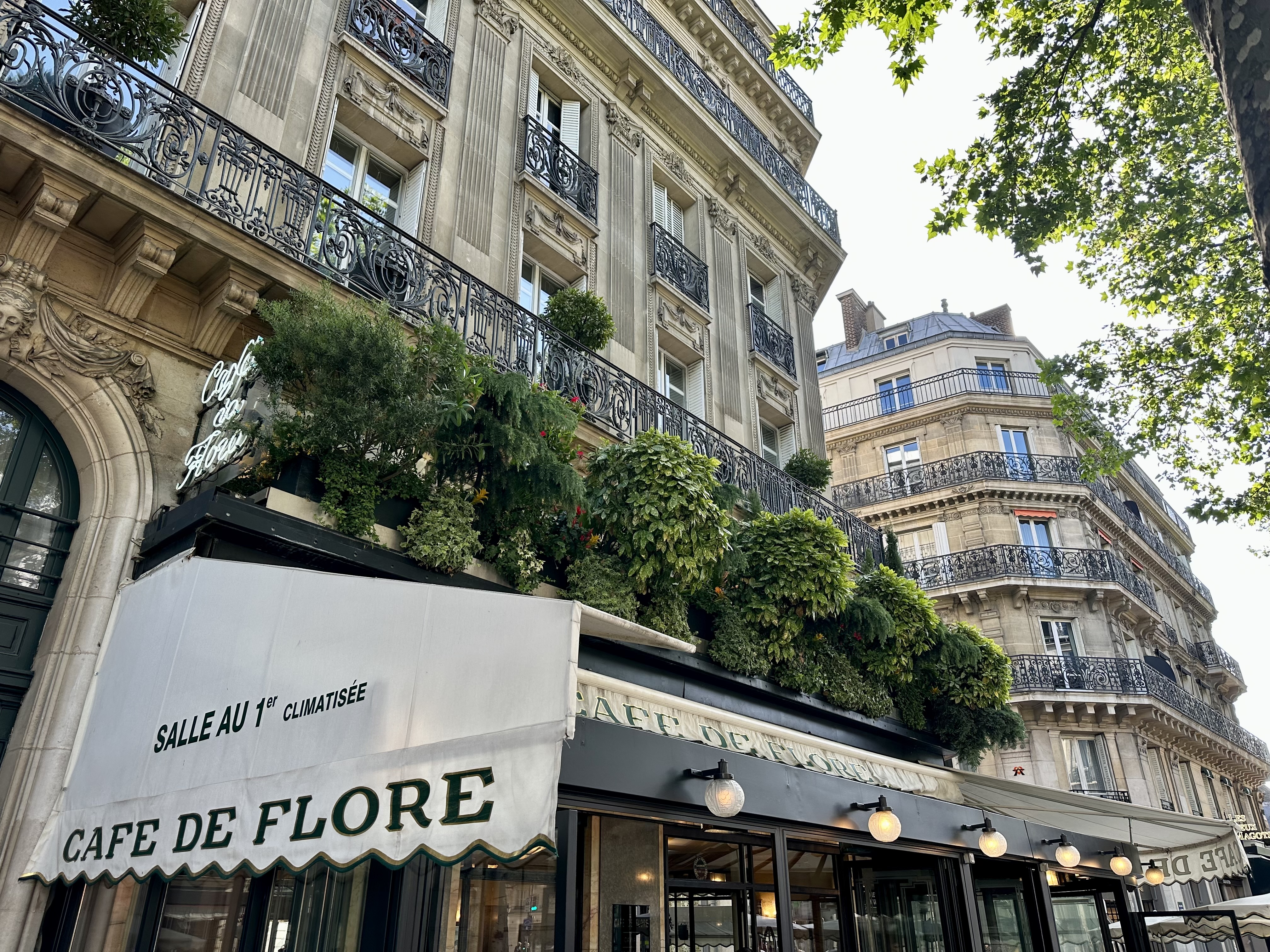 Très belle et agréable découverte du célèbre et prestigieux Café de Flore ! La superbe façade fleurie est un merveilleux accueil lorsque l’on arrive devant. J’ai été accueilli par un charmant maître d’hôtel qui m’a installé dans un coin de la terrasse que j’ai beaucoup apprécié. J’ai eu ensuite le privilège d’être servi par Joseph, un serveur élégant, courtois et agréable. Il est très beau avec son style parisien et sa petite moustache bien taillée. Son service est impeccable et il est attentionné. Il y ajoute également une note d’esprit, ce qui n’est pas pour me déplaire. J’ai pris un petit-déjeuner complet avec des œufs au plat accompagnés de bacon, un croissant, un jus d’orange et un café crème. Joseph a veillé à ce que je ne manque de rien. On se sent valorisé lorsque l’on est servi par lui. Pour le côté table, je me suis régalé ! Bravo à l’équipe en cuisine. Bon rapport qualité / prix. Je retournerai vraiment avec plaisir au Café de Flore !