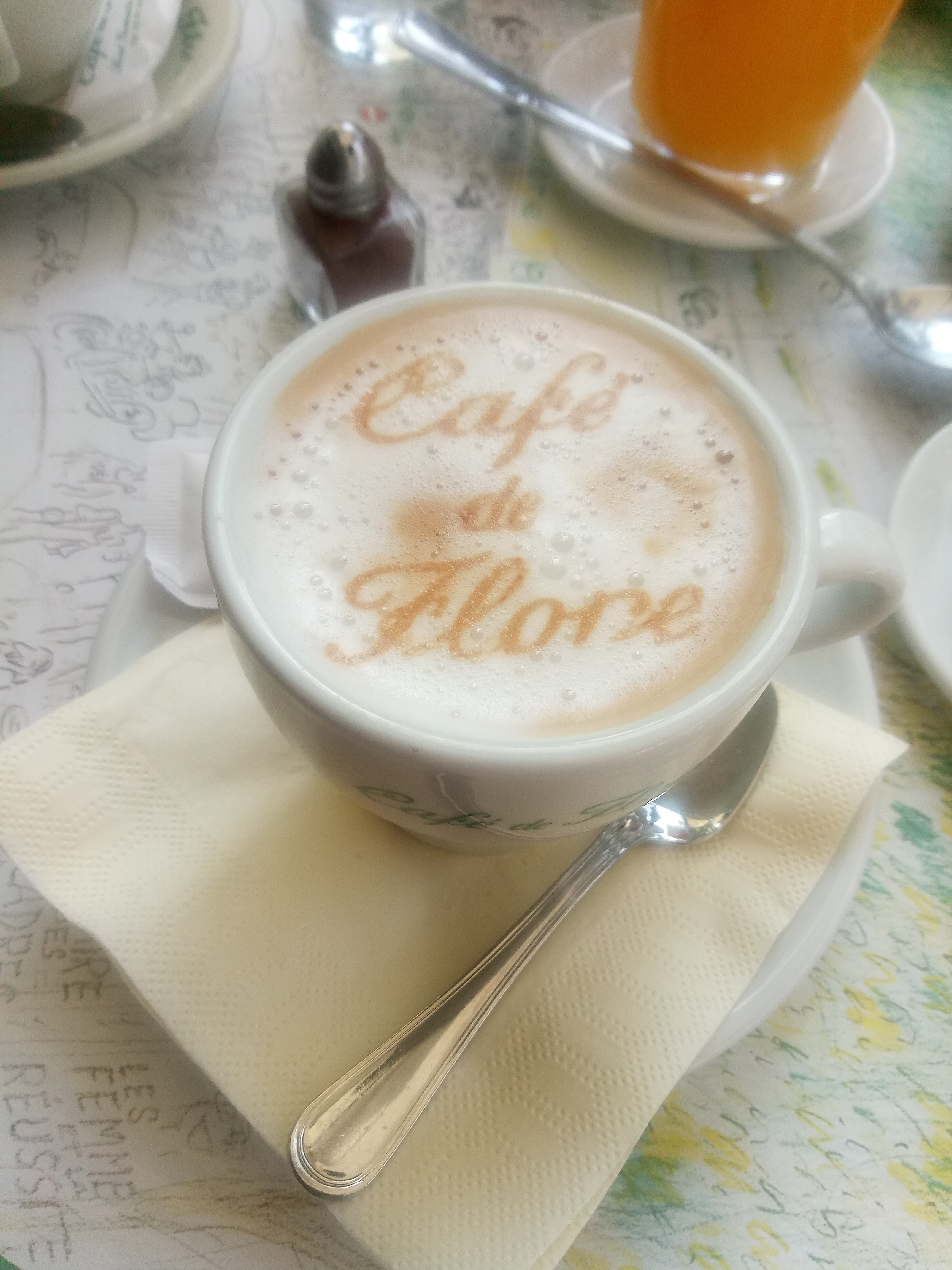 Cette institution parisienne est un haut lieu historique littéraire, philosophique, culturel, artistique. Beaucoup de monde, nous étions installés à l'intérieur à une petite table, observant notre entourage, s'inventant des histoires sur certains clients en se demandant si ce sont des habitués, artistes, écrivains. On peut s'imaginer des tas de choses dans cet établissement historiquement artistique. Rien que pour ce moment, cela valait la peine de venir. Nous avons pris un petit déjeuner classique et nous avons bien profité de l'instant présent, le service était très bien, compréhensif et serviable.