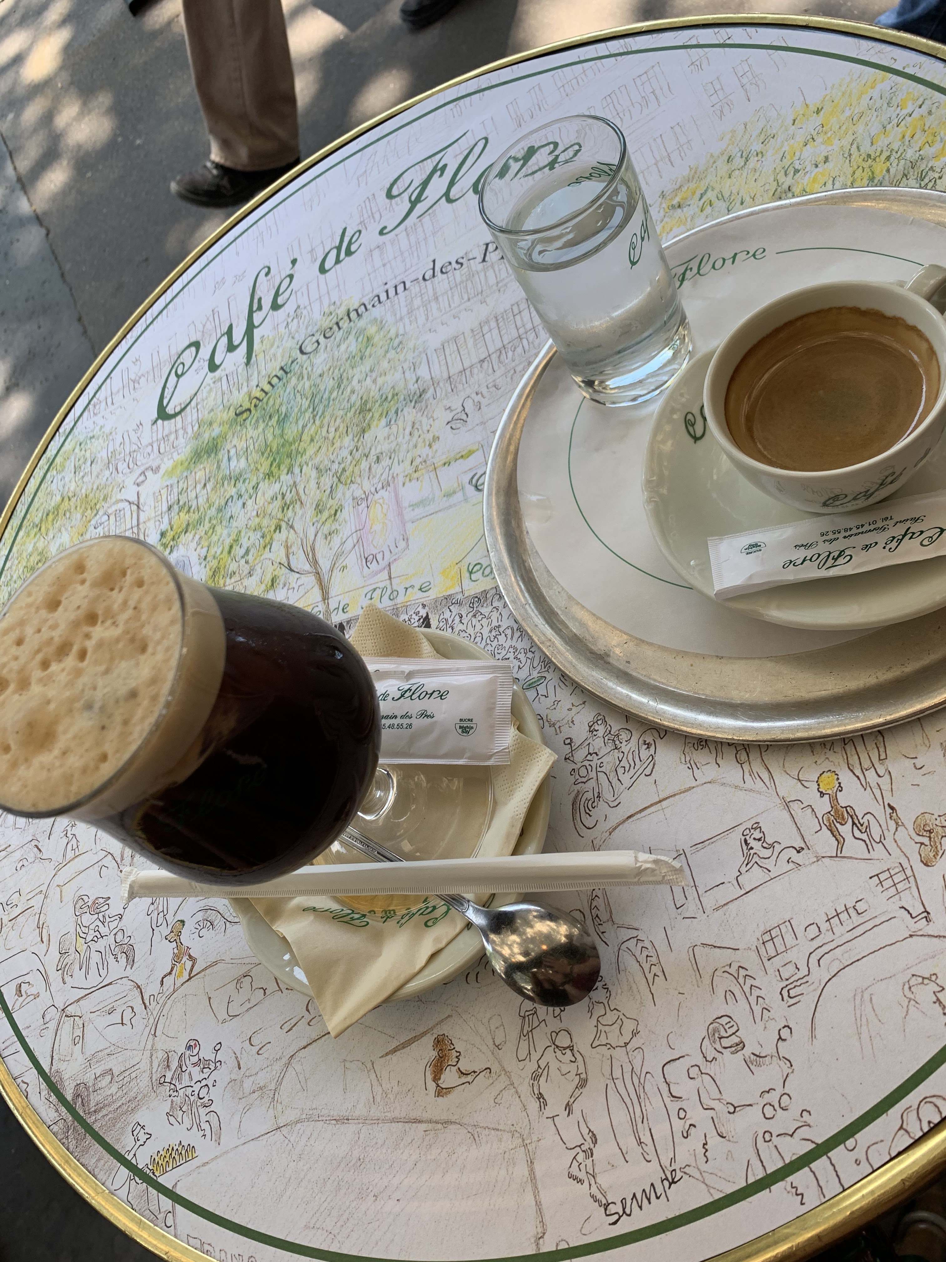 Un café flore, c'est bon. Mais tant qu'à servir un verre d'eau, autant mettre le chocolat servi avec le café au pied du verre d'eau . Ça éviterait qu'ils fondent contre la tasse. Un chocolat flore, c'est bon. Mais tant qu'à servir un verre d'eau, autant mettre le chocolat servi avec le café au pied du verre d'eau . Ça éviterait qu'ils fondent contre la tasse. Les chaises en terrasse sont super serrées, inaccessible aux grandes carrures. Le prix élevé n'empêche pas ce café d'avoir un excellent taux de remplissage.