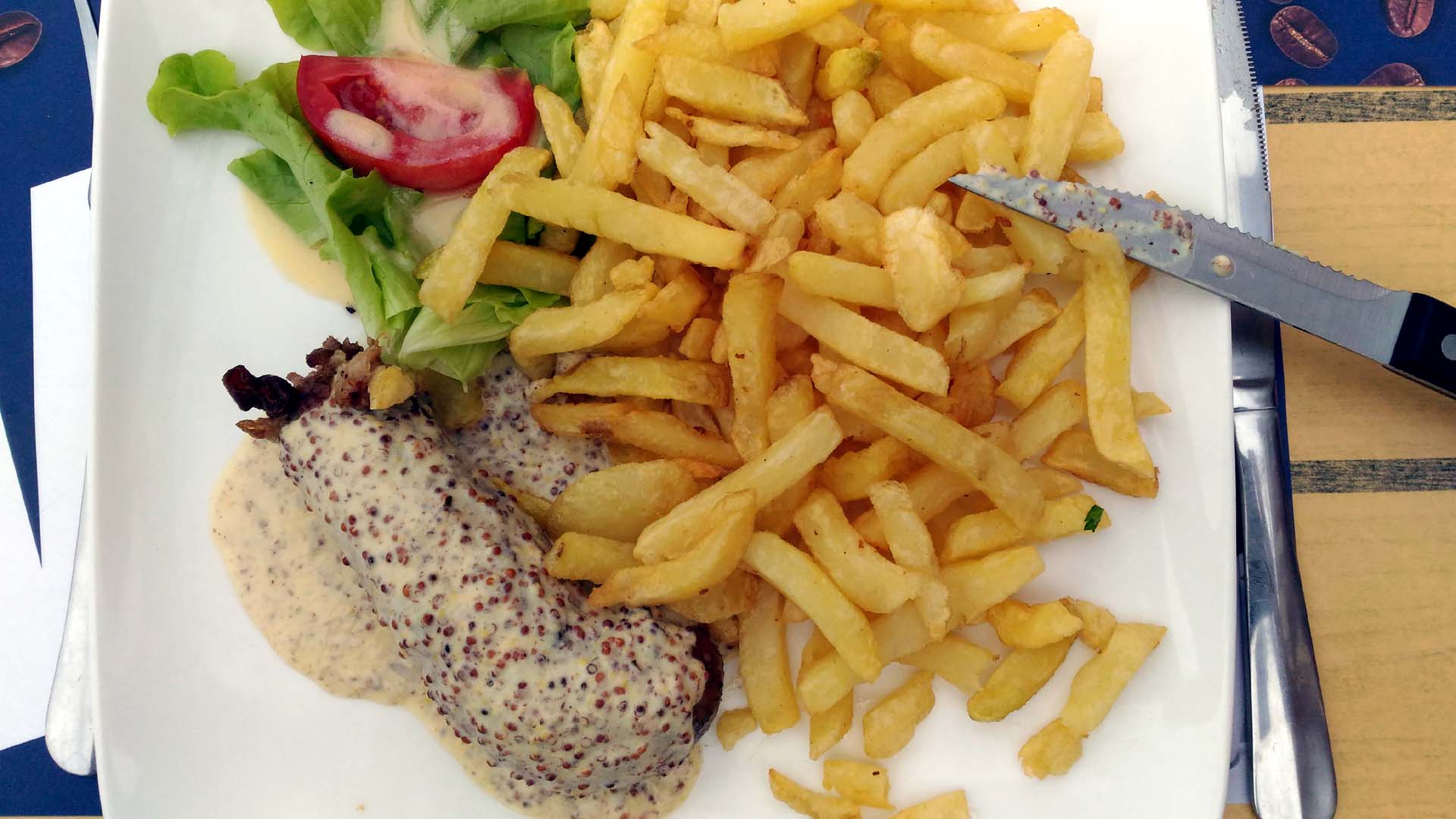 Juste très bien à faire absolument, les moules sont délicieuses, un tout petit bémol un peu trop de crème sur la tarte normande. Mais vraiment juste pour dire.