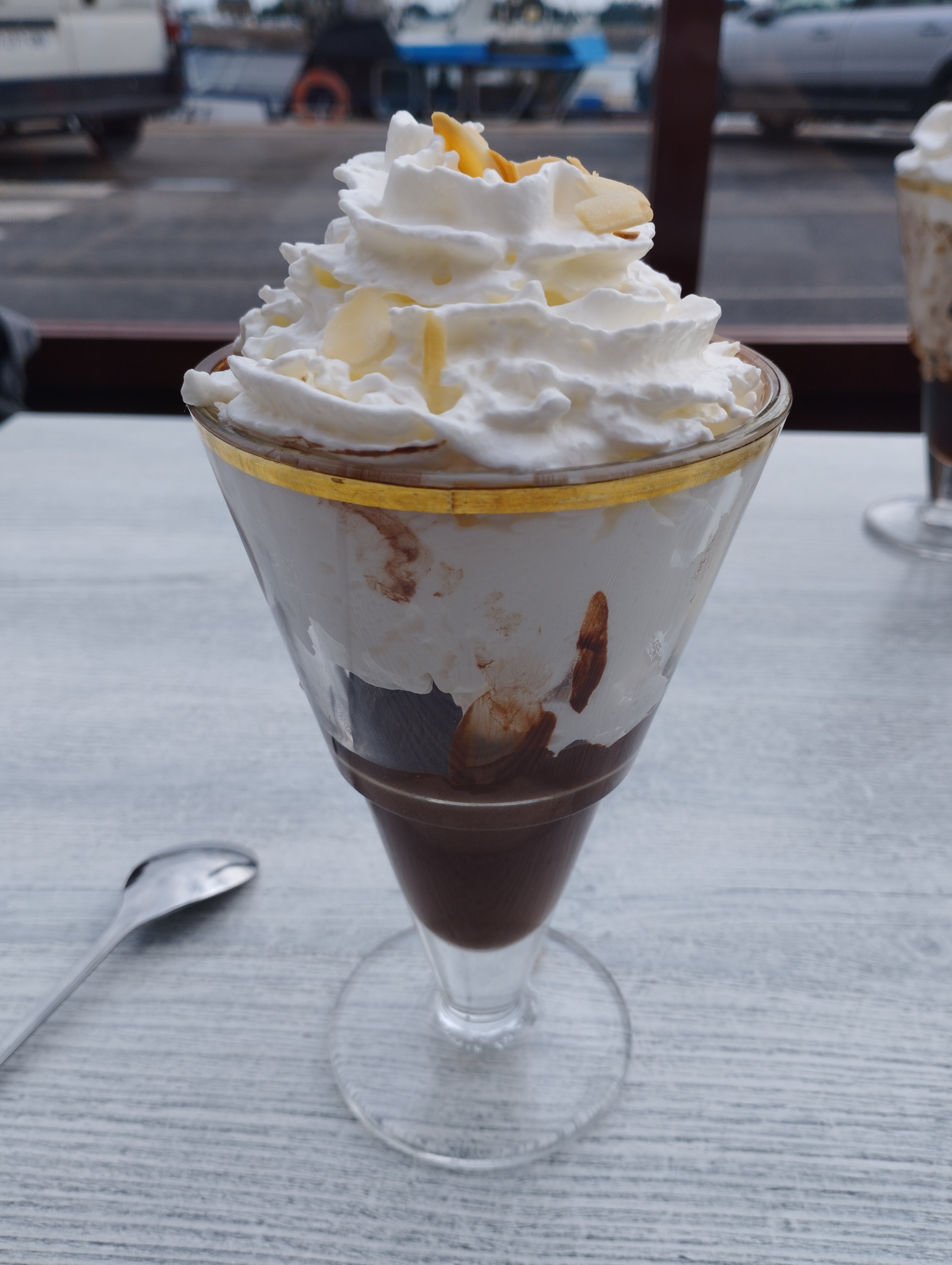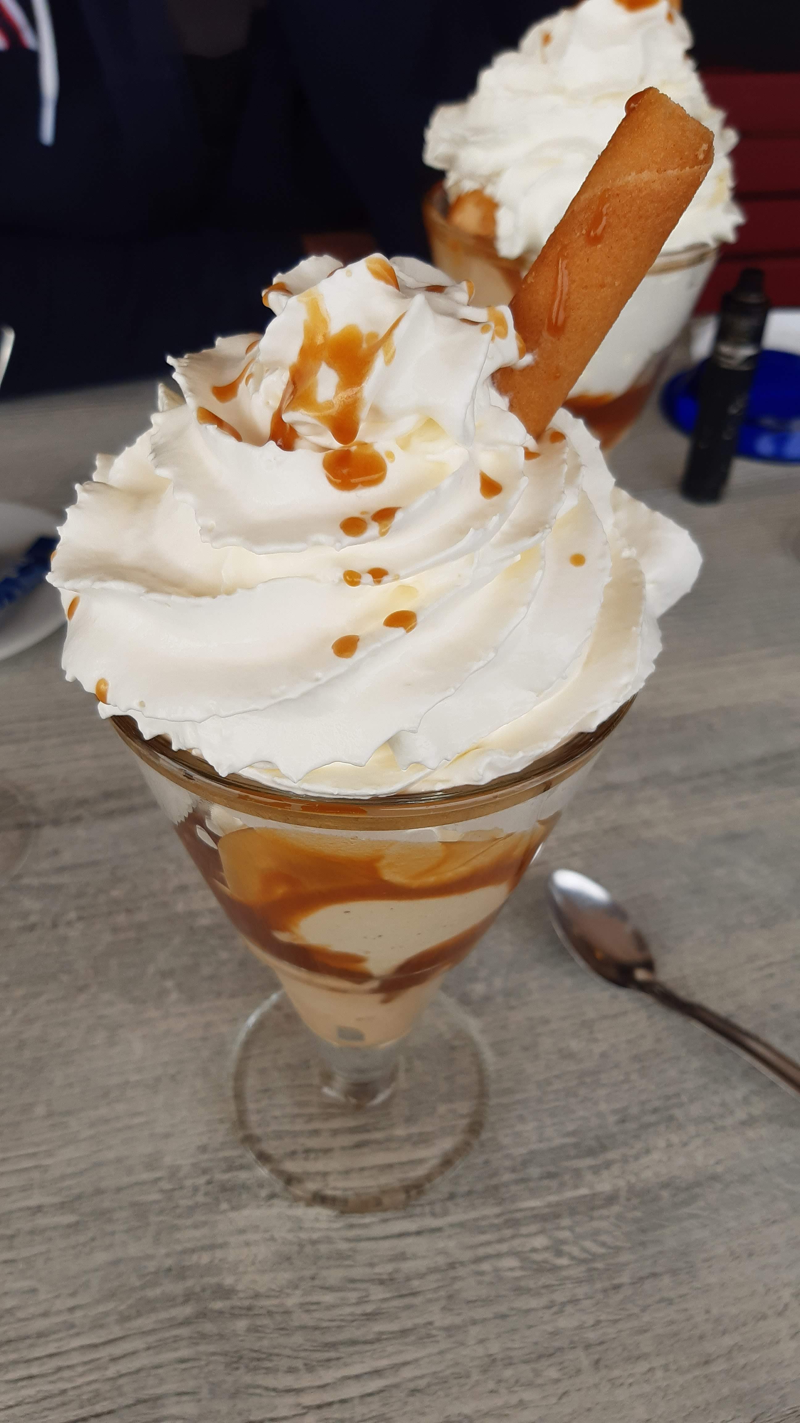 Après une bonne balade dans la ville, il est temps de faire une pause. Avec une magnifique vue sur le port de Barfleur, on prend le temps de siroter quelque-chose et surtout de prendre l'un des nombreux desserts. Le personnel est très accueillant et les glaces très copieuses.