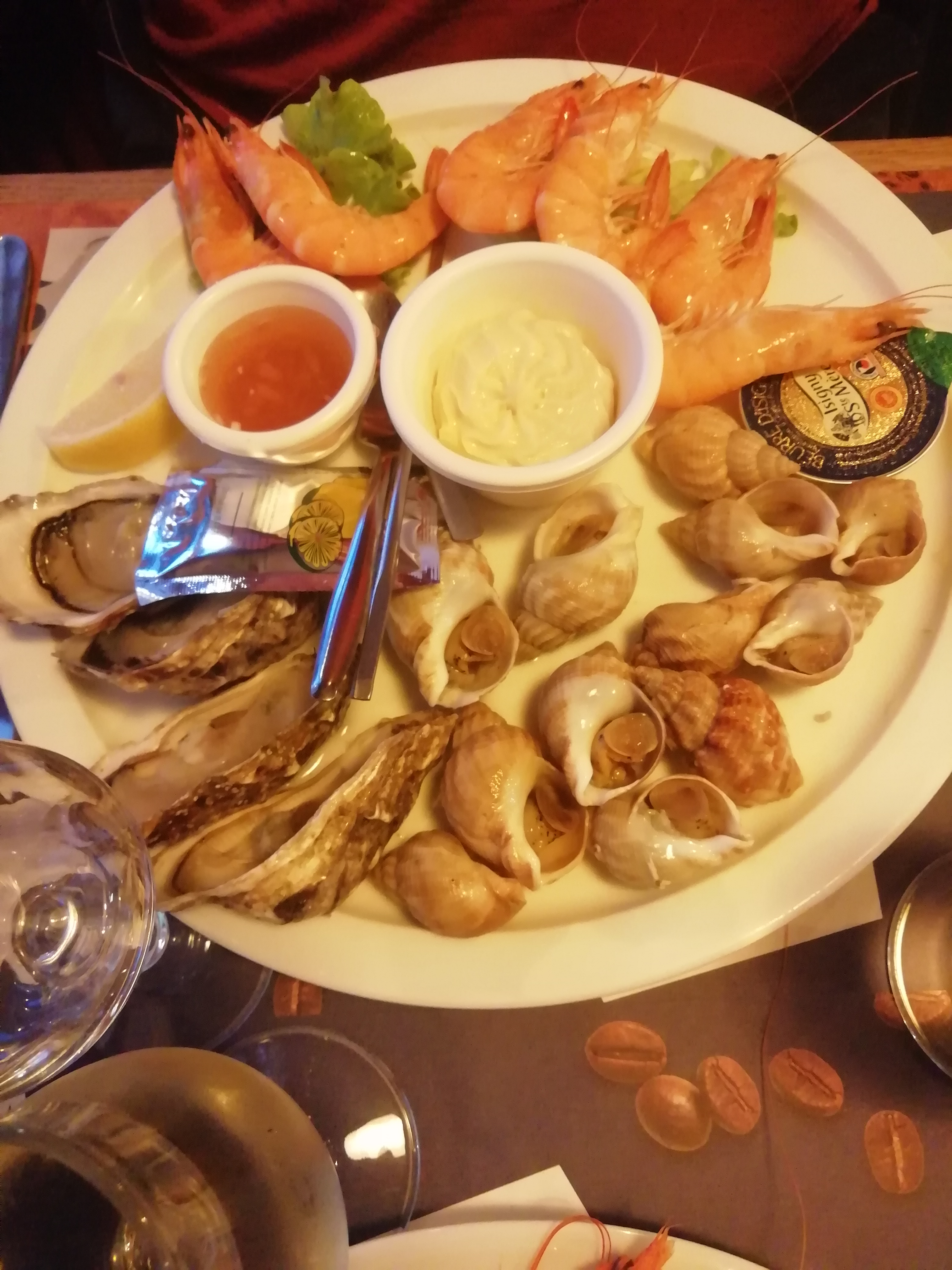 Réservé la veille on est arrivé et on nous a mis au fond de la salle face au mur pour un restau en bord de port pas terrible nous avons été déçu sinon bonnes moules frites qualité acceptable quantité pas top.
