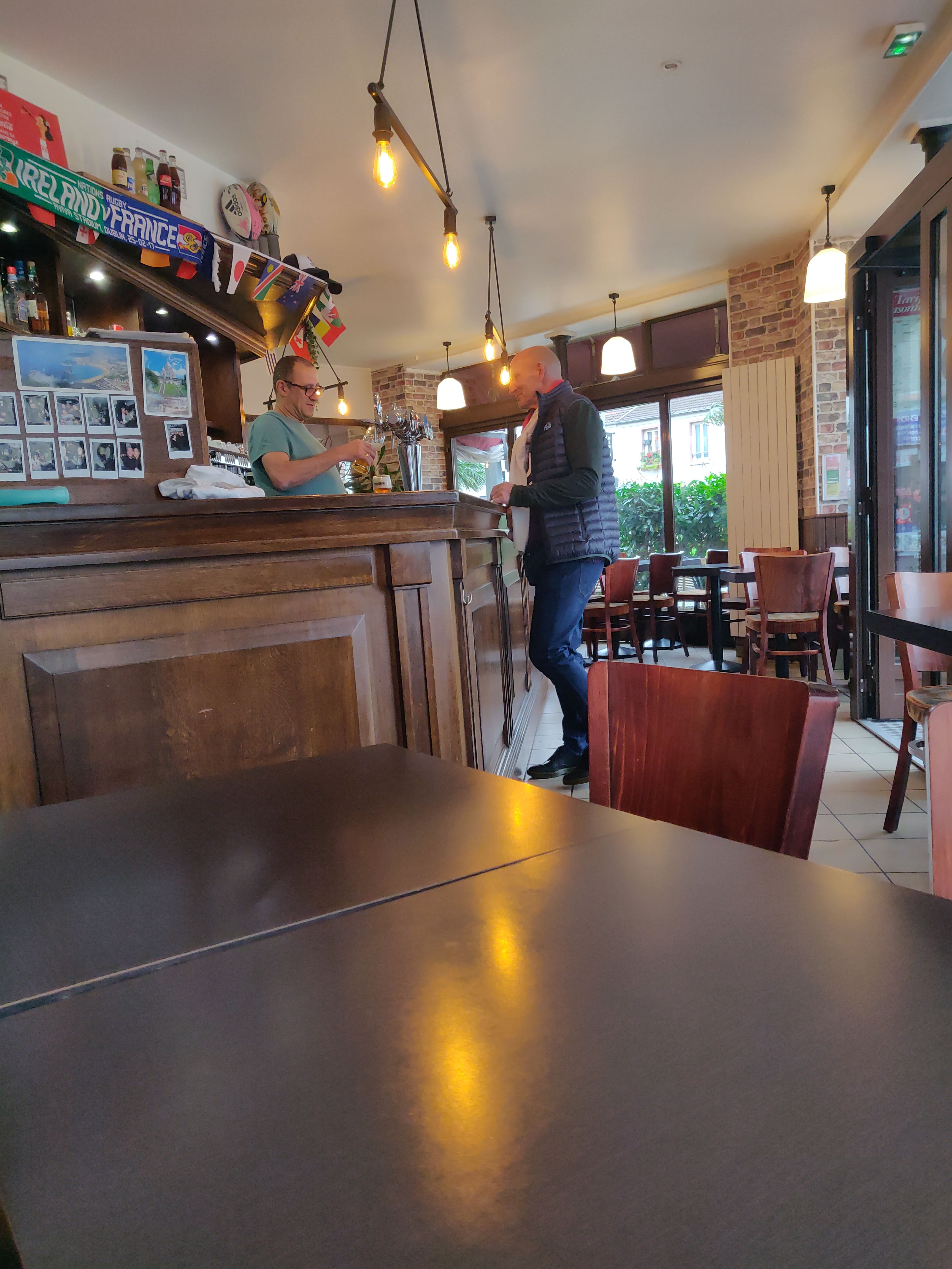 Nous sommes venus ici deux fois samedi avant le match de rugby Angleterre-Afrique du Sud samedi, puis après. Il y a une ambiance vraiment sympa et un flux constant de clients. Le service était bon et la bière pression (Pelforth) était une très bonne bière. Le personnel était super sympa aussi, je reviendrais certainement ici si j'étais à Paris au Stade de France. C'est aussi proche du stade. Nous n'avions pas de nourriture ici, nous ne pouvons donc pas faire de commentaire à ce sujet.