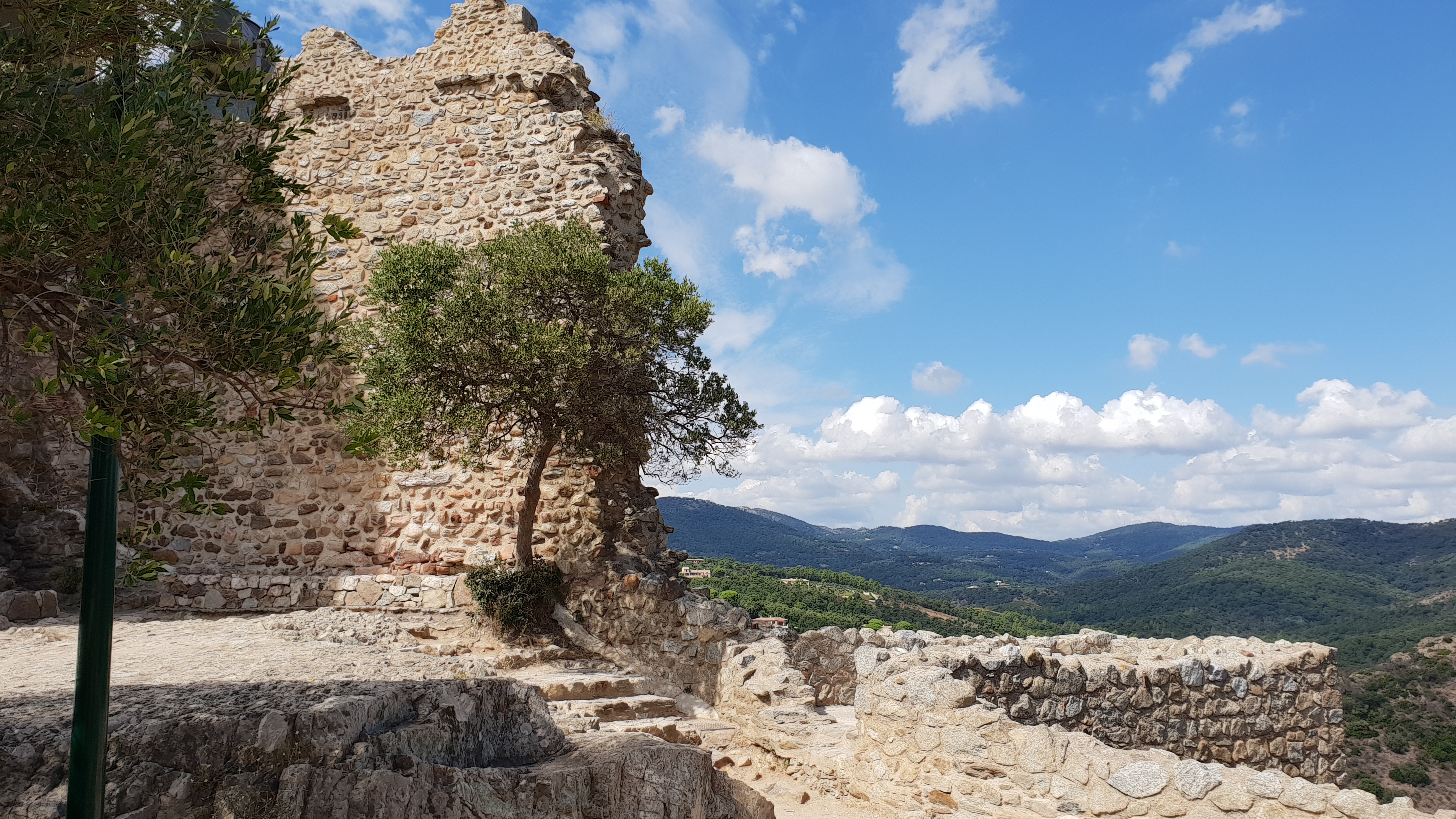 Terrasse idéalement exposée. Un plat d'Agneau vraiment savoureux. Un bon rosé pour accompagner ce déjeuner au soleil. L'accueil est au top. Ici, on aime les clients et leur chiens aussi. Ce resto est digne de ce magnifique village médiéval qu'est Grimaud. Merci de nous avons si bien reçu, même un peu tardivement :)