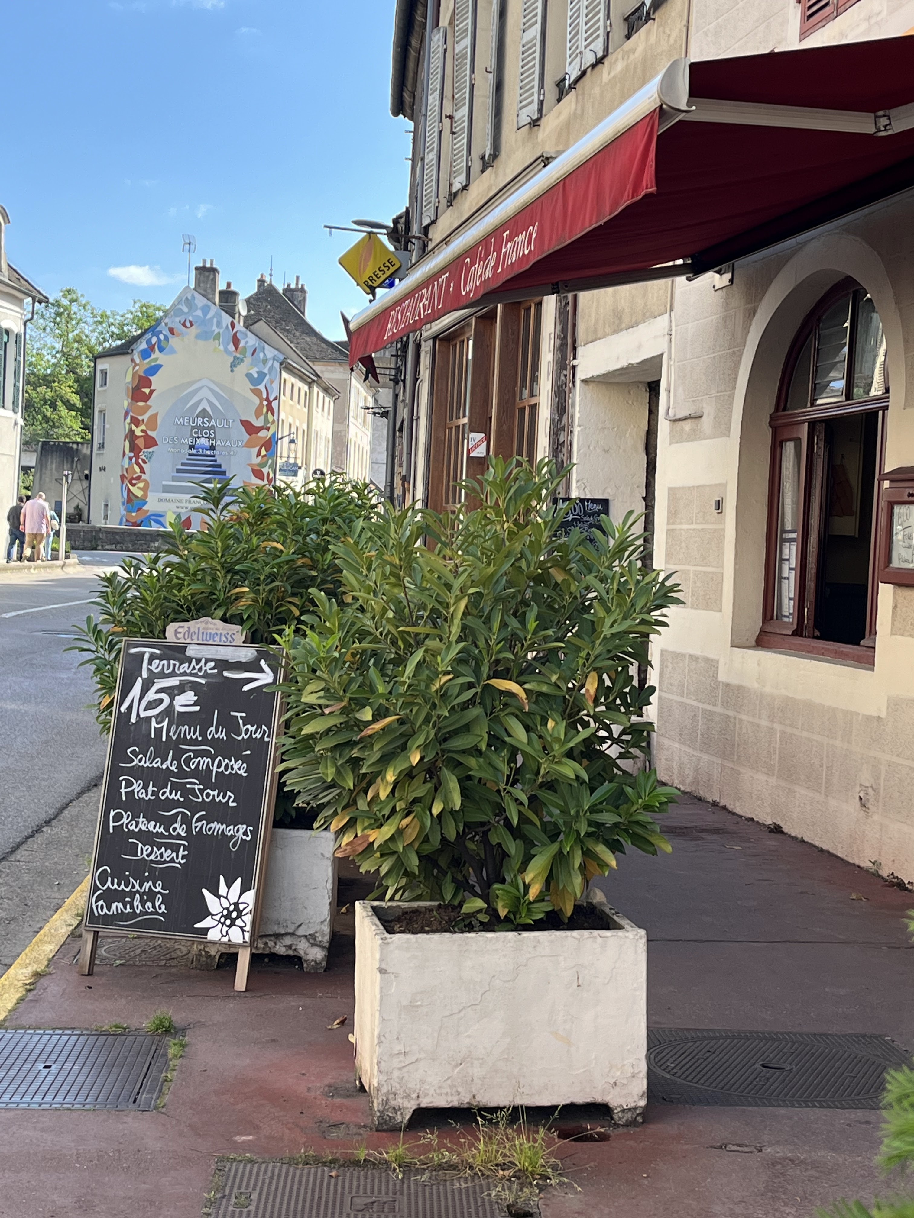 De passage en moto, sortant de La Moutarderie Fallot pile à l'heure de déjeuner, nos pas nous ont amené devant le Café de France. Quelle belle idée nous avons eu! Accueil sympa, gastronomie simple mais copieuse, pour nous une belle découverte et il est sur qu'à notre prochain passage nous nous arrêterons chez la Famille Le Payen.