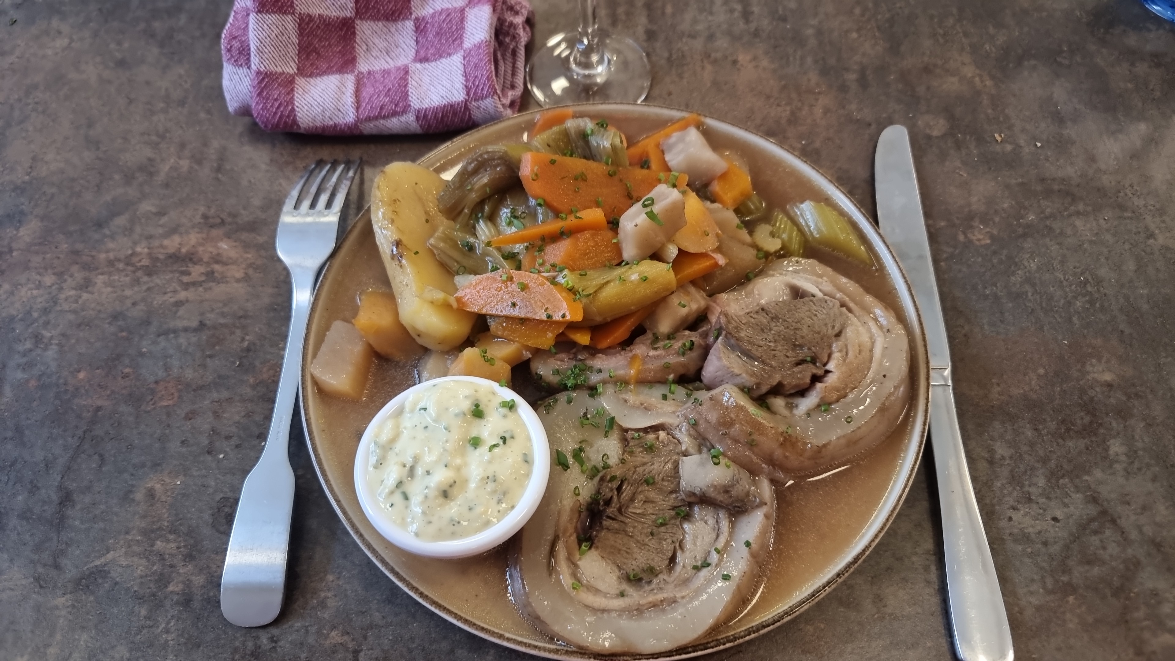 déjeuner en escale à Beaugency plats typiquement français ont a le paleron de bœuf 12,50€ excellent, et vue le prix plus que raisonnable, c'était parfais, décor agréable et le patron est très drôle avec sa femme bonne adresse a retenir si vous êtes de passage