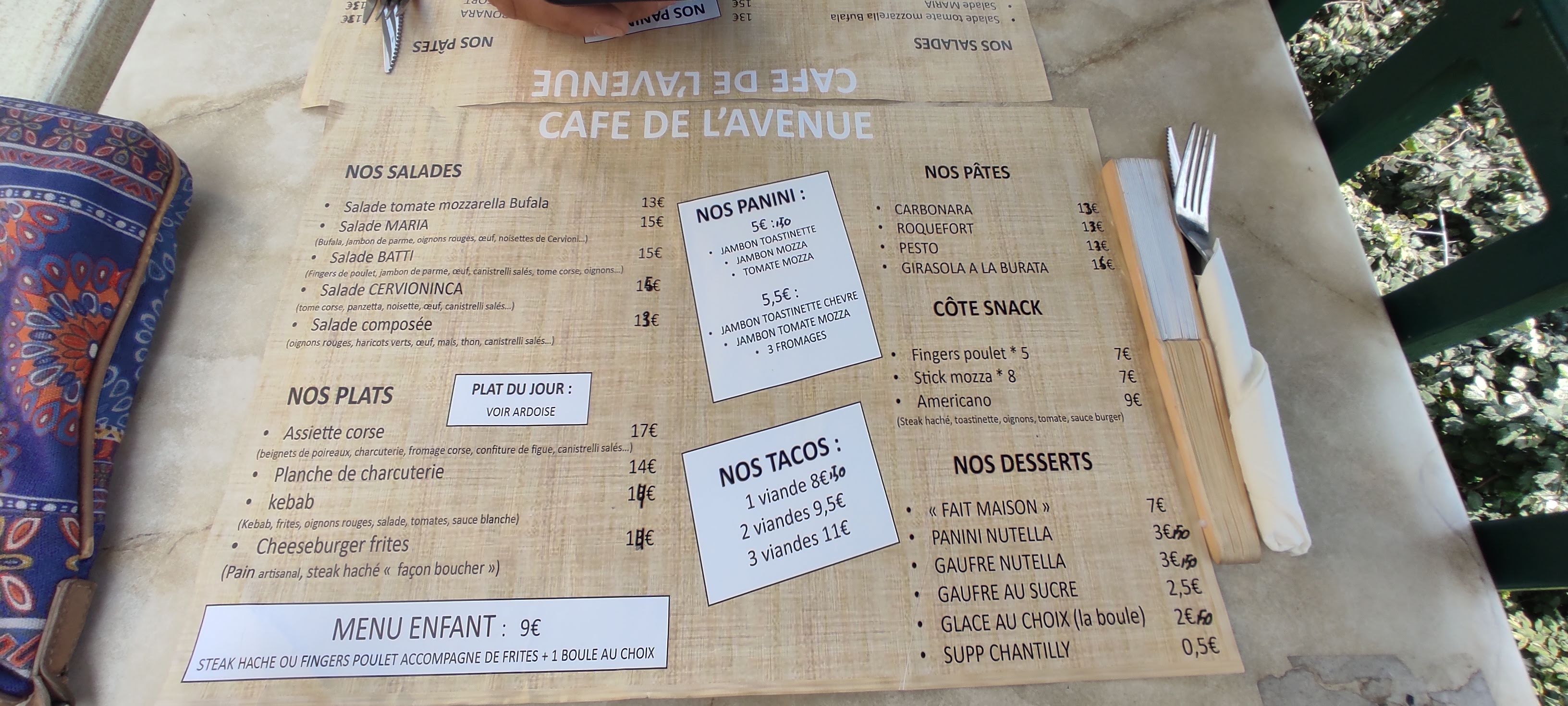 L'assiette Corse est juste à tomber. La vue est splendide. Le personnel sympathique est accueillant. Du coup, je recommande.