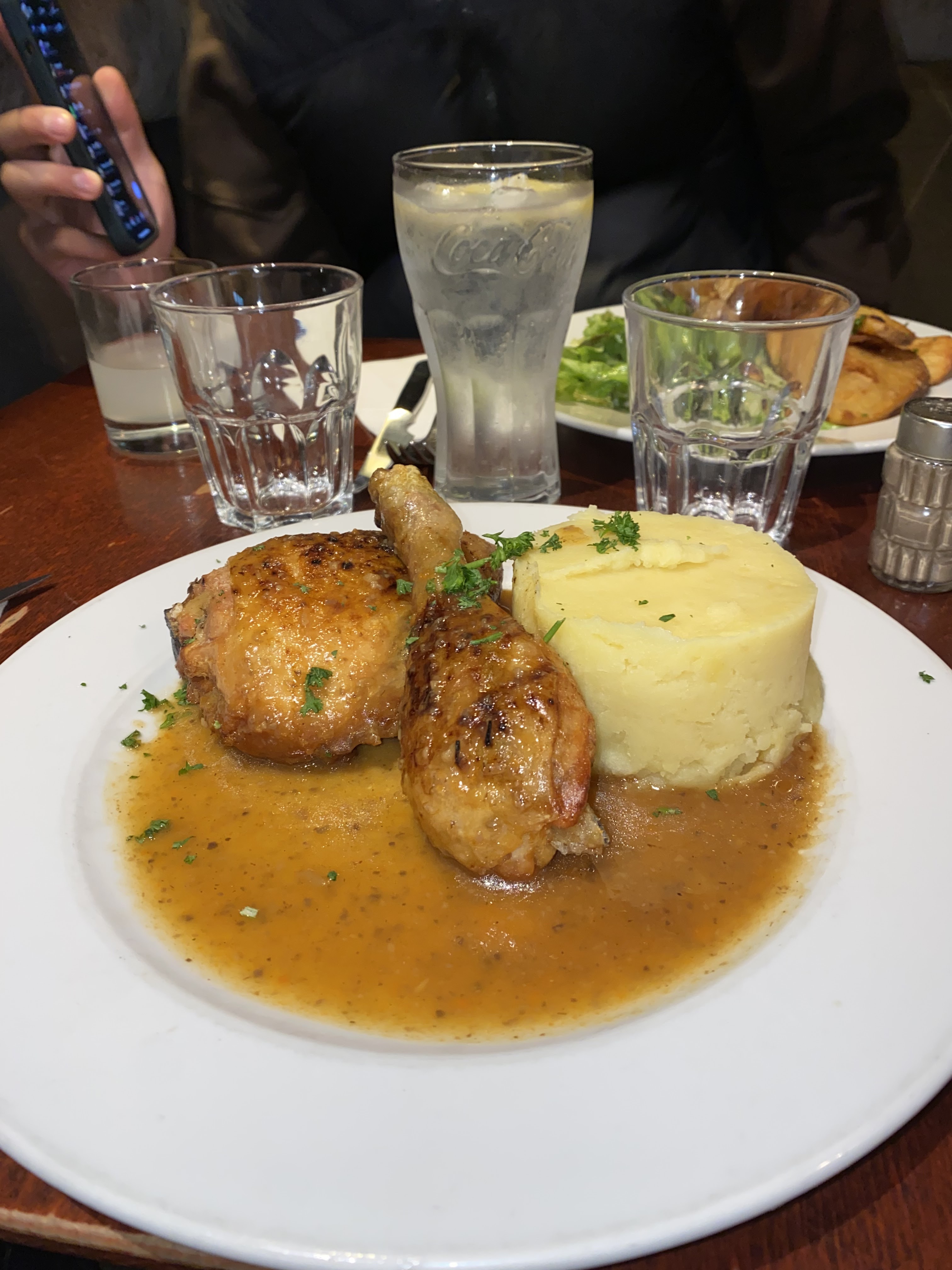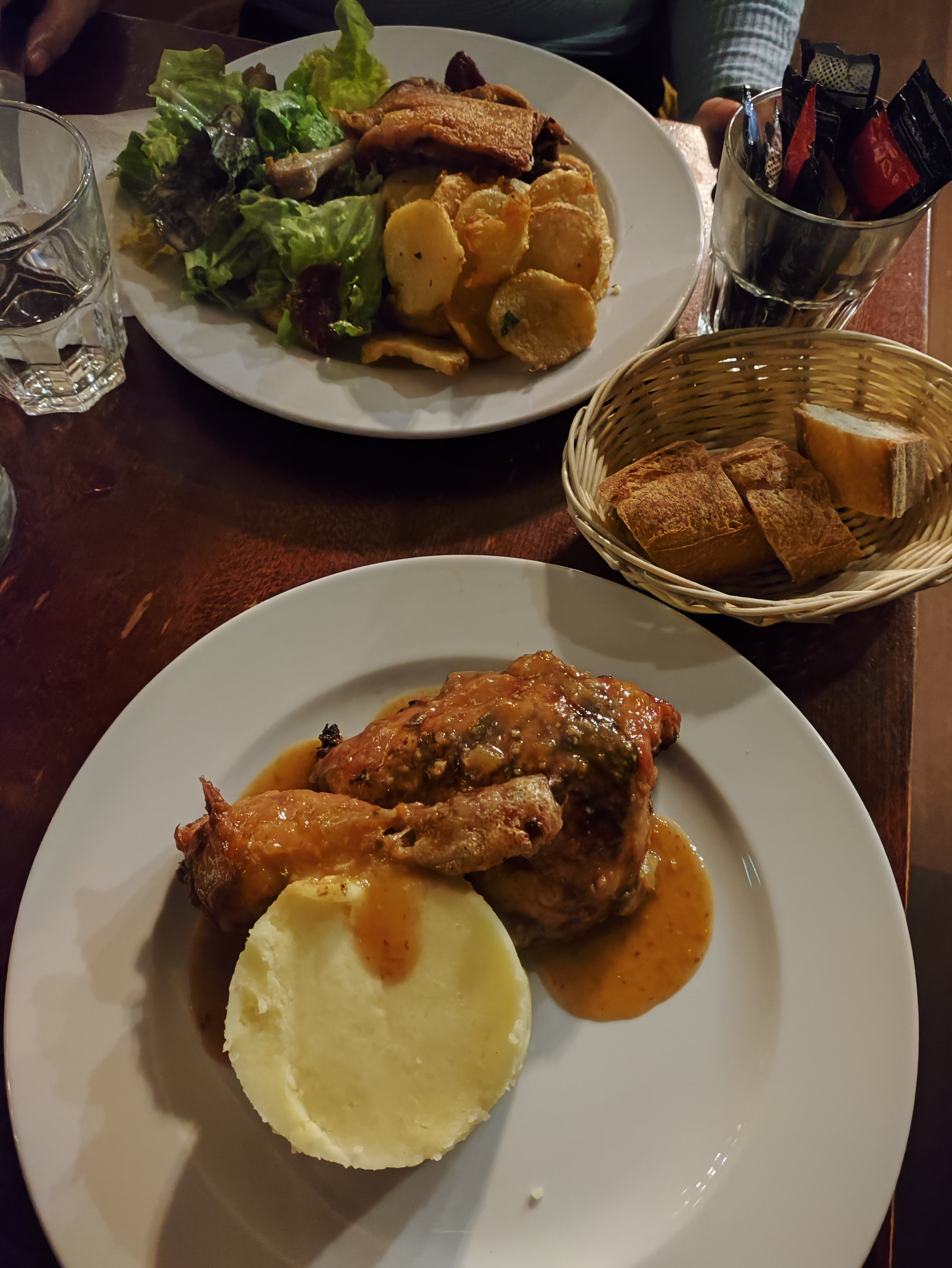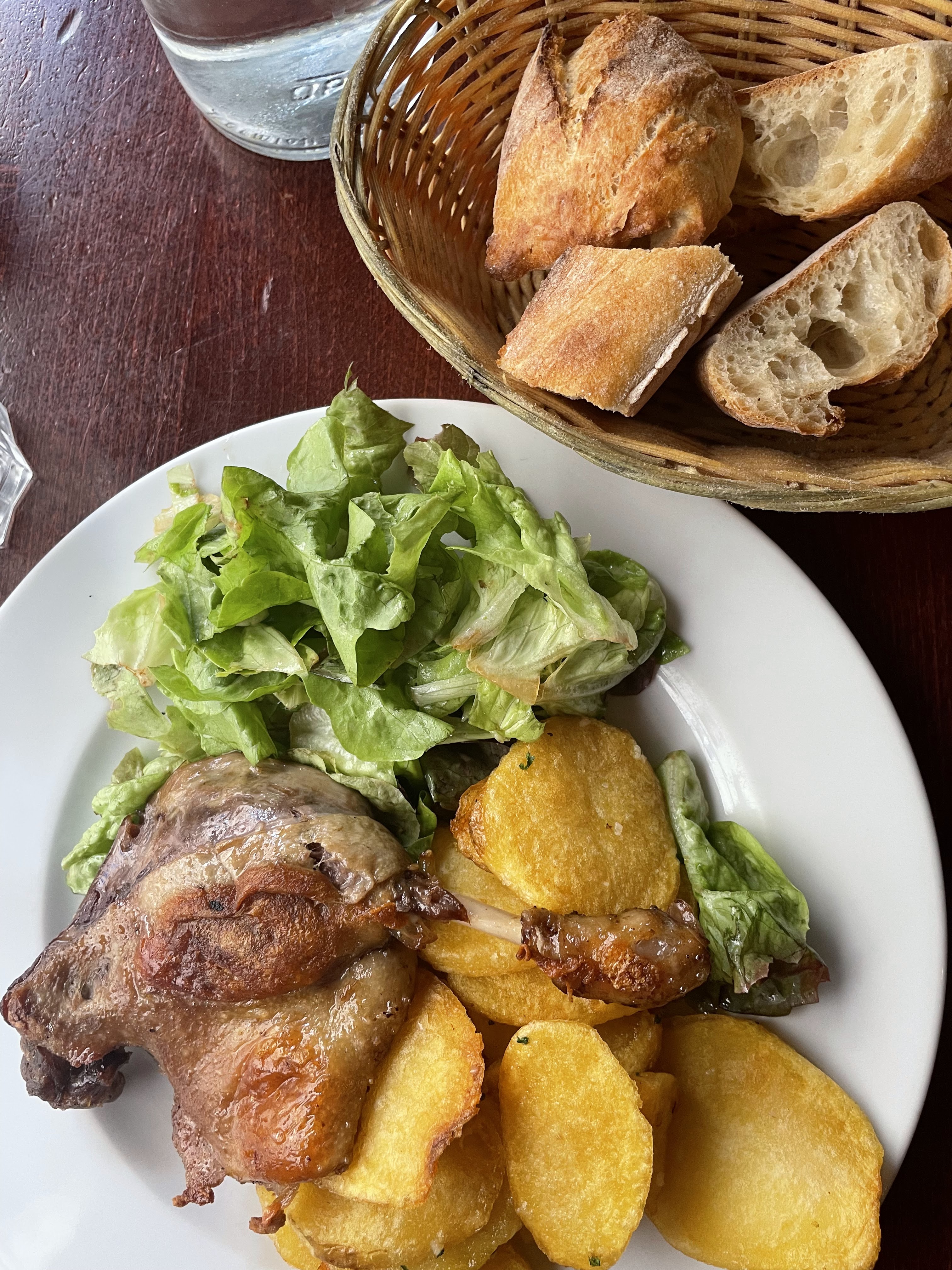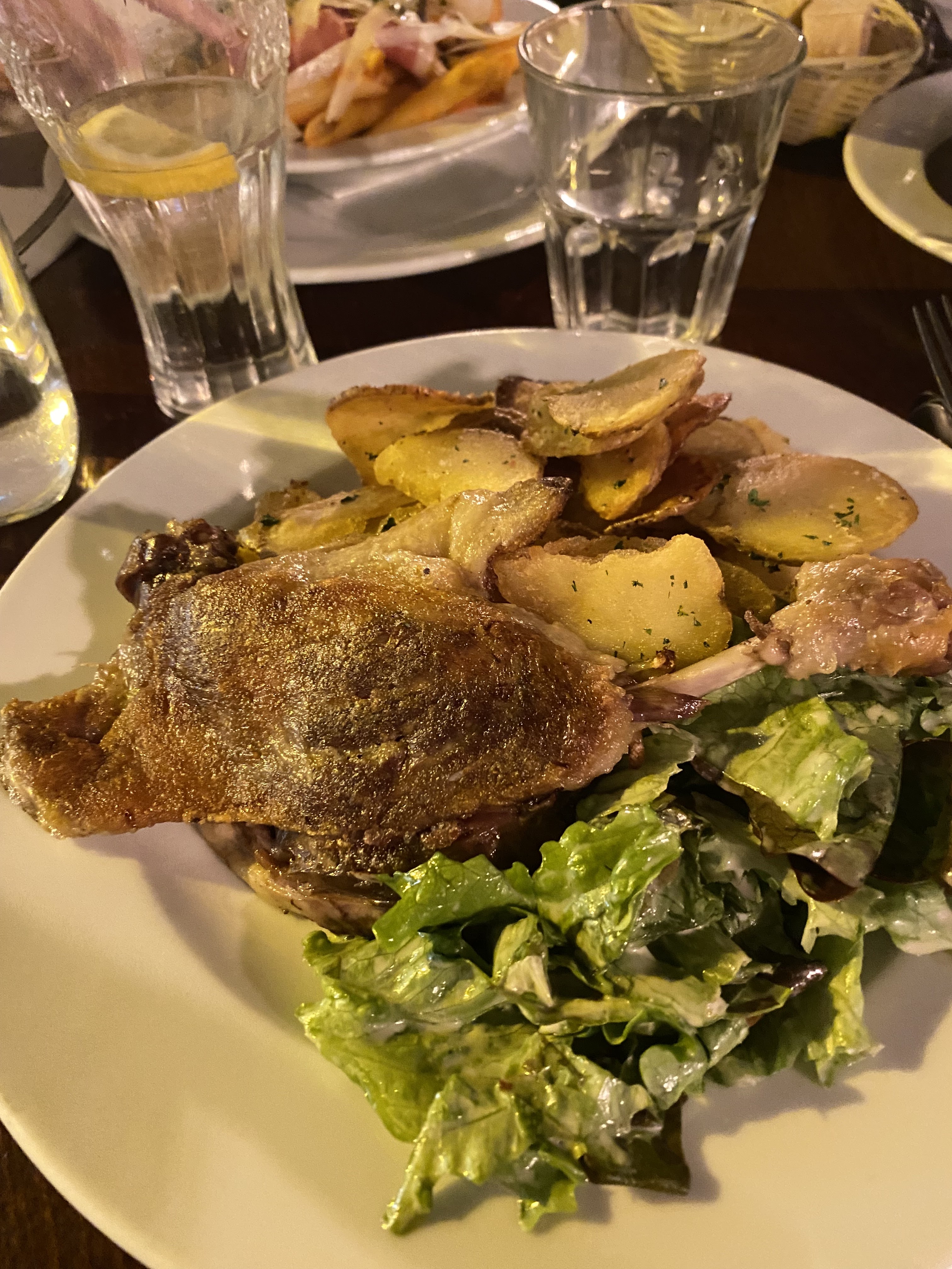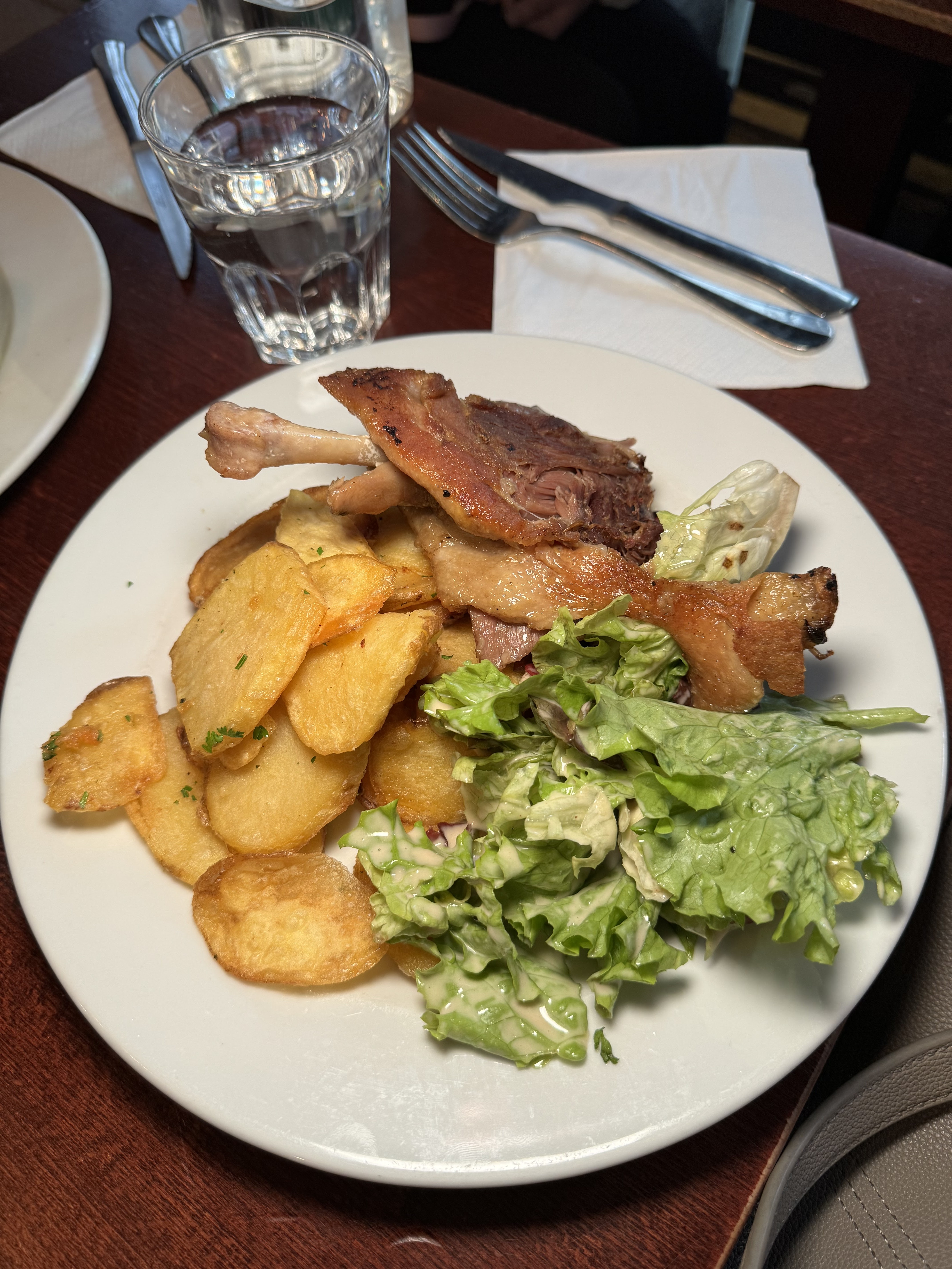 J'ai essayé le canard confit, il était croustillant mais un peu trop salé pour moi. La salade verte était pleine d’esprit/commençait à dorer donc je ne l’ai pas finie. La grande taille des portions et le service étaient bons. Abordable surtout compte tenu de la région.
